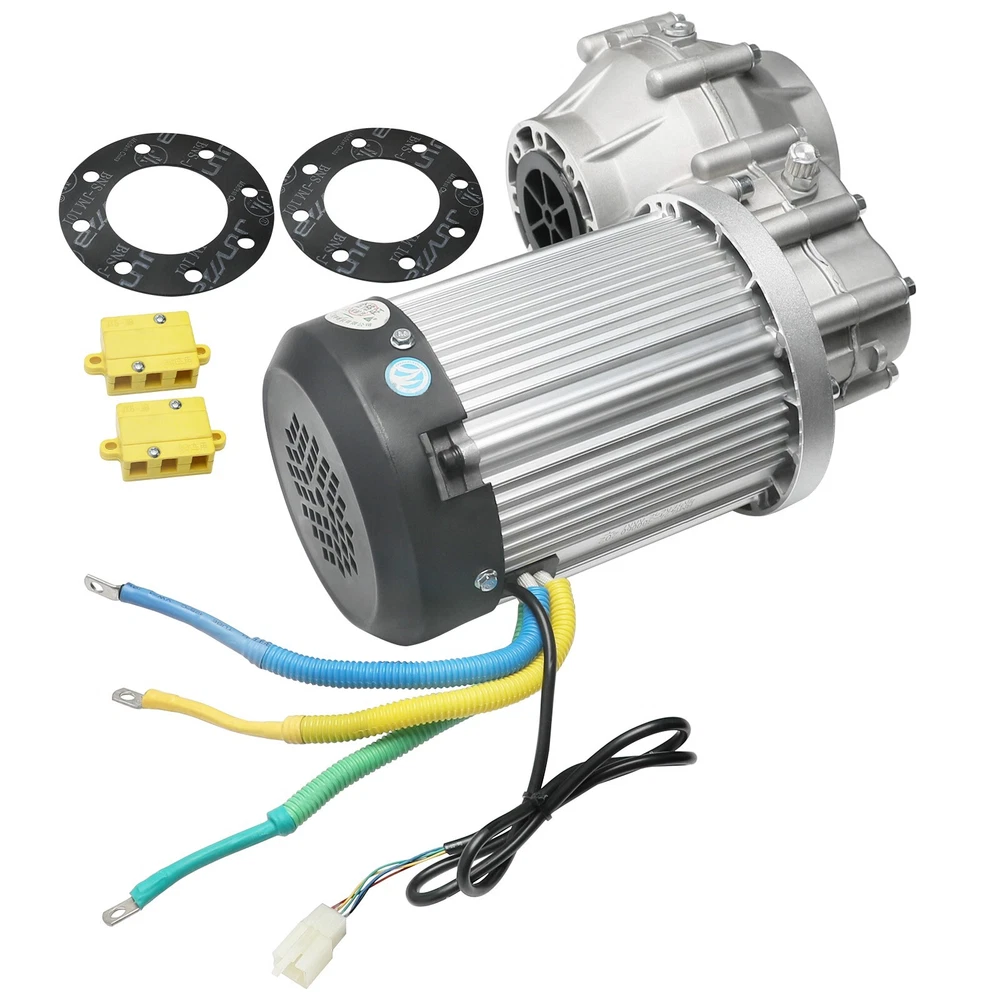 The Powerful 60v 2500w Unite motor brushless motor with differential gear box for Electric Golf Cart, ATV, Buggy, Quad, Car, Vehicles, Go Kart etc. Rated Speed: 5000RPM Max Speed: 6000RPM Rated Voltage: 60V Rated Power: 2500W Rated Current: 63A Gear Ratio: 12:1 Max Torque: 400N.m Shaft Spline: 6 Teeth Max Load: 1500lbs Protection grade: IP33 Insulation grade: F Weight of the motor: 36.8lbs Please check the size specs before purchase Package includes 1x 60v 2500w brushless motor with differential gearbox inkfrog terapeak