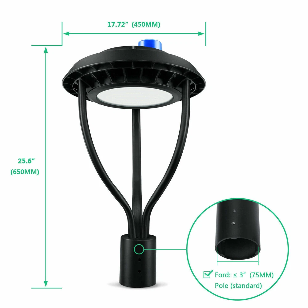 Type: Post Light Luminous Flux: 8100 Lumen Type of Bulb: LED Power Consumption: 60W Style: Traditional Model: Post Top Yard Light MPN: Does Not Apply Features: Dusk to Dawn, Low Voltage Lighting Technology: LED Brand: KUKUPPO Number of Lights: 1 Light Color: Black Sensor Type: Light UPC: Does not apply IP Rating: IP65 Power Source: Hardwired Electric Installation Area: Outdoor gtin13: Does not apply Material: Aluminum