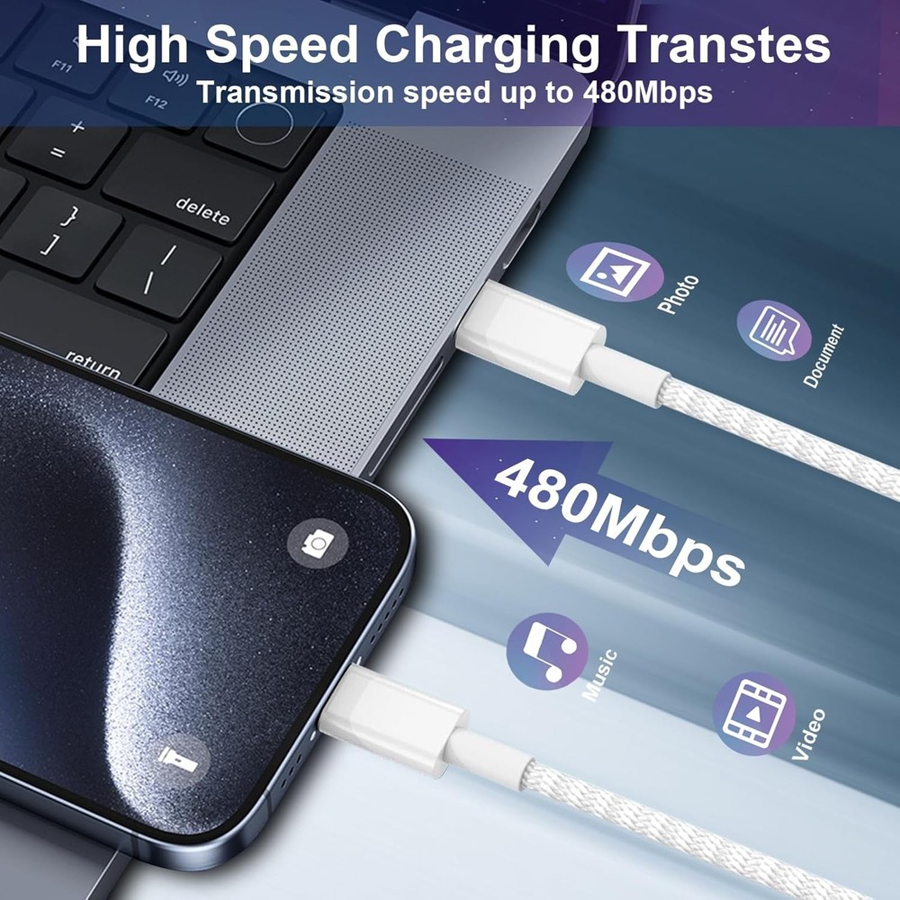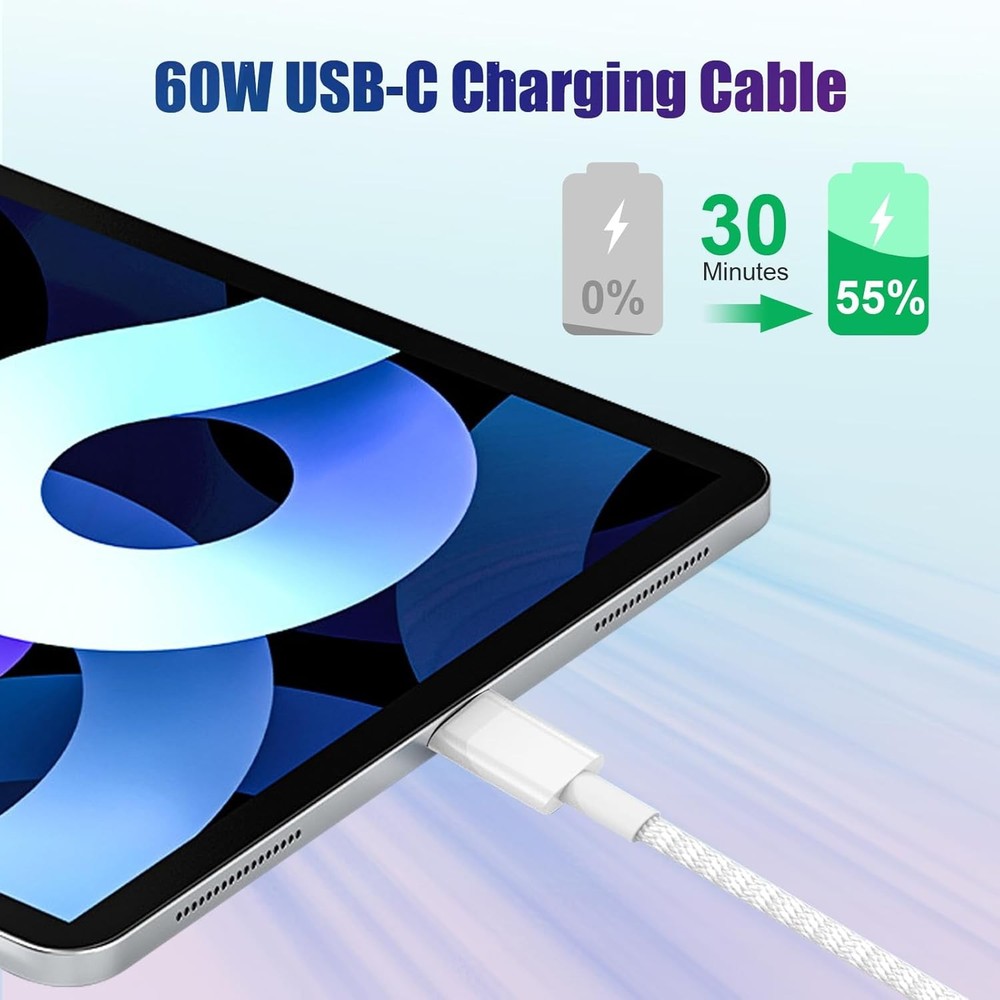 60W USB C to C Gray Braided Charging Cable 10ft,ipad 10th 2Pack 10FT Product Details Package Dimensions : 6.42 x 4.17 x 0.94 inches; 3.53 ounces Item model number : FDHGFUIJHFGHSDF34 Manufacturer : Jahomwire Country of Origin : China Brand: Jahomwire Connector Type: USB Type C Cable Type: USB Compatible Devices: iPad Pro 12.9, iPad Pro 11 inch, 2021/2020/2018 iPad Pro 12.9 Gen 5/4/3, iPad Pro 11 Gen 3/2/1, iPad Air 4, Google Pixel 6/6 Pro/5/4 XL/3a XL/3/XL/2. 60W Type C fast charging cord long USB C charge cable for Apple iPhone 15/iPhone 15 Pro Max/iPhone 15 Pro/iPhone 15 Plus iPad Pro 12.9, iPad Pro 11 inch, 2021/2020/2018 iPad Pro 12.9 Gen 5/4/3, iPad Pro 11 Gen 3/2/1, iPad Air 4, Google Pixel 6/6 Pro/5/4 XL/3a XL/3/XL/2. 60W Type C fast charging cord long USB C charge cable for Apple iPhone 15/iPhone 15 Pro Max/iPhone 15 Pro/iPhone 15 PlusiPad Pro 12.9, iPad Pro 11 inch, 2021/2020/2018 iPad Pro 12.9 Gen 5/4/3, iPad Pro 11 Gen 3/2/1, iPad Air 4, Google Pixel 6/6 Pro/5/4 XL/3a XL/3/XL/2. 60W Type C fast charging cord long USB C charge cable for Apple iPhone 15/iPhone 15 Pro Max/iPhone 15 Pro/iPhone 15 Plus See more Special Feature: High Speed 【60W USB C High Power Delivery】60W USB C to C Gray Braided charging cable Quickly charges most USB-C laptops, tablets, and cell phones up to 60% in just 30 minutes for Apple iPhone 16 iPhone 15 series/iPad series, is the 10th generation charger for ipad.Supports 480Mbps high-speed data synchronization and withstands daily wear and tear to ensure long-lasting performance. 【Universal Compatibility】Our USB-C to USB-C cable provides high-speed charging for Type-C for iPhone 15/iPhone 15 Pro/iPhone 15 Promax/iPhone 15 Plus/for MacBook Pro,for iPad Pro 2020 /2019/2018 and later, Mac Book Retina 12 inch/MacBook Pro 2016 and late, iPad Pro 12.9 inch/6th/5th/4th/3rd generation, iPad Air 5th 4th, iPad Mini 6, iPad 10th,and any USB-C to Cdevice. 【Built to Last】iPad Charger Cable Nylon Long Fast Type C to C Charger Cord A hard-wearing exterior and a bulletproof fiber core combine to create a cable that can withstand up to 15,000 bends. This ensures its durability, longevity and wear resistance, making it an ideal choice for individuals who value quality and performance.This is a USB C to USB C charger cable and as such will only work with USB-C chargers. 【Super Long Cable】60W USB C to C Charging Cable 3m / 10 ft let you can charge and have fun in bedroom, sofa, library, office, even when you are on the backseat of the car, thanks to exceptional flexibility, remains tangle-free even when stuffed into a bag or pocket. Get up to 60W high-speed charging for all of your USB-C devices when paired with a USB-C charger. 【What You Get】: 2 Pack 60W New USB-C to USB-C Cable our friendly customer service.phones, If you have any questions, please contact us for free, we will solve issues within 24 hours.