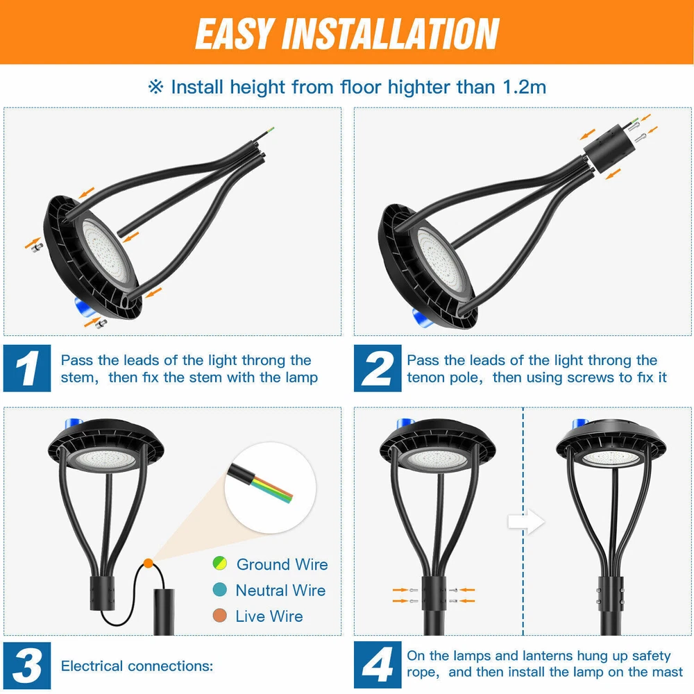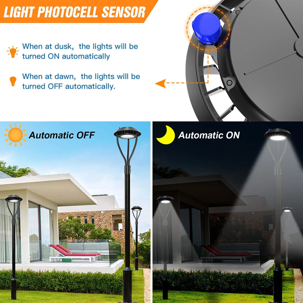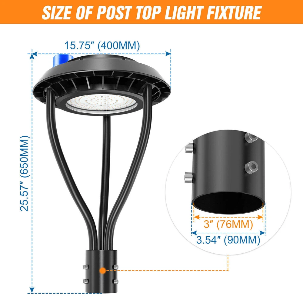 Product Description 60W LED Circular Area Pole Light [400W Equal] Street Garden Pathway Road Lights Light Up Larger Area - The 60w light post bring 8400Lm with SMD3030 chips, up to 140lm/watt, AC 100-277V universal voltage and 120°beam angle. 5000K color temperature of lighting is a nice choice for street light illumination. Anti-shock, anti-moisture, no glare, no strobe light, no ghosting, protecting your eyes. Dust to Dawn Photocell - The Led circular post top pole light comes with photocell sensor outside automatically turns ON at sundown/night and light post at sunrise/daytime with dusk to dawn, high power factor >0.9, more than 50000hours lifespan, reduce your electricity consumption, save your electronic bill. Provides a continuous, efficient outdoor lighting environment. Commercial Grade Material - The DLC/ETL Listed post pole light fixture made of die-casting aluminum body + protective glass cover. The scientific design helps the exterior light post top to dissipate better, achieve the best use of the led lighting post. IP65 waterproof for drying, wet environment, sandstorms, snowstorms, and harsh weather conditions. Wide Application - The circular post top design give the lamp a uniform brightness and can be applied to a variety of outdoor scences, such as pathway, street, front yard, city expressway, trunk/rustic road, factories, playground, school, garden, courtyard, parking lot, public park, walkway, exterior, driveway, store, farmyard or any other commercial and industrial area. Installation and Warranty - The pole mount of our post area light fits for a 2 3/8-inch OD tenon & less than or equal to 3 inch standard pole, very easy to install and transfor(Please see the video on the product page for more installation info). KUKUPPO offer you lasting safety and reliability backed by a 5-year warranty. For a bulk order, email us in advance to get a different offer. Rated Wattage: 60W Luminous Flux: 8400Lm Color Temperature: 5000K Protection Grade: IP65 Material : Aluminum Body+Glass Cover Input Voltage : AC100-277V 50/60Hz Dimension: Dia 460x625 mm Base: 2 Pins Wire Power Factor: >90% Beam Angle : 120 degrees Average Lifetime : More than 50000 hours Flexible Installation The pole mount of our post area light fits for a 2 3/8-inch OD tenon & less than or equal to 3 inch standard pole, very easy to install and transfor Commercial Grade Material DLC/ETL Listed quality. Scientific design helps the exterior light post top to dissipate better, achieve the best use of the led lighting post. Durable Support Rod Made of thick aluminum, stable and strong, waterproof and rustproof. High performance quality provides with lasting safety and reliability. Ultra Bright LED Chips With SMD3030 chips, up to 140lm/watt. Anti-shock, anti-moisture, no glare, no strobe light, no ghosting, protecting your eyes. Kindly Note Please note that the light can not be used IN the water. Please confirm the wire connection is right while installing. Maintenance Please pay attention to the dust protection of led post top lights. Please use a rag to stain the water and wipe it in the same direction. ●Don't force it back and forth to avoid damage to the garden lights. ●Don't switch the power switch frequently to avoid unnecessary energy loss. About Us Payment Shipping Returns Contact Us SHENZHEN NUOGUAN TECHNOLOGY CO. LTD founded in 2010. We are high-technology comany specialized in manufacture Commercial and industrial LED light. Advanced production equipment and excellend R&D ability help us to combining service ,production sell together provide top-level products to our customers. 1. Payment is expected within 7 days of auction close. Or Unpaid Items will be forfeited per eBay . 2. Taxes may be applicable at checkout as states adopt new laws and regulations regarding sales tax collection. 1. We ONLY ship to USA . 2. Orders processed within 1-2 business day of payment verification. There’s no Delivery service or courier service on Saturdays, Sundays or Public Holidays. 3. We have 3 different warehouse in US,so due to stock status and time differences, we will choose to ship your item from our first available warehouse for fast delivery. 4. We offer Free Shipping within the Lower 48 states! All packages are sent via UPS or USPS.The delivery time for UPS Ground is typically 2-5 business days. We strive to ensure 100% satisfaction for each and every one of our customers. we offer a 30-day 100% money-back guarantee on all eBay orders. If your item isn't just as you wished, simply send it back to us and we'll refund or replace your item. Please note that all returns must be authorized by our Customer Service department. please contact us though message first if you have any problem. USA Warehouse. Fast shipping! We are appreciated your purchasing form our eBay store. Office Time: 9:30 - 18:30, Monday - Saturday (UTC+8) Please contact us with eBay Message. We will respond you within 24 hours on business day. About Us SHENZHEN NUOGUAN TECHNOLOGY CO. LTD founded in 2010. We are high-technology comany specialized in manufacture Commercial and industrial LED light. Advanced production equipment and excellend R&D ability help us to combining service ,production sell together provide top-level products to our customers. Payment 1. Payment is expected within 7 days of auction close. Or Unpaid Items will be forfeited per eBay . 2. Taxes may be applicable at checkout as states adopt new laws and regulations regarding sales tax collection. Shipping 1. We ONLY ship to USA . 2. Orders processed within 1-2 business day of payment verification. There’s no Delivery service or courier service on Saturdays, Sundays or Public Holidays. 3. We have 3 different warehouse in US,so due to stock status and time differences, we will choose to ship your item from our first available warehouse for fast delivery. 4. We offer Free Shipping within the Lower 48 states! All packages are sent via UPS or USPS.The delivery time for UPS Ground is