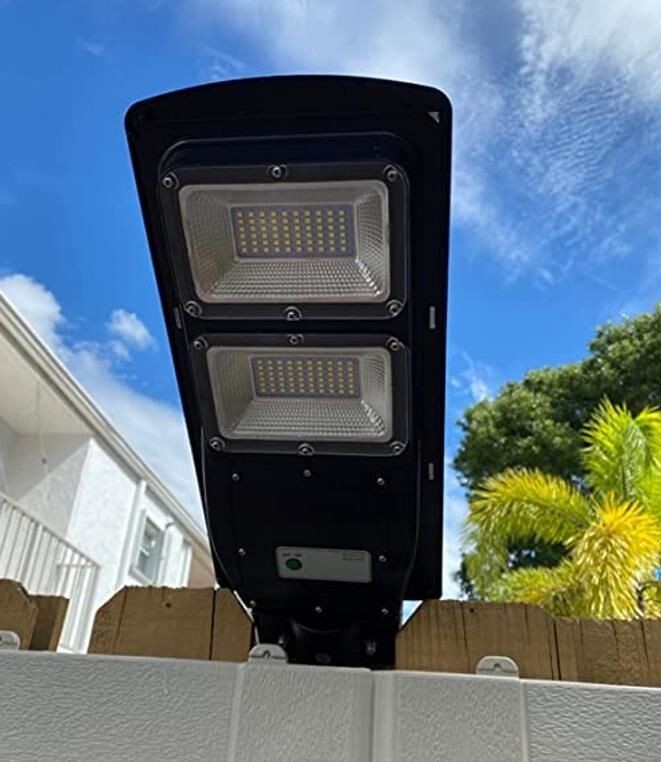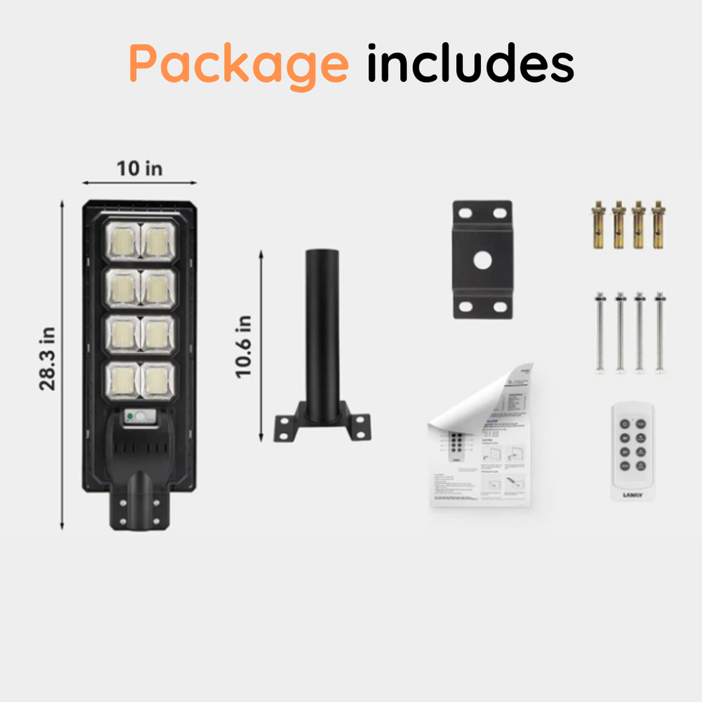 Specifications of Energy Flow 20000 Lumens Outdoor Solar Light โ Easy Installation: ๐น Power: 60W ๐น Lumens: 6,000 LM ๐น Number of LEDs: 120 pieces ๐น Solar Panel: 6V / 10W ๐น Coverage Area: 780 square feet (at a height of 16 feet) ๐น Battery Capacity: 10,000 mAh ๐น Product Weight: 6 lbs ๐น Mounting Bracket: Included Why Choose Energy Flowโs Powerful and Easy-to-Install Solar Lamp? ๐น Enhanced Motion Sensor The light can either turn off completely or remain at 30% brightness when no motion is detected. This saves over 20% of energy, extending its operating time. ๐น Remote and Automatic Control The dusk-to-dawn security light charges during the day and turns on automatically at night. You can customize constant lighting, motion sensor mode, and brightness level using the remote control. ๐น No Electricity Consumption or Wiring The solar panel converts sunlight into electricity without the need for wiring. Easy to install, perfect for driveways, pathways, rooftops, hallways, garages, backyards, farms, rural roads, terraces, barns, courts, or any dark area. ๐น Waterproof and Durable Made of durable ABS material, it withstands all kinds of harsh weather conditions. The operating temperature ranges from -50โ to 140โ. The recommended installation height is 13 to 21 feet. ๐น Product Warranty One-year warranty. If you're not satisfied with your purchase for any reason, feel free to contact us. Customer satisfaction is our top priority.