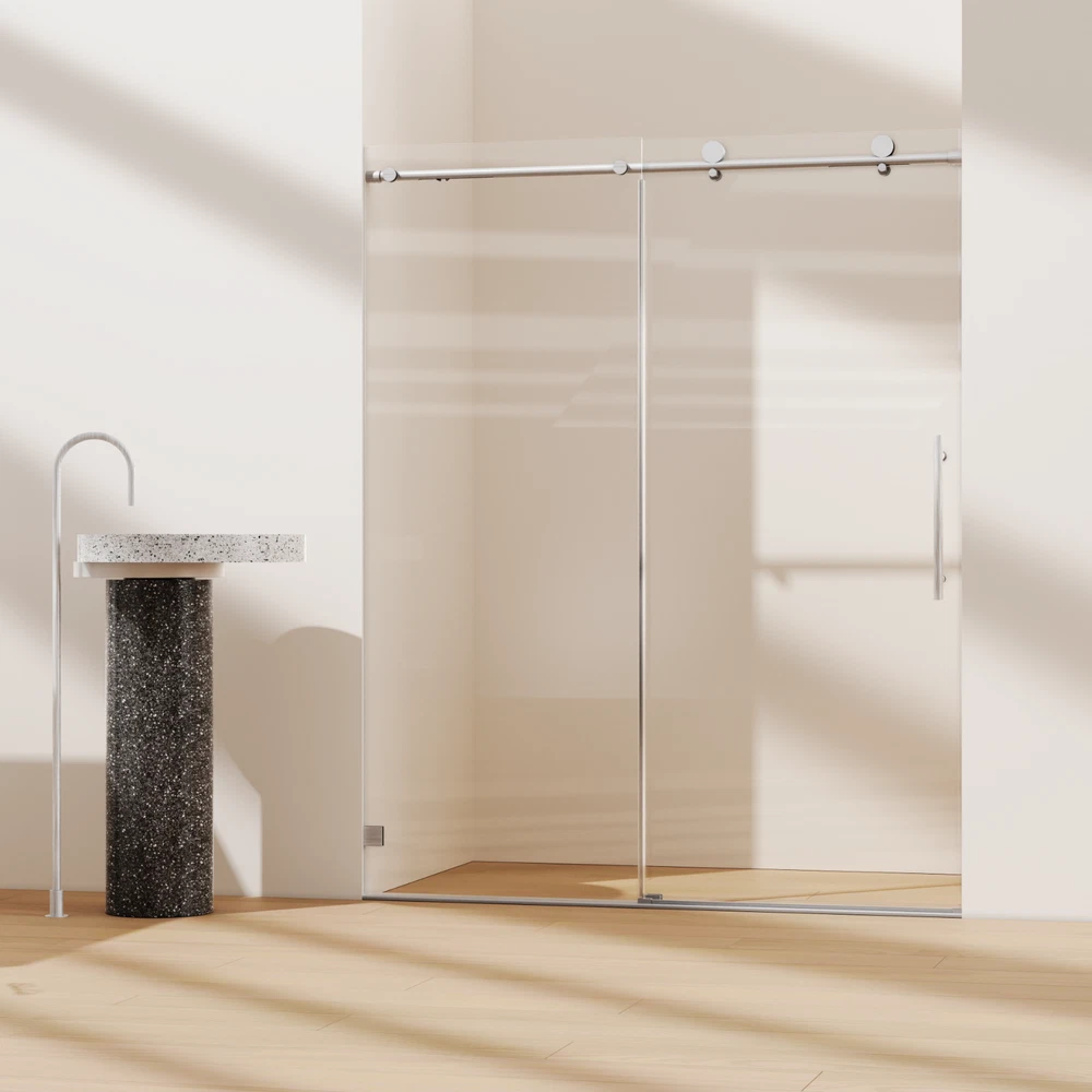 Type: Shower Door Installation: Glue-up Room: Bathroom Shape: Rectangle Item Width: 60 in Item Location: Warehouses in Different States Material: Glass, Metal Glass Style: Clear Installation Instructions: Included Assembly Required: Yes Color: Silver Item Weight: 133 lbs Manufacturer Warranty: 3 Years UPC: Does not apply Frame Material: Aluminum Labels & Certifications: SGCC Frame Finish: Brushed Set Includes: Shower Door Brand: Forlan Installation Side: Both Sides Suitable For: Shower Item Height: 74 in Manufacturer: Forlan Opening Mechanism: Sliding gtin13: Does not apply Number of Items in Set: 1 Frame Type: Frameless Features: Tempered Glass, Customized upgraded buffers, Double Bypass Sliding, Glass SGCC certified, Upgraded Buffings, 8mm glass Handle Type: Bar Glass Thickness: 8 mm