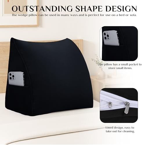 60cm Black Wedge Pillow Headboard for Reading & Back Support