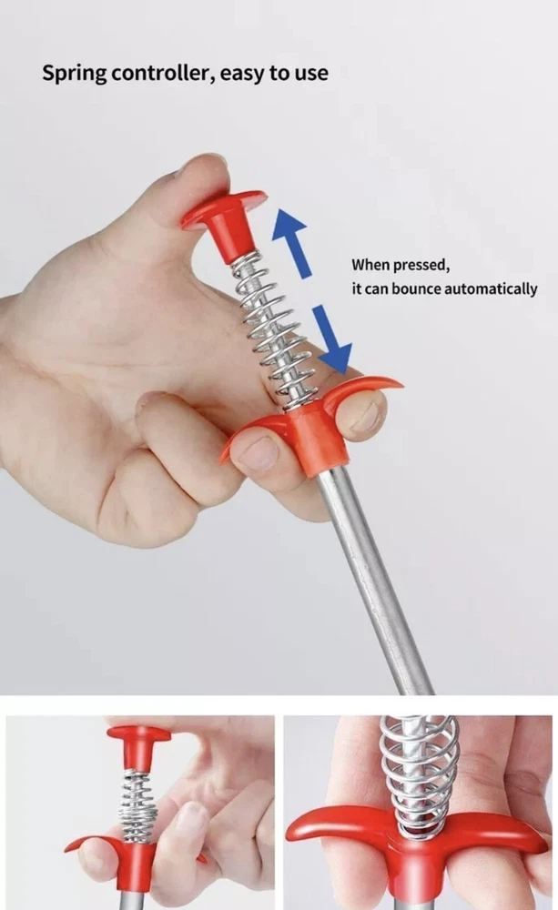 Drain Clog Remover Tool – Flexible Pipe Dredging Tool This practical and easy-to-use drain clog remover tool is designed to clear blockages in pipes and drains effortlessly. Its flexible and durable design makes it ideal for unclogging kitchen sinks, bathroom drains, and other hard-to-reach areas. Key Features: • Length: Approximately 61.5 cm, providing ample reach for clearing deep clogs. • Efficient Clog Removal: Perfect for grabbing and removing debris, hair, and other obstructions from drains. • Four-Claw Gripping Action: Strong claw design effectively grips and removes blockages, both magnetic and non-magnetic. • Easy Operation: Simple two-finger handle action—pull the handle to open the claws and release to grab debris securely. • Spring-Loaded Grip: Ensures smooth, precise control for effective clog removal. • Versatile Use: Suitable for kitchen, bathroom, and utility drains. Package Includes: • 1 x Drain Clog Remover Tool Simplify your drain maintenance with this reliable and reusable pipe dredging tool. Perfect for keeping your drains free from clogs and functioning smoothly!