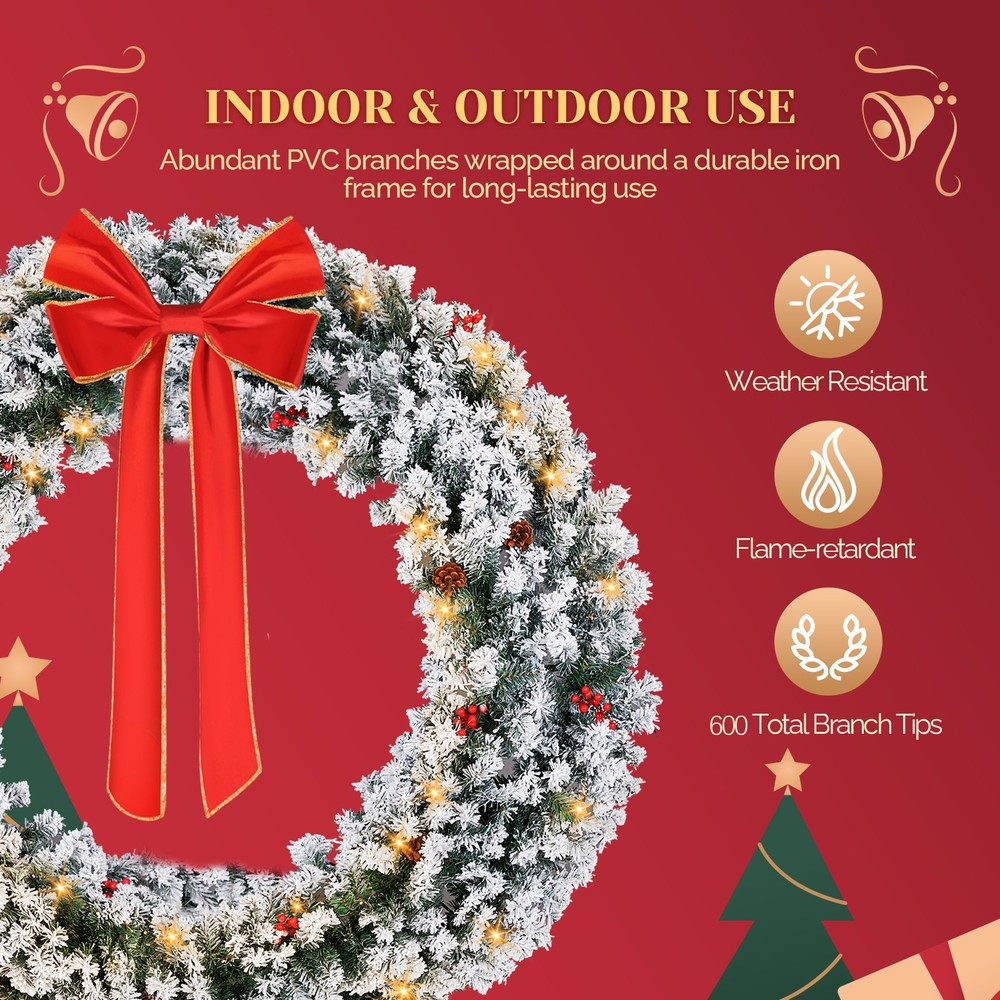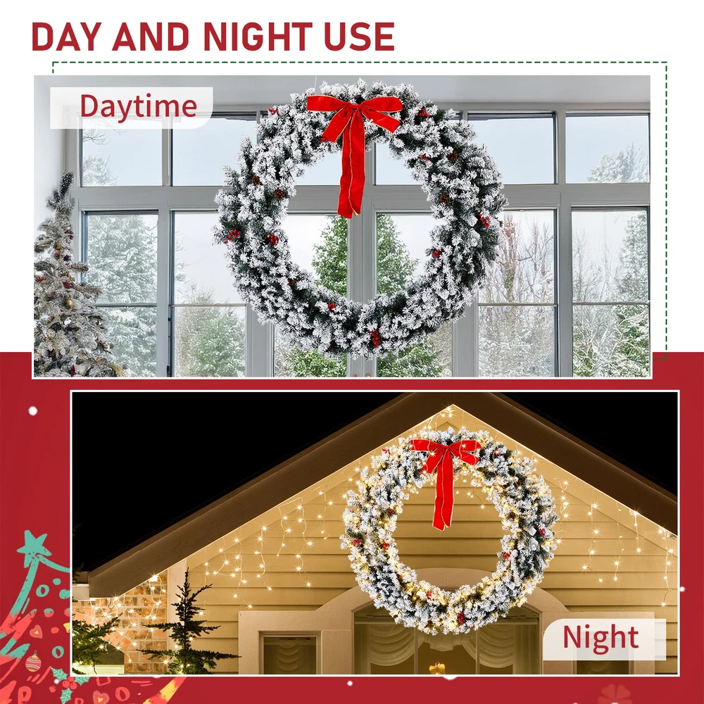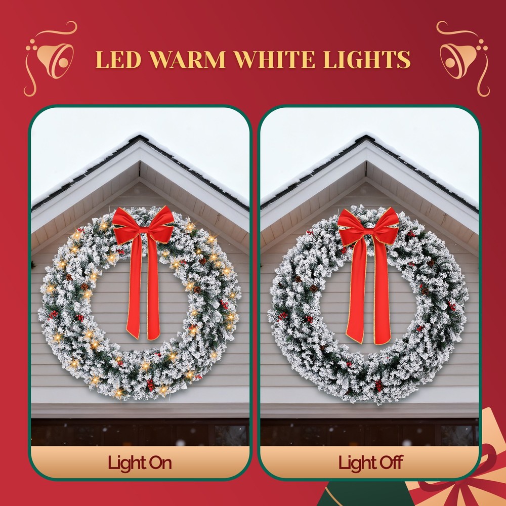 $ 54.3948in Pre-Lit Snow Flocked Christmas Wreath 150 Warm White Lights Decor