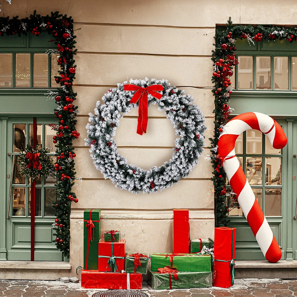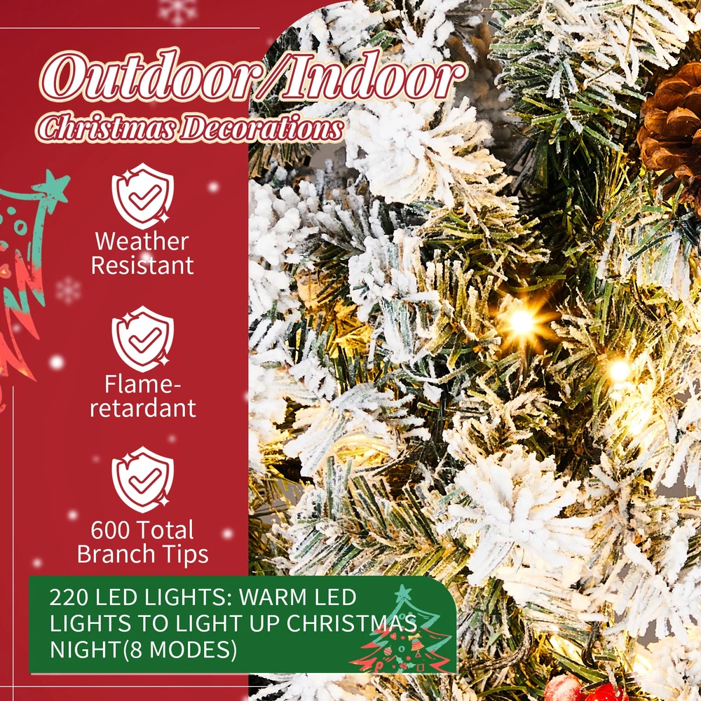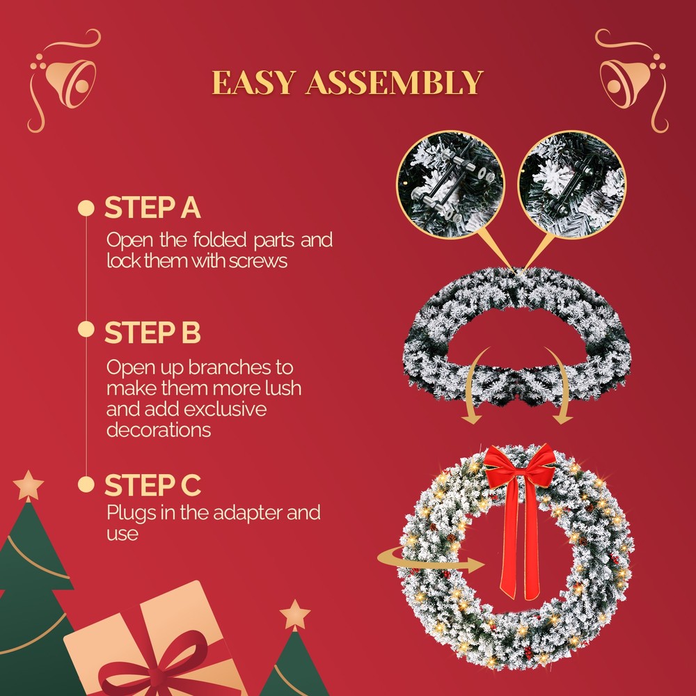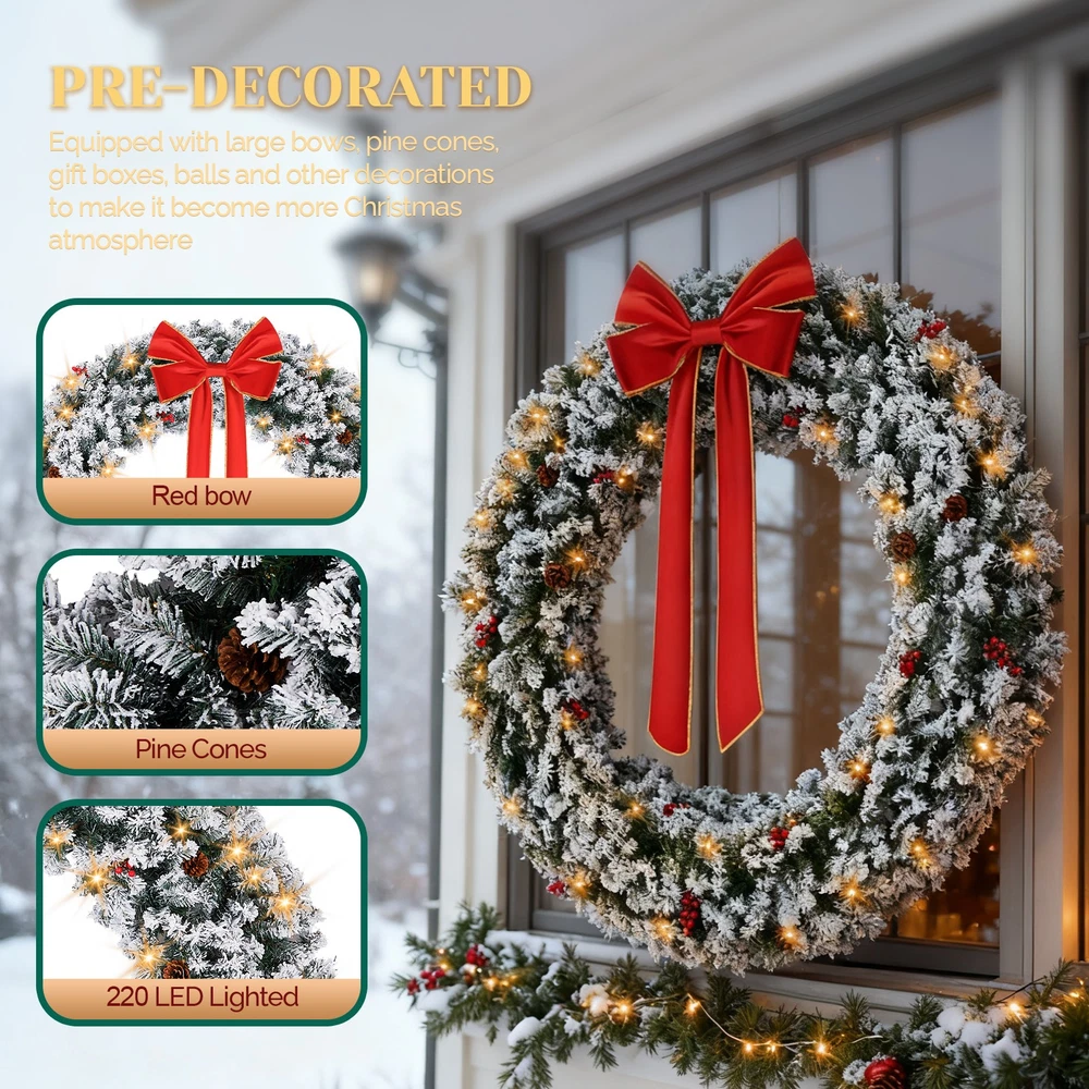 $ 54.3948in Pre-Lit Snow Flocked Christmas Wreath 150 Warm White Lights Decor