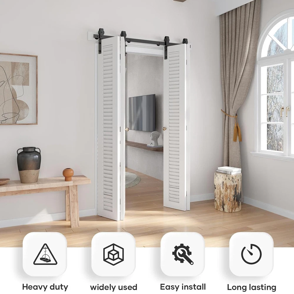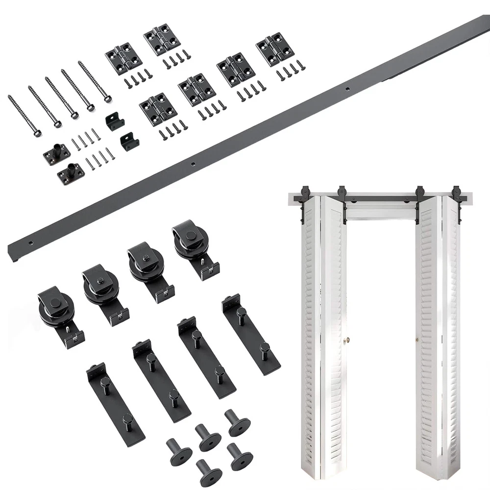60in Sliding Barn Door Hardware Kit Modern Closet Hang Foldable Style Track Rail