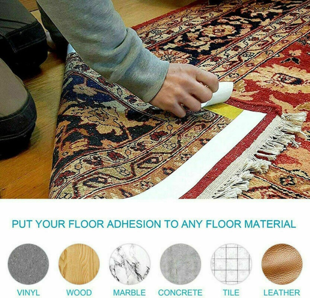 This double-sided rug tape is a game-changer! It holds my carpets firmly in place on my wood floors with no slipping or curling edges. Super strong, easy to use, and leaves no sticky residue. Perfect for keeping rugs safe and secure—no more tripping hazards! Highly recommend for anyone with hardwood floors.