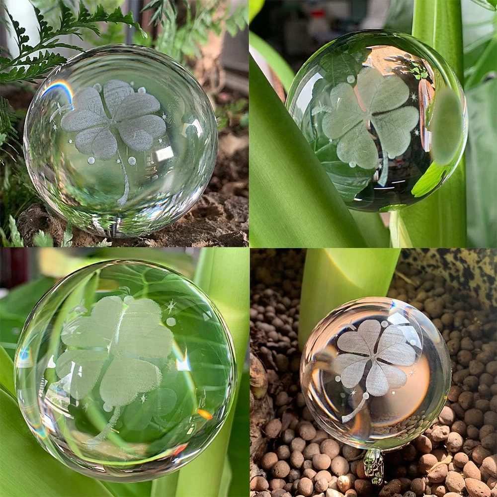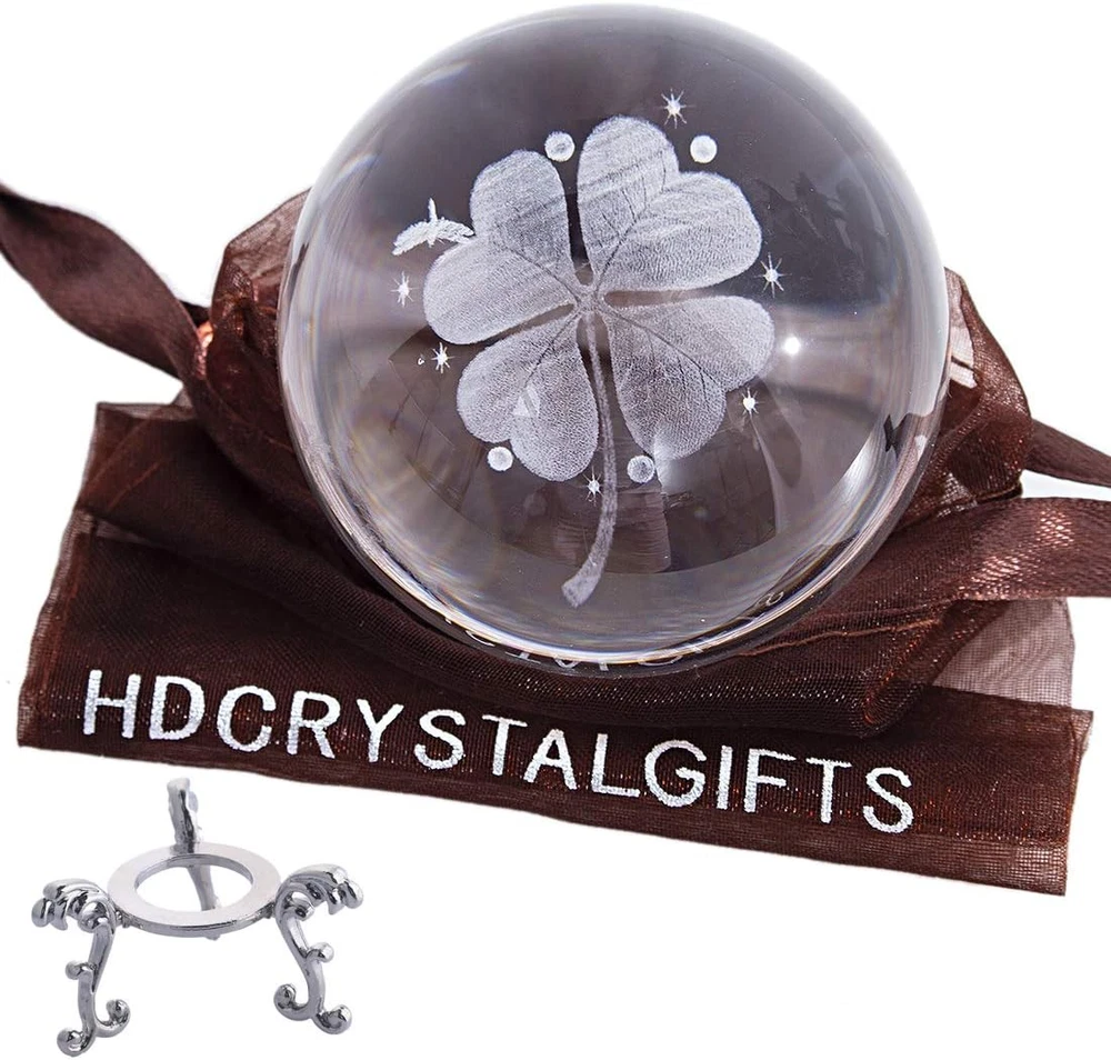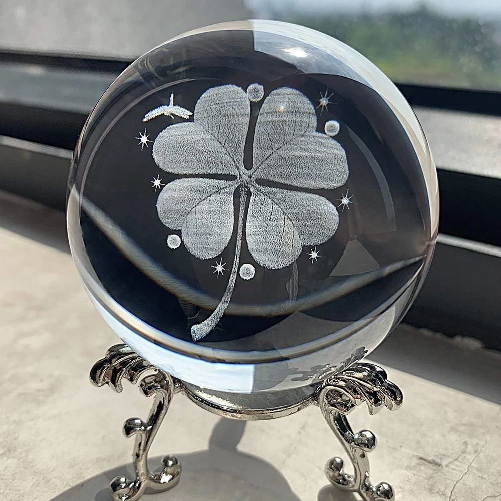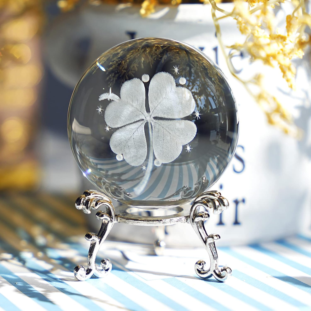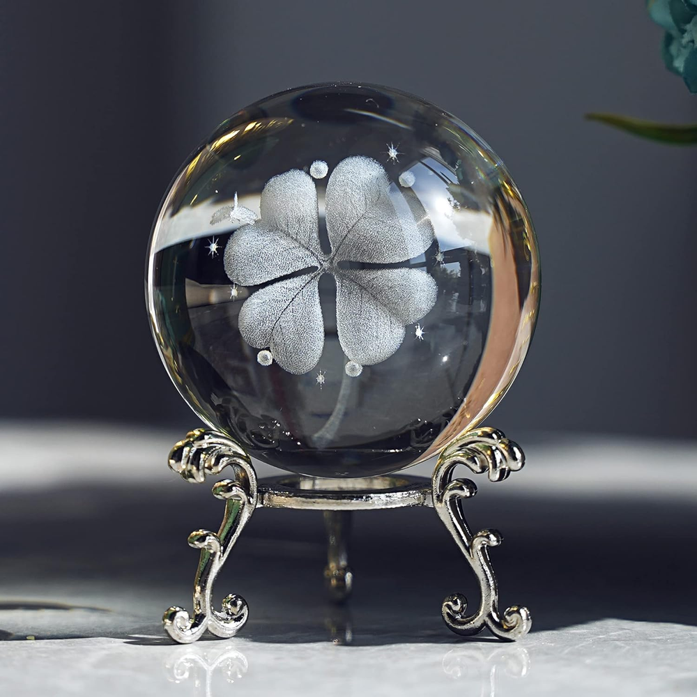 60mm Silver-Plated Four-Leaf Clover Crystal Ball with Floral Base