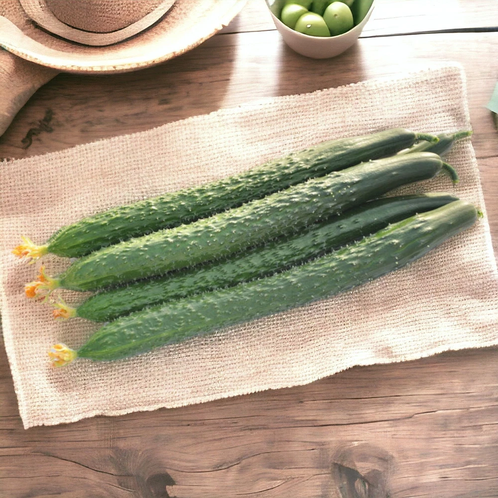 Bring a touch of Asia to your home garden with our Asian Suyo Long Cucumber Seeds. This pack contains 60 heirloom, non-GMO seeds, producing cucumbers known for their unique long, slender shape and crisp texture. The Suyo Long is a hybrid variety that offers vigorous growth and a high yield of cucumbers that can twist and curl, adding an interesting visual appeal to your harvest. Perfect for salads or pickling, these cucumbers have a mild, sweet flavor that makes them a garden favorite. Included in each pack are complete planting instructions, ensuring successful growth from seed to harvest. With a soil temperature requirement of 70-80°F for germination, and a growing temperature of 65-70°F during the day, these cucumbers mature in about 59 days. Ideal for gift-giving or expanding your own vegetable garden, these seeds are suited for gardeners of all skill levels. Unique Hybrid Variety: Grow Asian Suyo Long cucumbers, known for their length and curling shapes, perfect for fresh eating or pickling. Quick Germination: Seeds sprout within 6-10 days, with a seeding depth of 0.5-1 inches, making starting your garden quick and easy. Optimal Growing Temperatures: Thrive in soil temperatures of 70-80°F and daytime temperatures of 65-70°F, ideal for robust growth. Fast Maturation: Enjoy harvesting your cucumbers in just 59 days, allowing for a quick and bountiful yield throughout the growing season. Heirloom & Non-GMO: Guaranteed heirloom and non-GMO seeds, ensuring that you cultivate the healthiest and most sustainable crops.