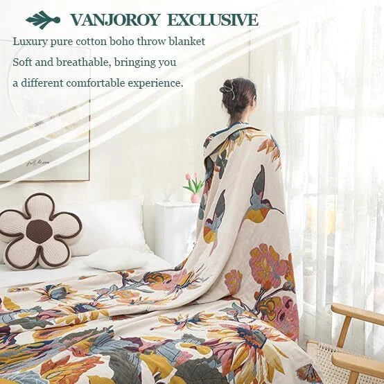 Product Description Boho Large Throw Blanket, 100% Organic Cotton Breathable Soft Bed Throw - Fall Floral Bird Butterfly Farmhouse Decor Blanket for Sofa Couch Chair and Gift. 60" x 80"- Beige EXCELLENT MATERIAL: Made from 4 layers of 100% cotton, Cotton fibers are natural hollow fibers; they are known as fibers that are soft, warm, comfortable, skin-friendly, absorbent and breathable.A: 150 x 200 cm.( 60" x 80 " In), 2.2lb,B: 200 × 230cm(80" x 90 " In), 3.3lb,C: 230 × 250cm (91" x 98 " In), 4lb QUALITY SAFETY: We ensure that the materials are high-end, they are also suitable for babies, and can ensure the safety and health of your skin and family. These blankets have been certified by OEKO-TEX and have been organically certified by GOTS. Global GRS regeneration certification makes customers safer and more guaranteed PERFECT GIFT: Cute and delicate patterns are sure to be loved and can be used for Birthday's, Valentines Day, Mothers Day, Women's Day, Easter, Christmas etc WIDELY APPLICATION: Double-sided pattern color design, universal in all seasons, light and soft, giving you a warm and comfortable feeling. It can be used as a bedspread, sofa or chair blanket for sitting and lying down, or for outdoor picnics and camping EASY TO CLEAN: Machine washable in cold water, avoid using detergents with bleaching ingredients; please wash the towel gently to prevent tassels from entanglement.Important: Since our blankets are made of pure cotton, they can shrink by a few centimeters after washing About Us We are a reputable seller with many years of experience selling on eBay. Our goal is to provide high-quality products and excellent customer service. Shipping Items will be shipped within 1-3 business days when we received payment. (Orders are not processed on weekends & holidays) Tracking information will be sent once item is shipped. Delivery time depends on destination and other factors Item is shipped to ebay address. Leaving correct address can minimize delay. For international shipping and shipping to Guam, Hawaii and Alaska, Please contact us before placing the order. International buyers please note: Import duties, taxes and charges are not included in the item price or shipping charges. These charges are buyer’s responsibility. We will try our best to reduce the risk of the custom duties. Local pick-up is unavailable at the moment. Contact Us We reply any email messages within 1 business / working days(off-duty at weekend). If you do not get a response from us, then please check your junk or spam mailbox. Our Business hours: Mon-Fri 9:00-18:00, UTC/GMT +8 hours. Please contact us either by clicking "contact seller" in the "purchase history" section or simply click "ask a question" at the bottom of this page. If you are unsatisfied with our item or service, please contact us before leaving any feedback. We are committed to resolve all issues in a friendly and satisfactory manner.