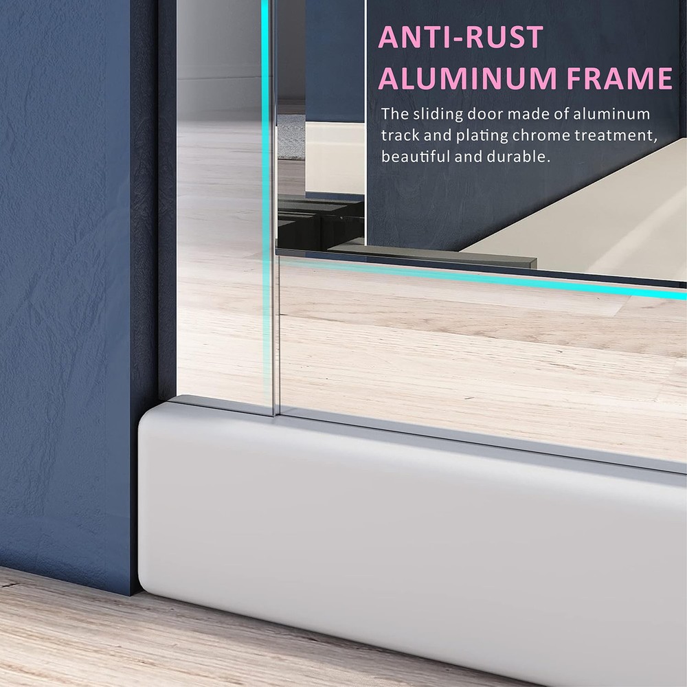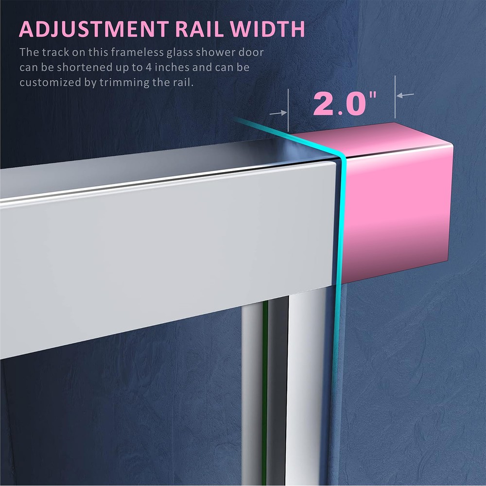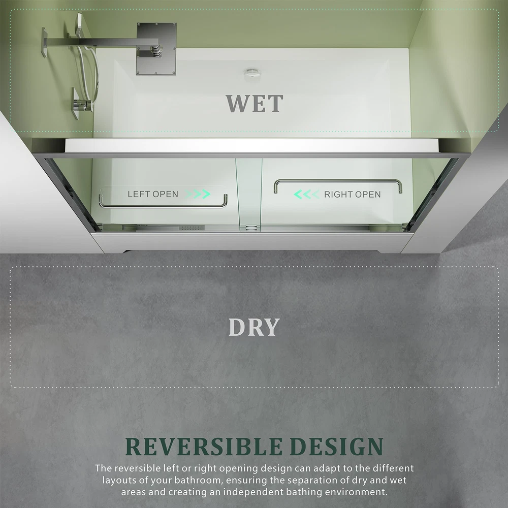 Double Sliding Walk in Shower Door Design The 56-60''x 57'' tub sliding door glass allows you to use either on the left or right door to access the tub, a space-saving solution. Hardware Finish:Chrome. Safety Tempered Glass The tub chrome bathroom shower door is designed with SGCC/ANSI-certified 1/4" (6mm) thickened clear tempered panel, which not only creates a spacious and open feeling, but also effectively resists damage. Durable and easy to maintain, it can resist shower water and soap dirt. High-quality Accessories All the hardware of this tub chrome walk in shower door is high-quality stainless steel, including 2 large solid rollers, 2 handles and thickened top track. High-quality stainless steel hardware ensures smooth, durable and rust-proof. Built-in rollers, tested for 100,000 times for durability, ensure your tub chrome sliding door glass slides smoothly, quietly and durable. The stainless steel handle can be used as a towel rack, provide a place to hang clothes and towels. Adjustable Width The top rail can be trimmed 4 inches for width adjustment (56-60 inches) by cuting the top and bottom rais. Our bathtub bathroom shower door are designed to fit most standard tubs and provide a sleek, seamless appearance. Upgrade your bathroom with a stylish chrome walk in shower door that combines appearance and function. Easy to install The illustruction and all the necessary installation accessories are in the package, easy to install. Due to the heavy glass, the tub sliding door glass is recommend to be installed by two professional people. CHROME GLASS SHOWER DOOR ENJOY YOUR CLEAN SHOWER TIME ADVANCED DETAILS DESIGN DURABLE TEMPERED CLEAR GLASS As a professional bathroom product manufacturer, we always provide you with better products and more efficient services, but the following service terms need to be known to you: 1: If you find some problems with the product after receiving the goods, please do not discard the product, because we need you to provide pictures or videos of the relevant faults to better serve you. 2: Please note that we do not bear the installation/assembly costs. If you find a fault during the installation of the product, we will not bear or reimburse this cost because we stipulate that all parts must be checked before booking. 3: Delivery within the United States only, excluding Alaska/Hawaii, Puerto Rico, Guam, Saipan, APO/FPO, US Protectorates and PP Box. Usually the delivery time is 1 to 7 business days. If you still have not received the goods after 7 business days, please contact us immediately and we will track the order for you. 4: If your goods are damaged when delivered, you must refuse the order and describe the damage on the receipt. Just fill in "the goods are damaged". If you accept the goods and the damage is not noted on the receipt, we reserve the right not to refund or replace your goods. If you are not satisfied with your purchase, please contact us within 7 days. Please note that there is a 20% restocking fee and all shipping and handling charges are the responsibility of the buyer.