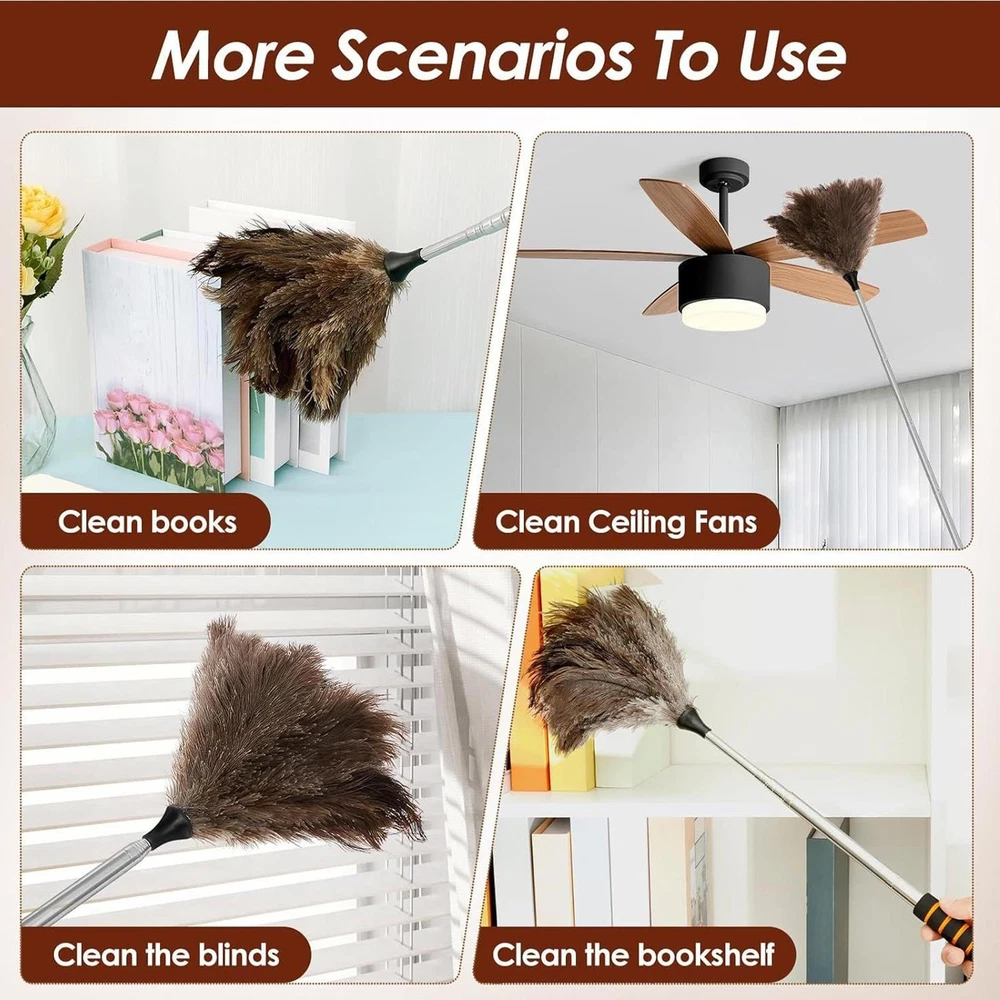 61 Inch Natural Feather Duster Brush Wood Handle Home Cleaning Brush Anti-Static Bullet Points: Convenient to Operate: Cover hard-to-reach areas with ease through an extendable design that enhances cleaning reach while maintaining flexible maneuverability for user comfort Advanced Particle Trapping Design: Captures fine dust and hair effortlessly using advanced electrostatic adsorption for high-efficiency cleaning without allowing secondary dust dispersal or performance degradation over time Versatile Use: Designed for multi-environment usability, this duster works seamlessly in homes and vehicles, ensuring efficient cleaning across different areas effortlessly Comfortable Grip Experience: Engineered with an ergonomic handle design, it has a pleasant grip feel while minimizing hand fatigue, making prolonged use effortless and more enjoyable for users Small and Easy to Store: The retractable compact duster is convenient for indoor storage and fits small spaces effortlessly, making it easy to tuck away when not in use while optimizing your home organization needs with its efficient structure and versatile functionality for everyday cleaning tasks Equipped with soft feathers and anti-static technology, this duster removes dust from ceilings, fans, window, blinds, and vents with ease. Extend its utility outdoors to clean cars, RVs, trucks, and remove pet hair from baseboards. The washable design makes reusability, while the long pole provides access to challenging spots during cleaning routines. Specification: Material: Feathers + stainless steel Product size: about 55x13cm/21.65x5.12 inches Length after extension: about 155cm/61 inches Weight: 128g Product List: 1 * Duster With Extension Pole Notes: Due to different lighting and screen settings, the product color may be slightly different from the picture. Due to the difference in manual measurement, please allow a 1-3cm difference in size. 1.You can make a Credit payment via Paypal.Paypal will let you use MasterCard,Visa to pay. 2.Payment should be completed within 5 days after auction closed, or unpaid dispute will be filed for an closing auction.An unpaid case will be filled after 4 days. ● We strive for 100% customer satisfaction ! ● Positive Feedback is very important to us. ● We hope that you contact us immediately BEFORE you give us neutral or negative feedback, so that we can satisfactorily address your concerns. ● We promise to offer the lowest price and high quality produce. Dear buyers : ● Welcome to my store ! ● Your satisfaction is our top goal,we appreciate your patronizing. ● If you have any questions, please contact us before leave negative or neutral feedback, we will try our best to solve the issue to your satisfaction, thanks ! ● If you are satisfied with our service, please rate the details of the transaction (Detailed Seller Ratings) on eBay. ● Please always talk to us via ebay Message. ● We appreciate your business and look forward to growing our e-Bay sales with satisfied customers.