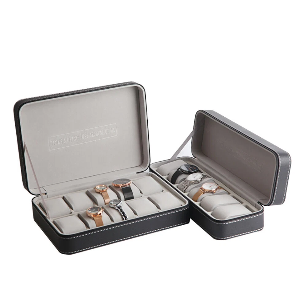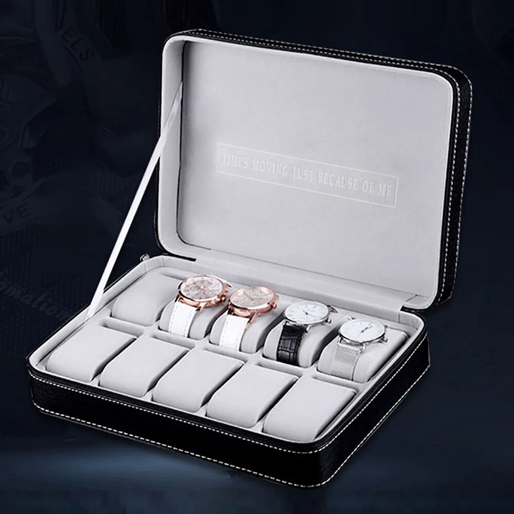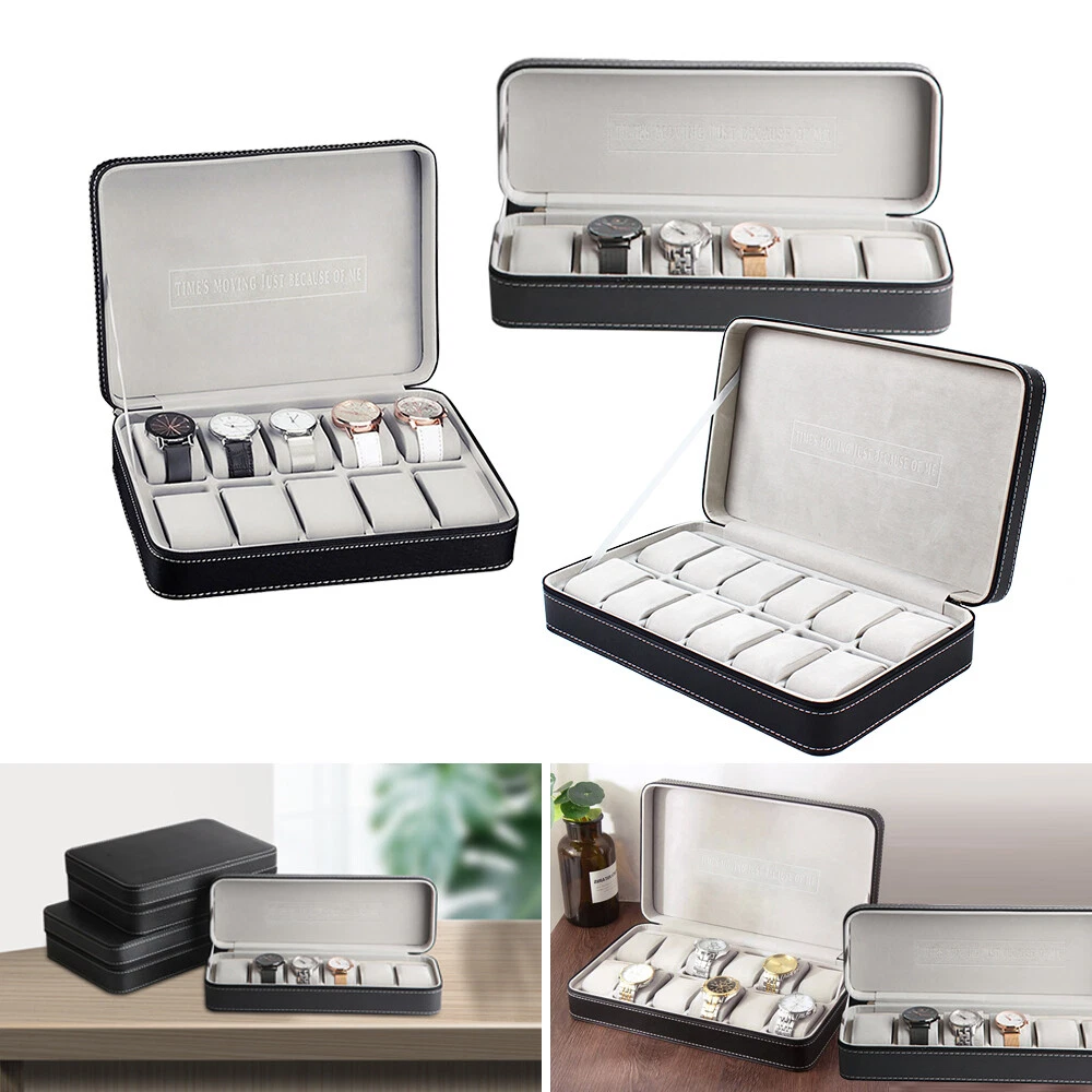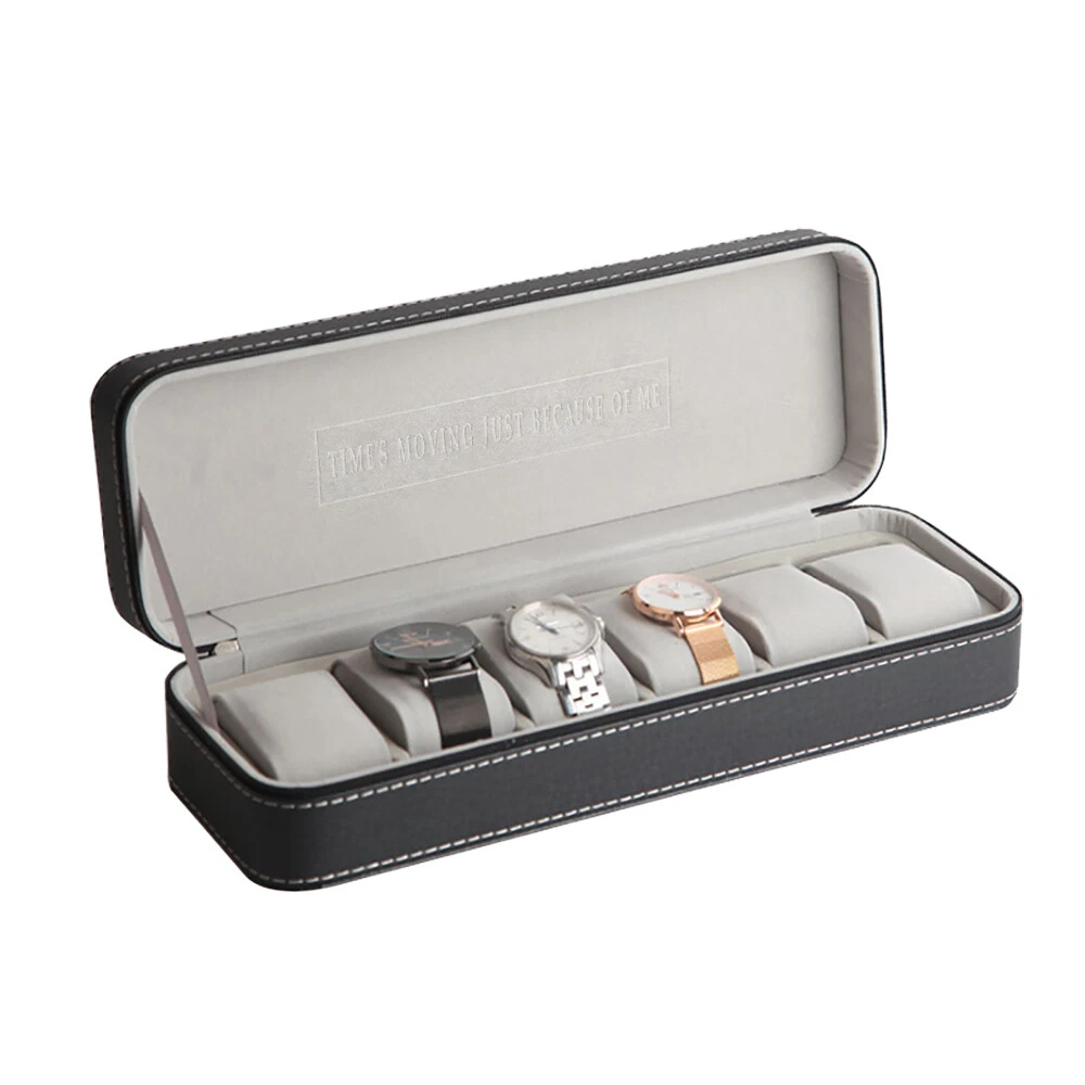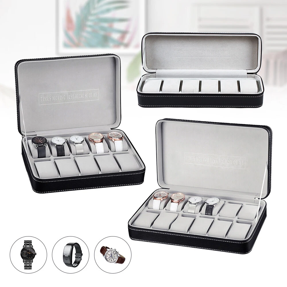 This watch box is a stylish and practical way to store and organize your timepieces! The soft PU leather feels premium, and the padded slots keep watches secure while preventing scratches. I love the multiple size options—perfect whether you have a small collection or a growing one. The zipper closure ensures everything stays in place, and the compact design makes it easy to travel with. Great value for the quality!