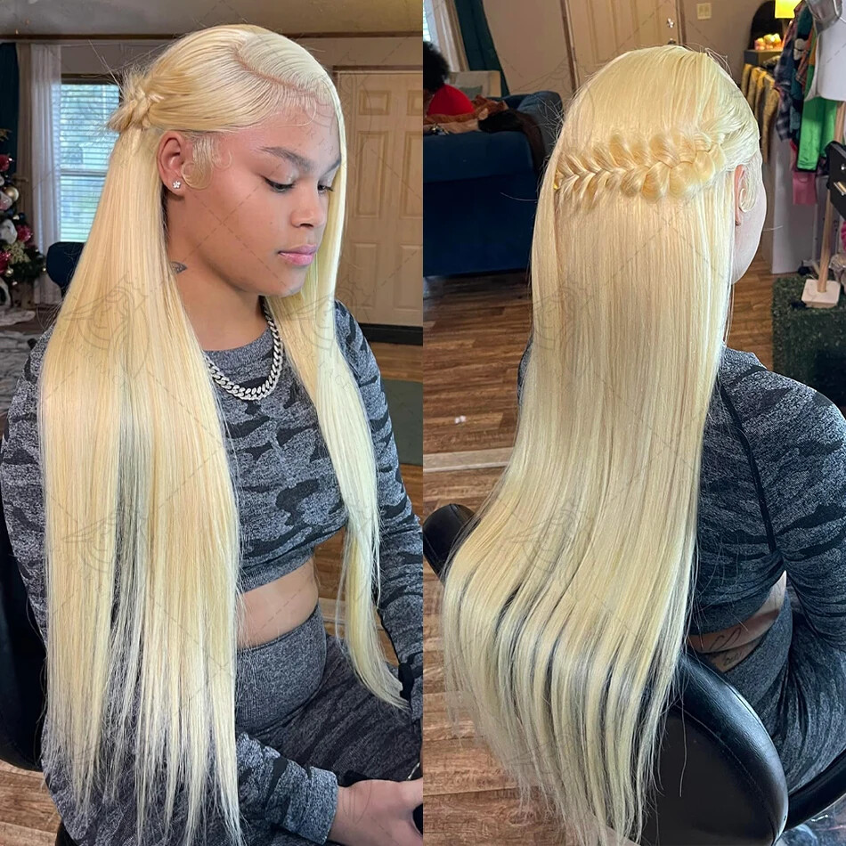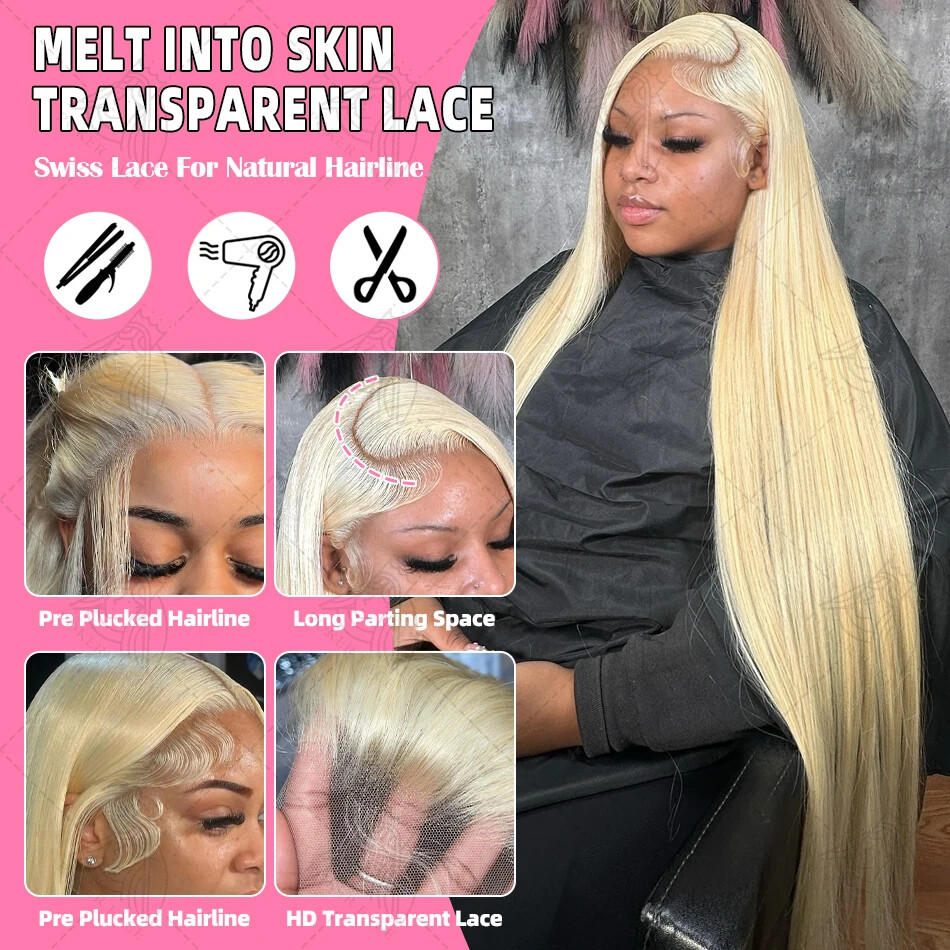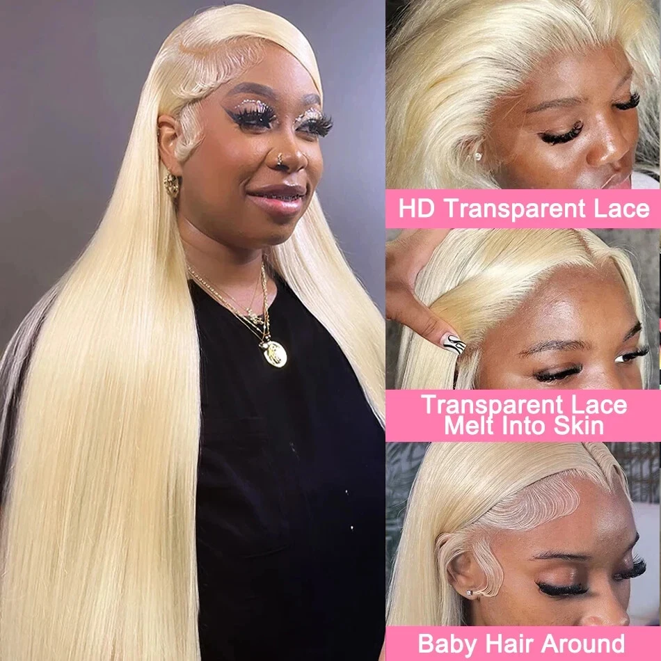 $ 109.4913x6 HD Transparent 613 Blonde Brazilian Lace Front Human Hair Wig Bone Straight