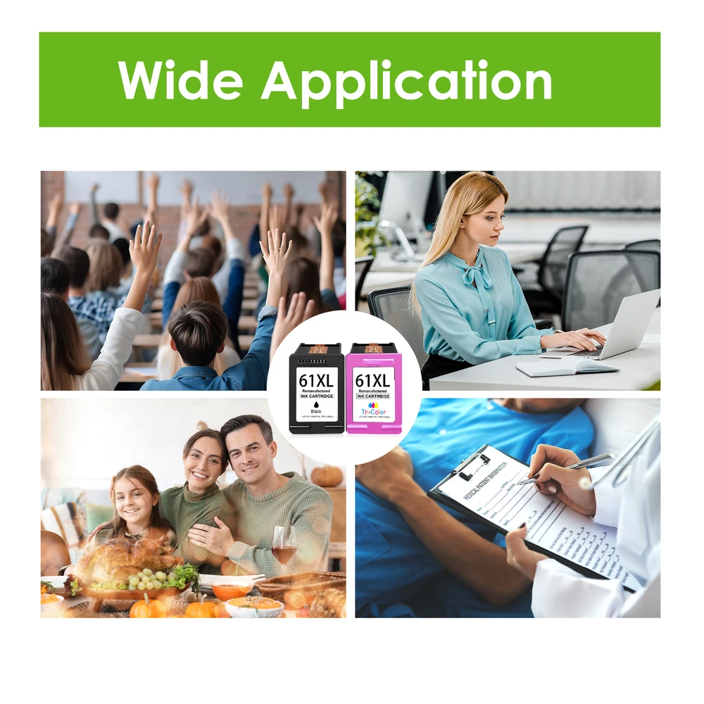 Product Details Information Type: Ink Cartridge Condition: Remanufactured Compatible Brand: For HP Part#: 61 XL 61-XL Color: Black, Tri-Color Capacity / Page Yield: Black-750 / Tri-color-450 pages at 5% coverage. Package Include: As you selected The picture is for reference only, not OEM. Compatible Printer Models ✔️ for HP Desktop series: 2646 3050A 3051A 3052A 3054A 3056A ✔️ for HP OfficeJet series: 2620 2621 2622 2623 4630 4631 4632 4634 4635 4636 4639 ✔️ for HP Envy series: 4500 4501 4502 4503 4504 4505 4507 4508 4509 5530 5531 5532 5534 5535 5539 ✔️ for HP DeskJet series: 1000 1010 1011 1012 1015 1050 1050a 1051 1055 1056 1510 1511 1512 1513 1514 1517 ✔️ for HP DeskJet series: 2000 2050 2050a 2050s 2054a 2510 2511 2512 2514 2540 2541 2542 2543 2544 2545 2546 2546B 2546P 2546R 2547 2548 2549 ✔️ for HP DeskJet series: 3000 3050 3050a 3051 3051a 3052 3052a 3054 3054a 3055a 3056 3056a 3057a 3059a 3060 3510 3511 3512 3516 Purchase Instructions