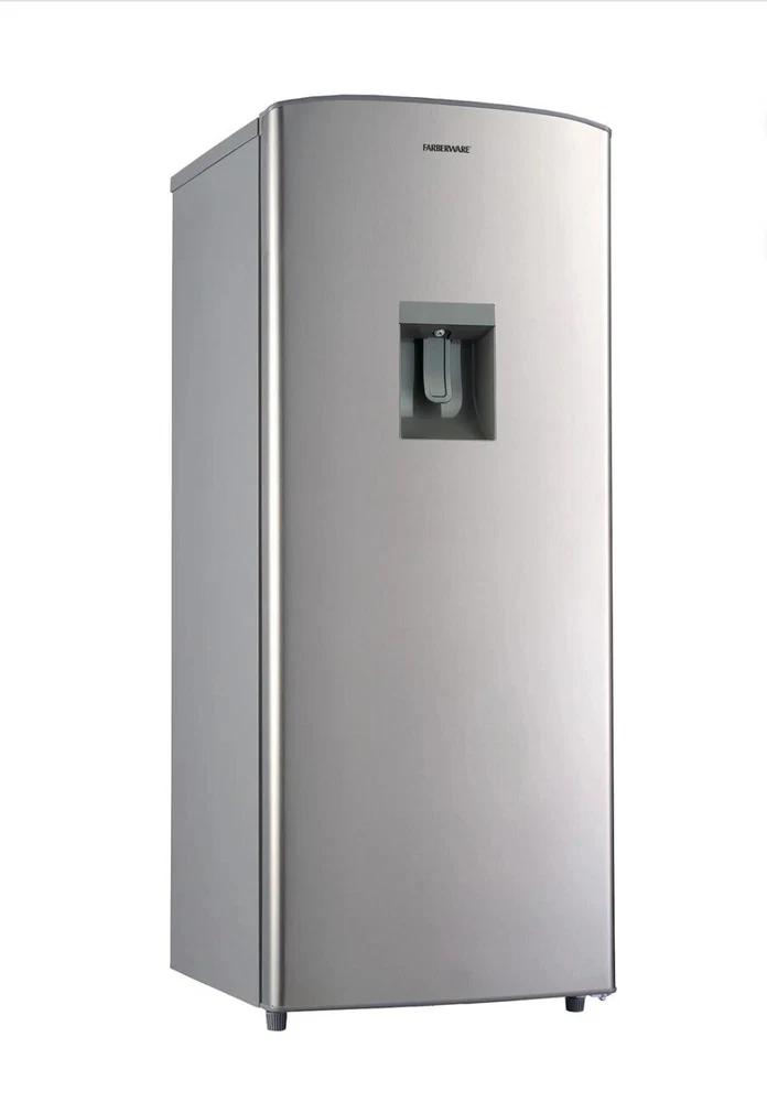 This 6.2 cu.ft refrigerator with a water dispenser is the perfect addition to any kitchen. It features a built-in top freezer and two drawers with ample storage space for all your groceries. The silver stainless steel finish adds a touch of elegance to any decor. The refrigerator has a manual defrost method and an opening door width of 38 inches, with a depth of 22 inches and a height of 51 inches. It has a cable length of 5 ft and comes with a unit quantity of 1. The Farberware brand guarantees quality and durability.