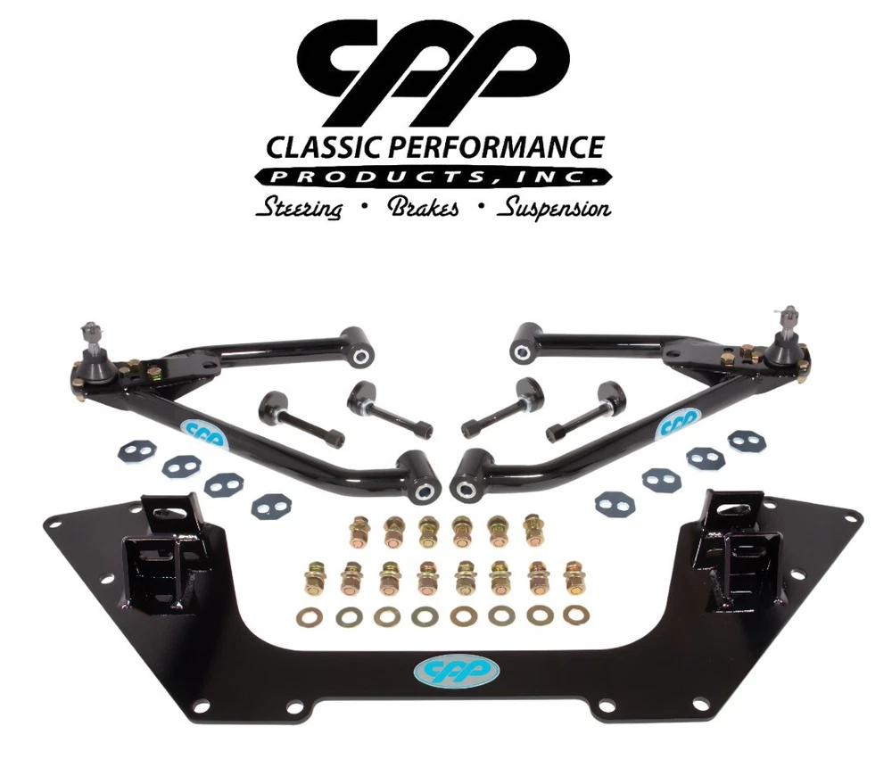 Steering • Brakes • Suspension Call the Experts TOLL FREE: for more information about your eBay purchases 1962-1967 Chevrolet Chevy II Nova CPP Mini Subframe Tubular A-arm Kit Lower Tubular Mini Sub Frame Kit Increased stability, improved steering response Better ride quality and more positive road feedback Eliminates the factory strut rods Bolt-in installation (some drilling required) One-Piece 1-1/4" 120 Wall DOM tubular lower control arms Over 2" of ground clearance 1/4" thick steel cross member Maintains proper alignment with the use of lock out plates Premium installation hardware included 4 alignment cam kits Includes new CPP premium ball joints Black powder coat finish Made In The USA Tubular Upper Control Arms Billet chromoly 4130 cross shafts and pivot sleeves 1-1/4” 120 Wall DOM tubing construction 1-1/2” 188 Wall pivot barrels Patented, self-lubricating bushings Black powder coat finish Made In The USA T his is a new 1962-67 Nova tubular control arm kit by Classic Performance Products. It eliminates the factory strut rods and adds adjustable forward control arm mounts. This kit adds stability, improved steering response, and over 2" of ground clearance for your early Chevy II Nova. By eliminating the bind of factory strut rods you are able to maintain proper alignment resulting in better ride quality and more positive road feedback. CPP’s kits accommodate both the factory sway bar and aftermarket 1" bars (1-1/8" Sway bars will not fit) . The one-piece cross member ties both frame rails together by bolting in where the factory strut rod mounts were located, providing additional strength. It also adds only 2 lbs to the car after removing the heavy factory strut rods and bulky strut rod mounts. There is no cutting or welding required. The rear of the lower control arm mounts in the factory location and the original camber adjustments are used. The front of the lower control mounts to the new cross member and adds a forward caster adjustment to guarantee a perfect, simple and hassle-free alignment. The upper control arms are preassembled on new billet chromoly 4130 cross shafts and pivot sleeves. CPP is leading the industry with billet cross shaft and pivot sleeves that captures both sides of the bushing, unlike the originals that were only retained on the 1 side of the bushing under the head of the bolt. As a result of the fully contained bushings, the arms are even stronger. Forces that would make other arms flex and twist are transferred through the bushings and easily handled by billet cross shaft. CPP created a safety feature with an interlocking shaft and sleeve design that prevents the bolts from working loose even under severe stress created by hard corning. The arms are made from 1-1/4” 120 Wall DOM tubing and have beefy 1-1/2” 188 wall pivot barrels. The continuous round cross section adds torsional rigidity. The beefy 1-1/2 .188 wall pivot barrels ensure the pivots will stay true and operate with maximum efficiency. The CPP exclusive pivot bushings are a patented self lubricating plastic that will not squeak, and has a working temperature of over 400 degrees. These plastic bushings refuse to break during impact testing and can absorb high shocks loads that would otherwise be transferred through the chassis. Nova 2" Drop Spindle Wheel Kit Nova 400 Series Power Steering Kit Nova Steering Arms Drop Lowered Coil Springs Nova Manual Master Cylinder *Note: This kit will come in a BLACK powder coat finish. Photos show silver for display purposes only!* (Part# 6267TCA-ULK-B) BEFORE LEAVING FEEDBACK If you receive an order that does not meet your expectations, please allow us the opportunity to fix the problem before leaving negative feedback or rating us. We want you to be happy with your purchase! Contact us via the Message Center if you require any assistance. SHIPPING INFORMATION Orders over $599 will be sent out with signature required. You will need to sign for your packages or make arrangements with the carrier to pick up from their nearest hub. Most items (unless noted in the handling time) ship from our warehouse within 2-3 business days from the business day your payment is received and processed in our system. Orders placed Friday and through the weekend will be processed Monday (excluding Holidays). Once your order is processed and shipped from our warehouse you will receive an email with your tracking information. We ship via UPS and FedEx. We only ship to a confirmed PayPal shipping address. All Will Call orders must be placed at least 24 hours in advance for pickup from the showroom, including in showroom or parking lot orders. Local pickup is available upon request. A matching ID, which must correspond to the name on the PayPal payment, is mandatory for picking up items. Will Call orders will not be released and will be refused if the person and ID do not match the PayPal payment. Local pick up requires a 24hr processing time before pick up. We will notify you when the parts are ready for pick up. CONTACT US Messages via eBay are answered within 24 hours. Warranty All eBay purchases come with a 30-day warranty from the day you receive your order. If you receive an item that is damaged or defective or missing components, please notify us within 3 days of receipt. Any items outside the 30-day warranty will be the responsibility of the customer to pay for any repairs, as well as cover all shipping costs.