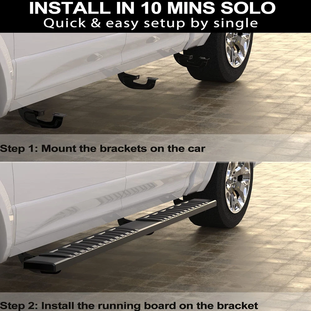 Side Running Boards For 2007-2021 Toyota Tundra Crew Max Cab Three Raised Steps