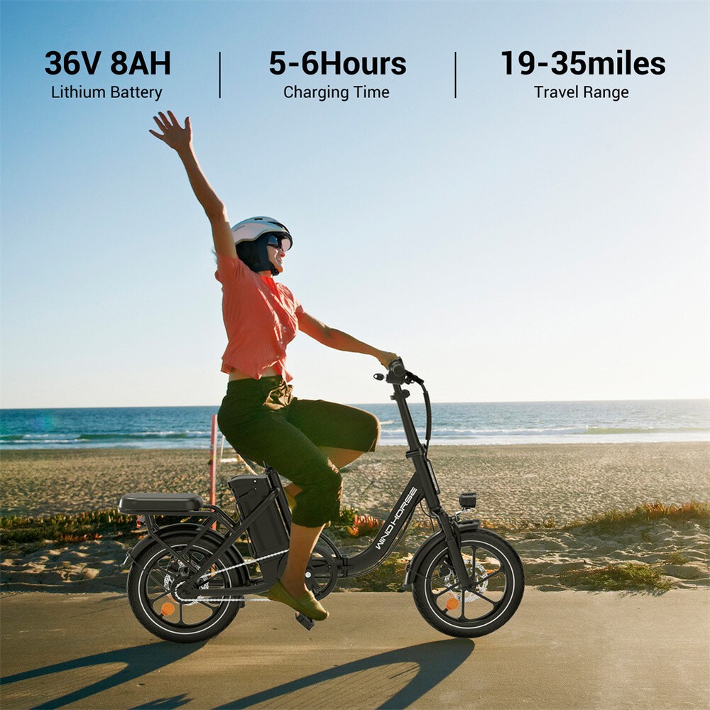 630W 25MPH Ebike Folding Electric Bike 16" Tire Adult Commuting Electric Bicycle About this item 【Reliable & Durable】 Our foldable electric bike is UL2849 and CFR1512 listed, and adopts high-strength carbon alloy with 50% more service life compared to aluminium alloy, the bicicleta electrica equipped with dual disc brakes makes the braking distance 21% shorter compared to traditional break 【Conquer 30° Hills & Anti-theft Battery】 The beach cruiser electric bike with 630w peak brushless motor, boosting the max speed up to 25 MPH and climbing a 30° hill is a breeze for it; e bikes for women battery can only be removed after key open, the Anti-theft design is more reassuring & fully charged in just 3-4 hours, and provide a max range of 35 miles under assisted driving 【Excellent Portability】 The mini ebike allows you to adjust the handlebars and saddle according to your height (5'25"-6'23"), and lectric ebike takes only 4 steps to fold the adult electric bicycles to the boot or take it on the underground, making it a great choice for travelling, riding or commuting to work & school 【3 Riding & Safety】 Our ebike cruiser offer 3 riding modes: throttle, pedal assist, and manual mode, with front suspension that lets you traverse all kinds of city roads and commuter electric bike improved visibility at night with bells, LED headlights, and rear reflector lights to ensure that nighttime riding is just as safe as daytime! 【Shop with Confidence】 The electric mountain bike is pre-assembled 98%, it's easy to suitable for novice. 𝑻𝒊𝒑𝒔: The lectric ebike needs to be charged before it can start working; Please retain the original e bike package for a while in case a return is needed. The item is UL 2849 certified: https://productiq.ulprospector.com/en Specification Bike Type Electric Bike, Commuting Bike Age Range (Description) Adult Number of Speeds 1 Color White Wheel Size 16 Inches Frame Material Carbon Alloy Suspension Type Fork Suspension Maximum speed 25 mph Range 35 miles Motor 350 watts (630 watts peak) Battery 36V 8Ah Bike weight 53.6 lbs Maximum Load 265 lbs Frame Carbon Alloy Recommended Height 5.25-6.23 feet Charge Time 3-4 hours Special Feature Adjustable Handlebars, Dual Suspension, Headlight, Dual Disc Brake, Adjustable Seat Package Included 1 x E-bike 1 x Charger 1 x User Manual 1 x Tool kit Shipping Payment Return & Refund policy Feedback Customer Support - Contact Shipping FREE SAME BUSINESS DAY MONDAY- FRIDAY SHIPPING FROM USA. All orders and payments received before 4PM EST (1PM PST) will be shipped the same business day. All other orders within 1 business day. No shipping on Weekends or US Public Holidays. No responsibility for any custom duty Shipping information will be updated when available. Payment We accept payment via PayPal. Use PayPal at checkout to pay with credit or debit. Immediate payment is required. Shipping will be arranged within 1 business day once payment is cleared. Return & Refund policy 1.We stand behind our items and offer 60 days warranty. All items are in new and working condition unless specified otherwise elsewhere in the description. 2.All Returns - defective or otherwise - MUST BE PREAUTHORIZED to guarantee refund or exchange. Please contact us to get an authorization and return address. 3.Buyer agrees to pay for the cost of re-shipment for undeliverable or wrong addresses. 4.Buyer is responsible for Return Postage as well as a 20% restocking fee if return/replacement is not a result of our mistake such as wrong item. 5.Replacement or Refund will be made upon receipt of the returned item. Please include tracking number so we can process ASAP. If you do not wish to wait for a replacement, please repurchase the item. 6.ALL REFUNDS will be processed via PayPal. Please double check via PayPal history and transaction for confirmation. PayPal will send it back to whatever you used to pay within 3-5 days. Feedback We strive to provide the best products and services. If anything about your transaction did not meet expectations, please CONTACT US and give us the opportunity to make things right. We are always here to help. Customer Support - Contact Please do not hesitate to CONTACT US. You can message 24/7 on eBay for all questions and inquiries. We will get back to you within 1-2 business days at the latest.