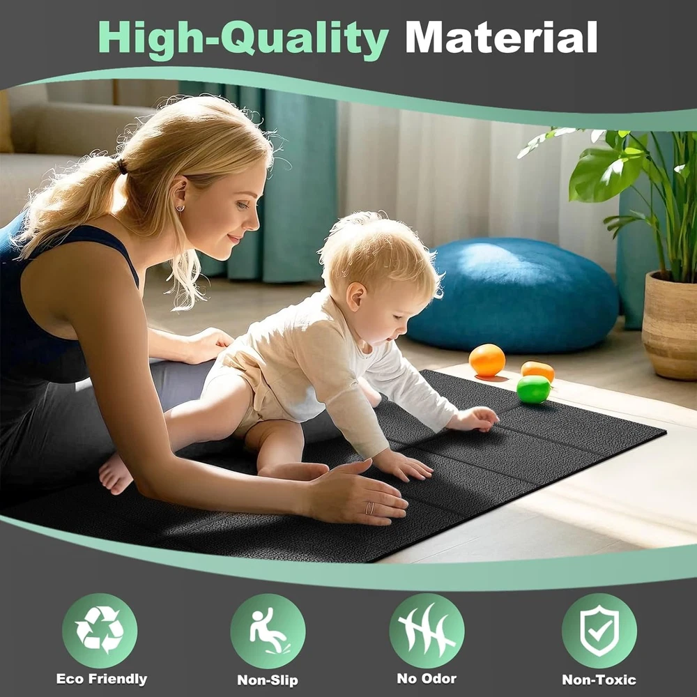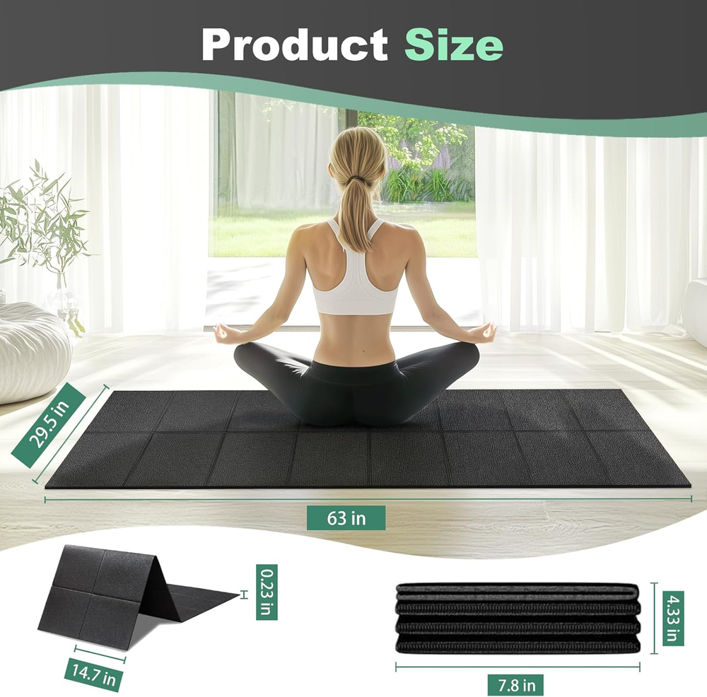 Treadmill Mat Exercise Mats for Home Workout 63"X29.5" 1/4" Compatible with Bike PROTECTING FLOORS FROM DAMAGE:Treadmill mats for carpeted floors are non-slip and shock-absorbing and can withstand the impact of fitness equipment, fully protecting floors and carpets. Reduce vibration to absorb noise. FOLDABLE TREADMILL MAT: walking pad mat for carpet unfolds to 63" x 29.5" x 1/4" and folds to 14.7" x 7.8" x 4.33",6 mm-100% thicker than 3 mm .easier to store and carry than traditional exercise mats, and you can take it anywhere. DURABLE PVC TREADMILL MAT: Made of premium PVC, without tearing or wearing out over time, built to last. walking pad mat Suitable for adults and children, Non-Toxic / Eco Friendly / No Odor. SWEAT RESISTANT AND EASY TO CLEAR:With a 100% waterproof surface design.this treadmill mat prevents sweat or water from adhering to carpets or wooden floors. Simply wipe off sweat with a towel or cloth for easy cleaning. WIDE RANGE OF USES:This exercise mat can be used as a protective pad for wood, tile, vinyl, low pile carpet, concrete floors and gym equipment. It easily holds a walker or elliptical and other bikes in place. Fits most equipment DUAL SIDED NON-SLIP DESIGN: The indoor mat has a non-slip texture on both sides to keep it stable during your workout. An essential companion for your workout. 100% HIGH-QUALITY SERVICE:If you have any questions while using our exercise mat, just feel free to without hesitation. We will be at your service within 24 hours.Thanks. Product Description Item model number A010000101 Item Thickness 0.24 Inches Number of Items 1 Color Black Pattern Solid Country of Origin China Material Polyvinyl Chloride (PVC) Shape Rectangular Item Weight 4.24 pounds Product Dimensions 63"L x 29.5"W x 0.24"Th Product Care Instructions Hand Wash Only Complimentary Shipping and Easy Returns Need to return something? Enjoy our 30-day hassle-free return policy! Take advantage of free shipping across all 48 contiguous states! Your order will be dispatched within 1-2 business days once payment is confirmed. Your Opinion Matters! Your happiness is our main goal! We welcome your feedback! If you encounter any problems, reach out to us right away, and we’ll be here to help. Explore the Extraordinary! Our collection showcases fascinating products that are sure to capture your attention. What surprises await you? Delve in and discover unique items that enrich your daily life. Don't miss the amazing things we have in store for you!