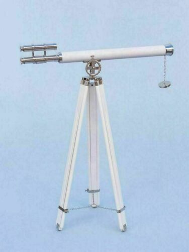 Handmade Retro Style Functional 64 Inches Chrome Telescope with Tripod Stand (Total Height with Tripod Stand i.e. Telescope Mounted on Stand= 64 Inches Approx.) Polished Chrome Made Fully Functional Telescope Gives - Ultra Large Image Size for Large Distance Sight-Seeing Object's and Protects the Objectiv Shiny Polished Chrome Finish - Classic Interior Designed Handicraft Item by our 20 Years Experienced INDIAN Artisans. Telescope Complete with a Wooden Tripod Stand is the Perfect Gift for the Explorer in your Family. This is a Fully Functional Nautical Decor Item and looks Great Resting in your Living Room, Floor or Patio deck.
