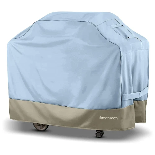 64" BBQ Grill Cover Weatherproof UV-Treated For Large Outdoor Grills Protector Premium BBQ grill cover designed to fit grills measuring 64"L x 24"W x 48"H. Made from high-strength 600D Oxford fabric with PVC backing for durability. Waterproof, UV-treated, and non-fading fabric ensures long-lasting protection. Keeps your barbecue dry and safe in all weather conditions. Eco-friendly, water-repellent top layer with a laminated undercoating for added protection. Features a dark splash guard skirt to shield against rain and dirt. Click-close straps secure the cover around the grill legs to prevent movement in the wind. Elastic hem cord with a toggle allows for a snug, custom-like fit. Stylish dual-tone design with light green on the body and a darker bottom shade. Note: The cover's color may appear darker initially and lighten slightly with sunlight exposure. Thank you for viewing our 64" BBQ Grill Cover Weatherproof UV-Treated For Large Outdoor Grills Protector.