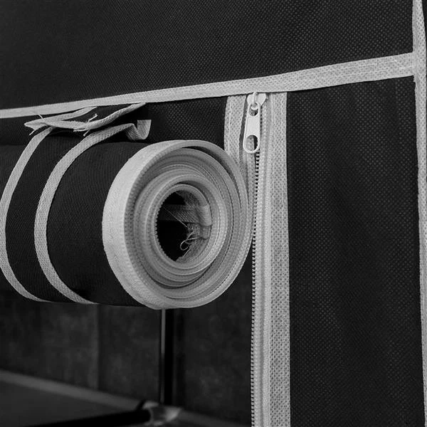 Introductions: Our 64" Portable Closet Storage Organizer Clothes Wardrobe is Made from Selected Non-Woven Fabric Cover, High Quality Steel Tube and PP Plastic Connectors, Which Will Durable and Meet Your Long Term Storage Needs. The Size for The Clothes Wardrobe Makes it Suitable for Organizing Your Small Rooms and Walk-In Closet. Movable Improved Clothes Hanging Rod and 6 Storage Shelves Offers You Enough Space Both for Your Longer Outfits and Folded Clothes. Zippered Dustproof Cover Offered to Keep Your Item Away from Dust and Water-Proof Fabric Tiers are Easy to Clean. It Will Be Great Convenient and Functional. Do Not Hesitate to Buy One! Features: 1. STURDY & DURABLE CONSTRUCTION: Made from Selected Non-woven Fabric Cover, Water-Proof Fabric Tiers, High Quality Steel Tube and PP Plastic Connectors, This Portable Storage Closet Will Meet Your Long Term Storage Needs. 2. SPACE SAVING ORGANIZER:Great Size of 41.3”W x 18.0” D x 64”H(105x44x163cm), Which Makes it Suitable for Organizing Your Small Rooms and Walk-in Closet. 3. SPACIOUS STORAGE CLOSET: Movable Clothes Hanging Rod and 6 Storage Shelves Offers You Enough Space both for Your Longer Outfits and Folded Clothes. 4. DUSTPROOF COVER & WATER-PROOF TIER: Zippered Dustproof Cover Offered to Keep Your Item away from Dust and Water-proof Fabric Tiers are Easy to Clean. 5. CONVENIENT TO USE & ASSEMBLE: This Amazing Closet Makes Your Clothes or Daily Accessories Easy to Access; Installation is just Easy, no Tool Required. Note: 1.When receiving the goods, please confirm the product according to the listing of instructions. Once you find Less pieces, please provide relevant pictures to contact us. We will deal it in the time. 2.Please install goods with the instruction manual. 3.It is recommended that the installation should not be too tight to adjust easily. After the structure is installed, firm the interface for more stability. Specifications: 1. Item Name: 64" Portable Clothes Closet Home Wardrobe Clothes Storage Organizer with Shelves 2. Material of the Home Wardrobe: Non-Woven Fabric Cover, Steel Tube And Plastic Connection 3. Dimension of Home Wardrobe: (41.3 x 18.0 x 64)" / (105 x 44 x 163) (W x D x H) 4. Color of Home Wardrobe: Black Package Includes: 1 x Portable Closet 1 x Instruction Notes: 1. Please make sure all poles reach the bottoms of plastic connector holes. 2. Please be careful during assembly and dis-assembly.