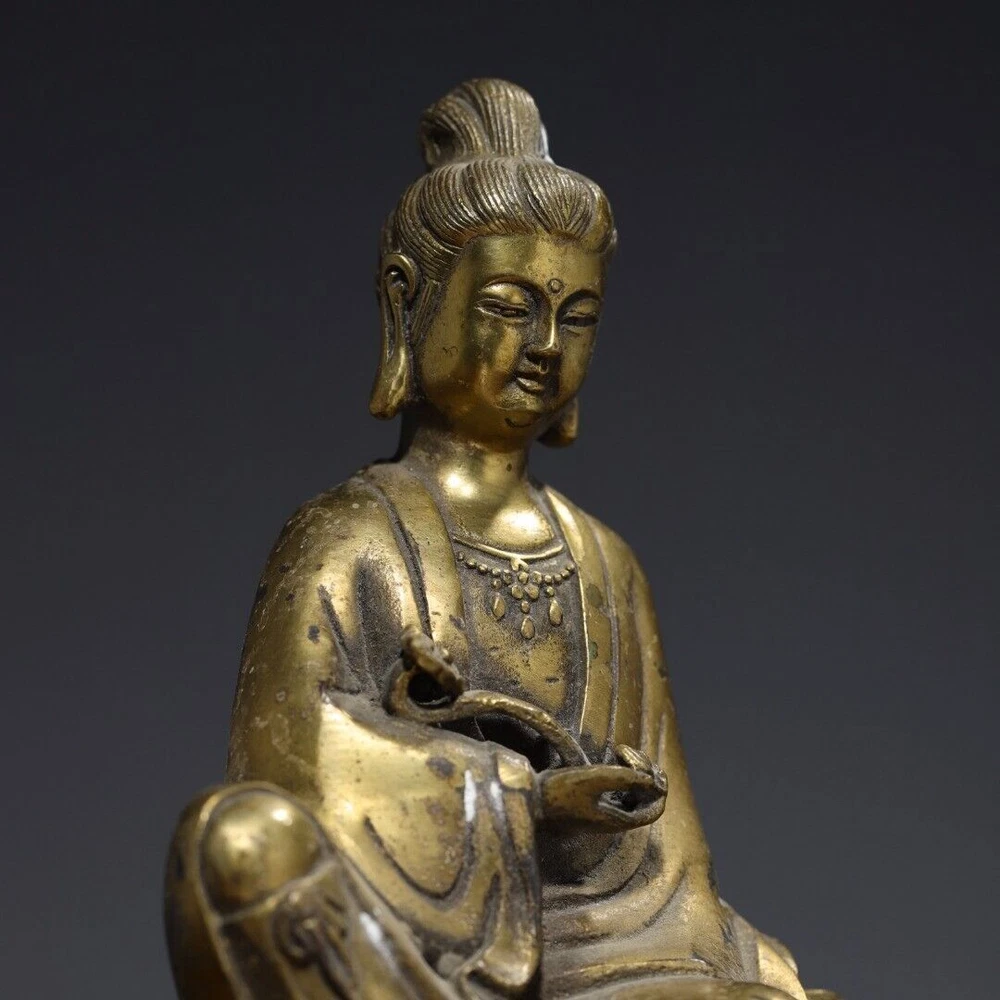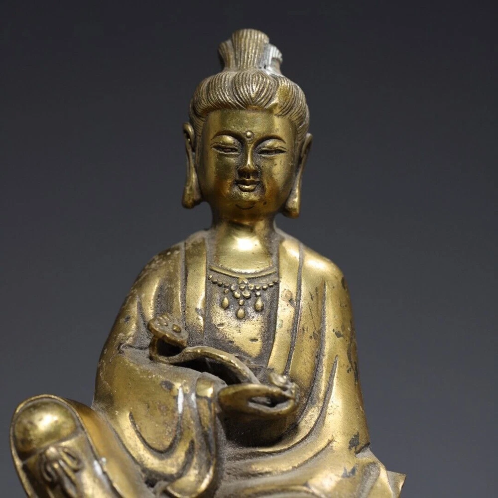 7.5-inch Antique Tibetan Bronze Gilt Shakyamuni Buddha Temple Statue