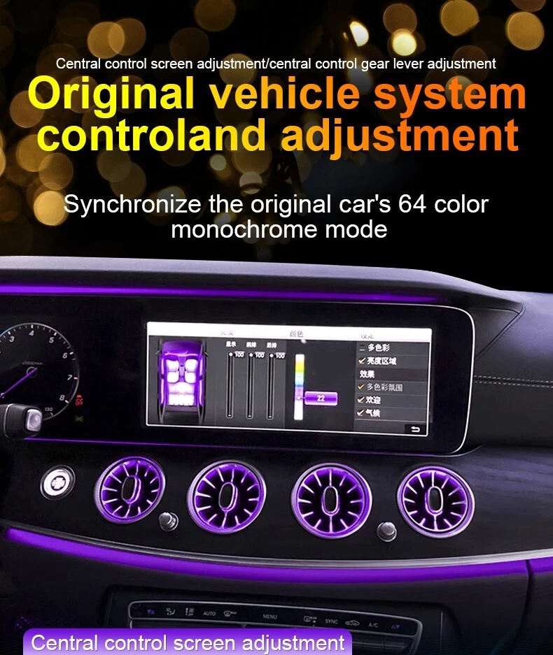 Features: 100% Brand New in Box W213 8PCS/Set 64 Colors NEW Version High Quality Plug and Play Interior Front and Rear Dashboard Air Vent with Ambient Light 1:1 Replacement; NO Modification Required Fitment: For Mercedes Benz E-Class W213 2017 2018 2019 2020 2021( 64 Colors ) - OEM design, fit original air vent position perfectly - Light color is synchronized with original ambient light - Light color and brightness can be controlled by original Command knob Package included: 8 PCS/Set Front and Rear Air Vents with Ambient Light NOTE: NOT Including Installation Guide or Manual. Professional installation is highly recommended .