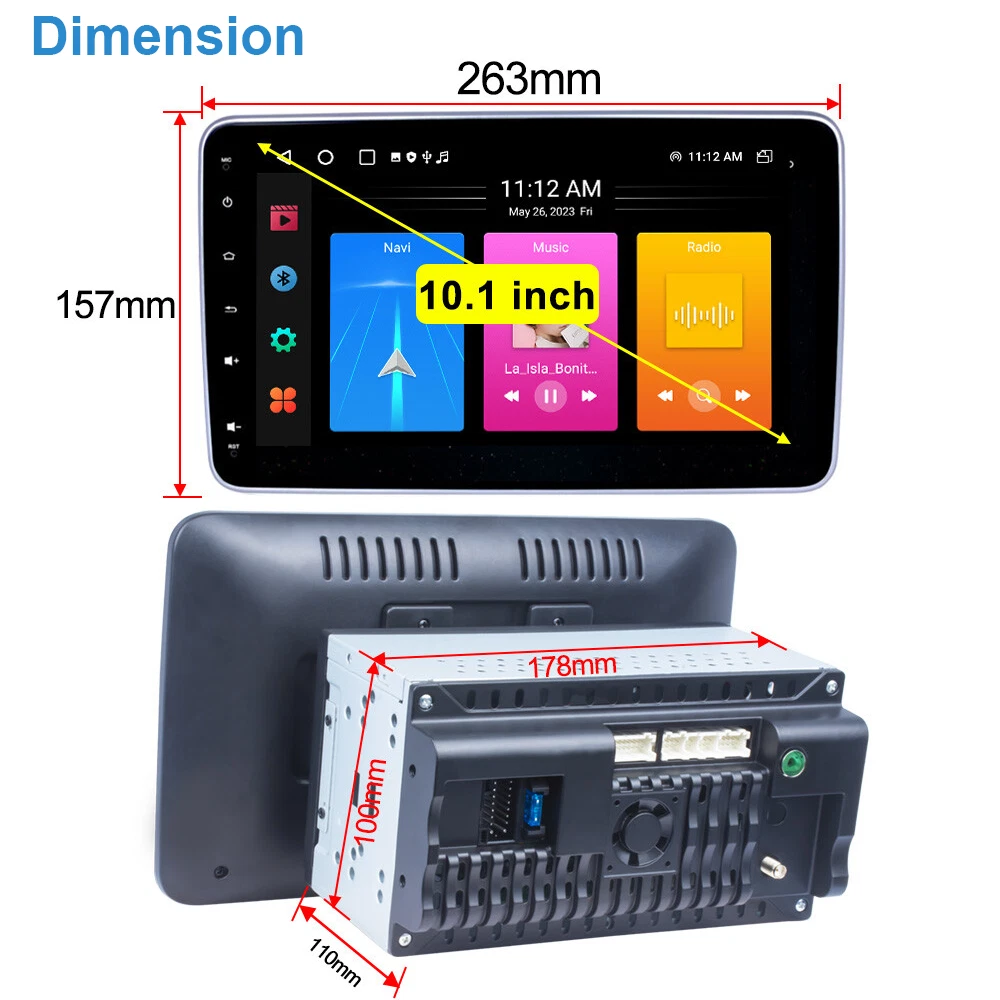 Android 13 Double 2 Din Car Stereo Radio Adjustable & Detachable Screen Plug & Play 2G RAM & 64G ROM Wireless Apple CarPlay Android Auto GPS Note:Please Check Radio's Size with Car Dashboard Before Buying !!! Features: 1. Adjustable & Detachable Screen Universal Double 2 Din Car Stereo 2. Android 13.0 Operating System Quad Core 2G RAM & 64G ROM 3. Support Wireless/Wired Apple CarPlay & Android AUTO & Mirror Link 4. WiFi Connect: Built-in WiFi module, can connect to internet by WiFi hot spot, download APP to watch online video etc. 5. GPS Navigation: Built-in navigation module, support on-line off-line navigation, support Google Map, Waze, iGo Map etc. 6. Bluetooth Function: Built-in Bluetooth module, support Bluetooth phone connect, handsfree for calling or Bluetooth music play 7. Rear View Function: Support Rear view camera input, backing car more safer and convenient (Camera not included!) 8. Radio Tuning: Support FM Radio, FM1/FM2/FM3 87.5-108 MHz, you can listen the radio which is your interested. 9. Rear Dual USB Port Input: Support rear cable USB input, can play music/movie Or wire CarPlay Android Auto 10. Screen: 2.5D Capacitive Touch Screen, 1024*600 Resolution, Support 1080P Video 11. Improve sound quality with equalizer, use DSP EQ to adjust the sound to render better results, support subwoofer output 12. Split Screen Function: You can use 2 APP at the same time when you use split screen function 13. Support DAB+: It can support USB DAB adapter antenna system (Optional, you can buy it in our shop). 14. Optional Accessories: Support USB DVR input (Optional, you can buy it in our shop) 15. OBD2: Support OBD2(OBD2 adapter optional) Specifics: ◆Size: Double 2 Din (100mm) ◆Voltage: DC 12V ◆ CPU: Quad Core Cortex A9 1.5GHZ x4 ◆RAM: 2G ◆ROM: 64G ◆Operating System: Android 13.0 ◆Screen Size: 10.1 inch 2.5D capacitive touch screen ◆Apple CarPlay: Support Wireless/Wired Connection ◆Android Auto: Support Wireless/Wired Connection ◆iOS/Android Mirror Link: Support Wireless/Wired Connection ◆GPS Navigation: On-line/Off-line ◆Bluetooth Version: 5.0 ◆WiFi Connection: Support ◆Bluetooth keyword: 0000 ◆USB: Dual USB 3.0 ◆DAB Connector: USB ◆DVR Connector: USB ◆Radio Band: FM1/FM2/FM3 ◆Audio Ouput: 4x50W ◆Subwoofer Output: Support ◆DSP EQ: Support ◆Steering Wheel Control: Support ◆Reversing Rear View Input: Support ◆Split Screen Function: Support ◆Resolution: 1024*600Pixel Support 1080P video ◆Support Audio Format: MP3 MP2 AAC OGG FLAC APE WMA WAV RM AC3 ◆Support Video Format: AVI 3GP/MP4 MOV MPG MKV WMV RMVB ◆Language: English, German, French, Arabic, Hebrew, Spanish, Italian, Czech, Hungarian, Dutch, Polish, Swedish, Ukrainian, Romanian, Greek, Danish, Finnish, Russian, Turkish Product included: 1 x Android Car Stereo 1 x Power Cable 1 x GPS Antenna 2 x USB Cable 1 x RCA Input/Output Cable 1 x Microphone 1 x User Manual Payment 1. We only accept payment via PayPal, other payment is not acceptable. 2. Please make sure your shipping address is the same of your PayPal address before you pay. Shipping 1. We ship to Worldwide,e xcluded some far away places. 2. We only ship to confirmed PAYPAL address; your PAYPAL address must match your Shipping address. 3. Any non-received items caused by invalid address registered on PayPal are not in our full refund or replacement policy. Shipping fee has including the local handing and packaging fee. 4. All the items will be shipping within 1-2 working days after receiving the payment, except some holidays. 5. When the shipping method is express delivery, some areas need to pay remote fees to the courier company. Taxes, Customs & Duties 1. Some countries are required to collect customs duties. Please confirm your local customs duties before placing orders. 2. We will not be responsible for any custom delay or tax, because transit time is highly depended and provided by postal Service. Returns 1. If you have not satisfied as you received the item, please return it within 30 days for a replacement or money back. Please contact us before you return it. 2. All returned items must be in the original packaging with all components and accessories included, and you must provide us the return shipping information (The shipment or the tracking number) 3. Return shipping fee is to be paid by the buyers. We will not be responsible for any custom duty or import tax. Warranty 1.One Year Manufacturer's Warranty for defective items (excluding items damaged and/or misused after receipt). 2.Defective items must be reported and returned to us within the warranty period (and in the original packaging, if possible). You must tell us what the defect is and give us your eBay ID. We do not repair or replace items with an expired warranty. Feedback