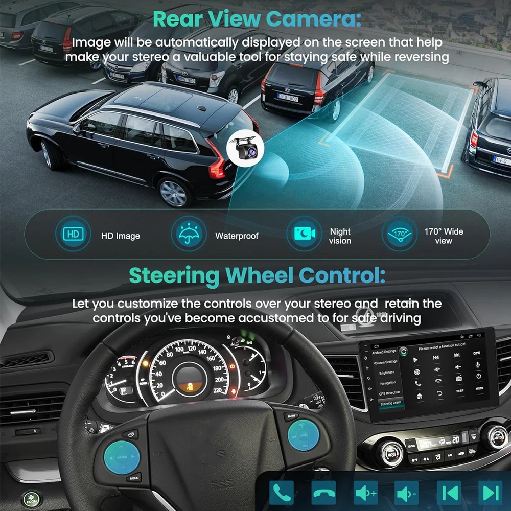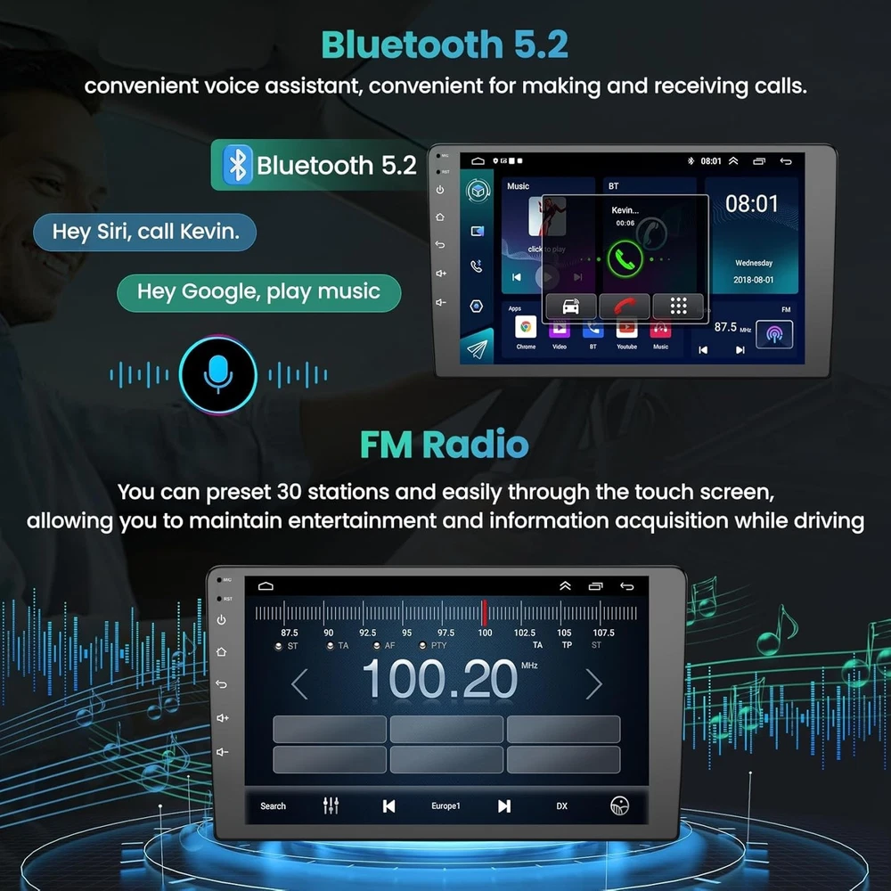 Features: ●HD 9" 2.5D Capacitive touch screen ● Wireless & Wired Carplay : wired or wireless Carplay in-vehicle system can closely integrate the user's iOS device and iOS experience with the dashboard system. Users who use wireless Carplay can connect to the car system via Bluetooth to realize voice-controlled navigation, make calls, send and receive messages, and listen to music. It is only available for iPhone . ● Wireless & Wired Android auto : wired or wireless Android auto in-vehicle system can closely integrate the user's Android device and Android experience with the dashboard system. Users who use wireless Android auto can connect to the car system via Bluetooth to realize voice-controlled navigation, make calls, send and receive messages, and listen to music. It is only available for Android phone(Android phones need to download android auto APP) . ●Built-in GPS Navigation: Users can purchase directly from play store for offline navigation. With wifi connected, Google Maps can be used perfectly, you can go anywhere you want and never get lost again. ● High definition 1280P: Full capacitance touch screen for easy operation, well designed user interface for car only. ●Built-in WIFI: Connect to WIFI, and you will find a new world,the most convenient one is the online map. ●Rear camera: support AHD high-definition 1080P camera image input( Rear camera not included). ●Hi-Fi function: High fidelity, reproduced sound highly similar to your original sound ●Steering wheel control: Through it you can control the functions you need by steering wheel, more convenient ●Built-in Bluetooth with A2DP/Hands Free/Phone book:Bluetooth hands-free calls,Bluetooth music player,Auto loading phonebooks ● Double USB adapter input ●Support file manager: Support download, install and delete over thousands of android apps ●Support multilanguage: Support languages, up to 40 national languages ●You can enjoy music from you mobilephone without any cables, and also support USB connetion. ●FM Radio: Online music you can transfer the music to the car stereo by FM to enjoy the original car stereo sound,with 18 preset stations ●Time Setting:You can use the network or GPS to open the date and time automatically, or you can adjust it manually. ●Support external microphone Specifications: System:Android 13 Screen size: 9'' Memory: 4GB (RAM)+64GB (ROM) Screen Resolution:1280*800 CPU: 8 cores Bluetooth Version:5.0 Power output:4*45W Voltage:DC 12V Work temperature:-20℃-70℃ Apple CarPlay: Support Wireless/Wired Connection Android Auto: Support Wireless/Wired Connection Wifi:Support GPS:Support Steering wheel control function:Support camera: support Reversing input: AHD/CVBS Video output:Support Maps:Built-in offline maps(requires internet to download data) USB:Double USB interface Radio Band:FM Audio format:APE/FLAC/WAV/MP3/WMA etc Video format:MKV/RMVB/AVI/MP4/MDV etc Picture format:PNG/JPEG/JPG/GIF/WBMP/BNP etc Bluetooth keyword:0000 Factory setting keyword: 3368 Language:English, Arabic, Russian, Hebrew, Spanish, Italian, French, Thai, German, Japanese, Korean, Turkish, Czech, Hungarian, Dutch, Polish, Swedish, Ukrainian, Romanian, Greek, Danish, Finnish Package Included : 1 x Car MP5 Player 1 x Power Cable 1 x GPS Antenna 1 x Rear Camera lnput Cable 1 x Camera 1 x RCA Cable 2 x USB Cable 1 x Crowbar 1 x Instruction manual Notes: 1.We provide clear pictures, measurements where possible. Please check as much as possible to make sure the item is the one that you need. 2.Please allow 0.5-1 inch difference due to manual measurement.(1inch=2.54cm) 3.Vehicle Compatibility Chart May Vary Depending On Vehicle Options, Production Dates, And Install Application. Please Inquire Before Purchase. 4.Instruction is for Reference.Professional Installation Is Highly Recommended!!If you want to know how to use or install it,please contact us by Email.We will provide help as much as possible.