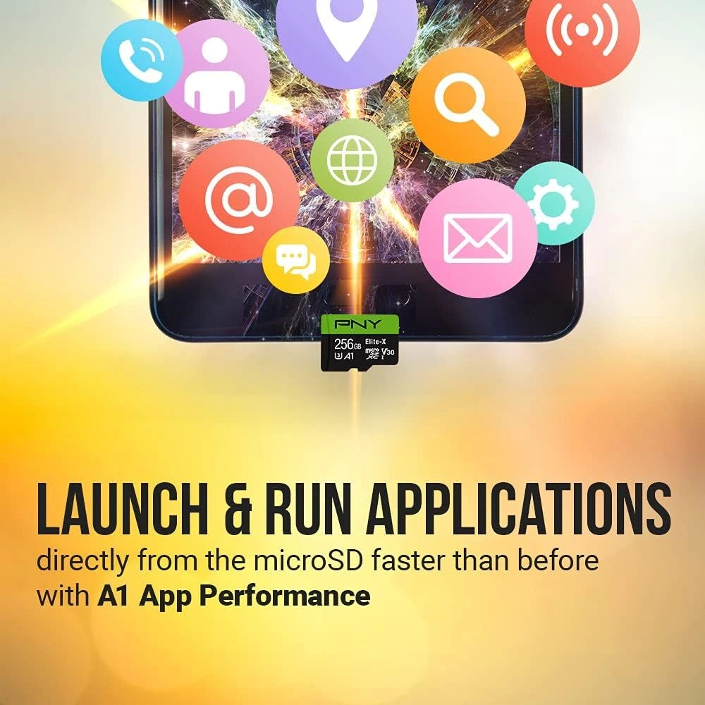 Class 10, U3, V30 speed class performance with read speeds up to 100MB/s for fast and smooth burst mode HD Photography and 4K Ultra HD Videography A1 App Performance enables apps to run directly from the microSD card, delivering faster app launch and performance. A1 provides minimally 1500 IOPS (Read) and 500 IOPS (Write) Record and transfer videos, photos, music, files and more from microSD enabled host devices such as Android smartphones and tablets, action and surveillance cameras, drones, computers and more Included SD adapter for compatibility with SD enabled host devices including DSLR cameras, video cameras, desktops, and laptops Reliable & Durable: Magnet Proof, Shock Proof, Temperature Proof, Waterproof The PNY Elite-X Class 10 U3 V30 microSD Flash Memory Cards are the perfect solution by which to expand on-board memory of mobile devices such as smartphones, tablets, action cameras, drones, and more, allowing users to free up space to enjoy more digital content. The Elite-X microSD Flash Memory Cards are rated Class 10, U3, V30, with read speeds of up to 100MB/s, guaranteeing that users can not only quickly and easily store and share content between devices, but also engage in HD photography and 4K Ultra HD Videography by leveraging the U3 technology. What’s more, the Elite-X microSD Flash Memory Cards feature V30 Video Speed Class, ideal for 4K Ultra HD video at 4096x3072 format, allowing users to capture high quality content on their mobile devices. Rated A1, the PNY Elite-X is optimized for app performance, allows users to run apps directly from the microSD card, delivering faster app launch and performance than ever before.