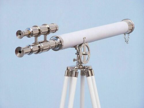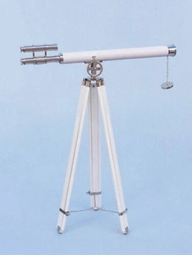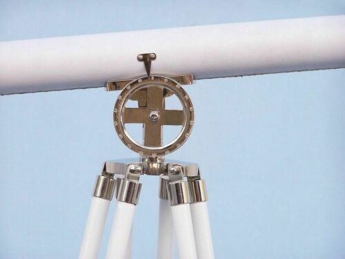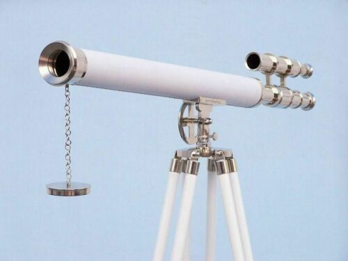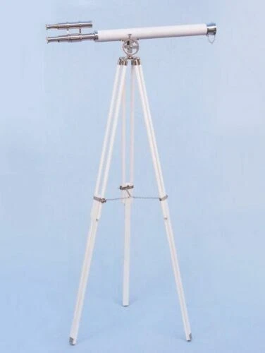 ANAYA NAUTICAL 64" Floor Standing Admiral's Chrome with White Leather Griffith Astro Telescope Material Wood, Chrome , Glass, leather Water Resistance Level Not Water Resistant Focus Type Center Focus About this item Handmade Retro Style Functional 64 Inches Chrome Telescope with Tripod Stand (Total Height with Tripod Stand i.e. Telescope Mounted on Stand= 64 Inches Approx.) Polished Chrome Made Fully Functional Telescope Gives - Ultra Large Image Size for Large Distance Sight-Seeing Object's and Protects the Objective Lens with the Chrome Cap . Shiny Polished Chrome Finish - Classic Interior Designed Handicraft Item by our 20 Years Experienced INDIAN Artisans. Telescope Complete with a Wooden Tripod Stand is the Perfect Gift for the Explorer in your Family. This is a Fully Functional Nautical Decor Item and looks Great Resting in your Living Room, Floor or Patio deck. Focusing Is Accomplished by Adjusting the Knurled focusing ring near the Eye Piece of Telescope with upto 15x Magnification . Adjustable Height of the Tripod Legs with Ease as your Comfortability. Beautiful Wooden Tripod Supports and Steadies Telescope. Perfect for Collectible Gifts Ideas . Best Item to Gift your Loved Ones as a Christmas Gift, Father's Day Gift, Birthday Gift, Anniversary Gift, New Year Gift, Boy's & Girl's Gift, etc. Arrives Carefully in Corrugated Export Packaging To Ensure You Receive It In Perfect Condition. Made In INDIA, Loved By The World - Manufactured & Sold by SIFAAT WORLD from INDIA. Sold & Manufactured By ANAYA NAUTICAL HANDICRAFT from INDIA . BUSINESS CUSTOMERS are Most Welcome. We Accept B2B Orders also ! We Provide Best Quality services at an Affordable & Lowest Price. For Any Query or Doubts, Feel free to contact us at any time. You Can Message us Via Ebay. Your feedback is very important for us. Please write a review or feedback, leave any neutral,positive or negative feedback. We Offer the best service throughout the World.