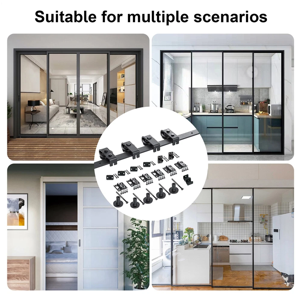 64in Bifold Sliding Door Track,Sliding barn door hardware kit,Black,Brand New Complete Hardware Set: Our sliding door hardware kit includes everything you need to build a hassle-free, quiet and smooth sliding door. With effortless installation, this multifunctional solution provides a space-saving design to maximize your indoor area while keeping the door organized. Unmatched Versatility: Featuring wear-resistant bearings and a nylon wheel combination, this heavy-duty carbon steel sliding door kit, with a robust 6mm thick track, significantly improves carrying capacity. Effortless Setup: Our detailed graphic and text instructions make installing our sliding door hardware kit a breeze, saving you valuable time and effort. Flexible Function: Ideal for creating a multi-functional space in your home, this sliding door hardware kit enhances your study and dining room, offering wide applications beyond the classic barn door look. Wonderful for Gift Giving: Ideal for men and women seeking a practical gift, this sliding door hardware kit enhances home aesthetics while offering a smooth, silent glide—perfect for family and friends. Transform your dining room with ease using sliding barn door kit. Easy to install, this folding door kit comes with a 6mm thick track. Ideal for family homes looking to update their décor. Specification: Colour: Black Material: carbon steel Track size: about 64 inches (162CM) Track splicing method: 4 pieces Scope of application: Door panel thickness 0.5-50MM Packing list: 4x FT track 4x roller 4x roller swivel stand 2x roller holder 6x hinge 2x ground guide fixings 2x sealing strip 1x screw pack 1x instruction manual 5x pipe clamp 35mm 5xwood screws M8*90 Note: The door is not included. Due to different lighting and screen settings, the item color may be slightly different from the picture. Due to different manual measurements, please allow a 1-2cm difference in size. We accept PayPal payment,PayPal Credit,Credit card or debit card and so on. Payment should be completed within 4 (Four) days of auction closing. Or unpaid dispute will be filed for closing auction. We will leave a positive feedback immediately after payment is received. We appreciate a positive feedback as much as you do. If for some reason there is any issue with the purchase, please contact us prior to leaving feedback, we will be glad to work together and provide a satisfying solution. · Welcome to our eBay store. As a leading and emerging company in manufacturer and exporting business, we are specialized in Business and Industrial Products, Sporting Goods, Pet Products, Home and Garden products for more than 10 years. We believe that it is our vision and mission to provide innovative products with best service and competitive price to satisfy you. Our goal is to make sure that you can find exactly what you are looking for and make it easy for you to place your orders. · Email Customer Support: · 9:00am-2:00am PST Sunday-Friday All emails will be responded to within 12-24 hours
