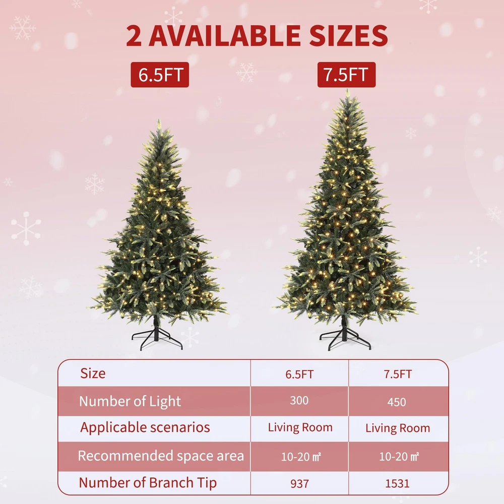 Appearance: High-quality flame-retardant PVC creates a lifelike Christmas tree with a pine needle design and 3D texture for a shatter-resistant greenery that enhances your holiday ambiance. Thickened Base and Branches: The 20% thicker trunk and branches securely hold your decorations and prevent bending. The reinforced metal base features three bolt-on fasteners for total stability. UL Safety Certification: UL-certified pre-lit Christmas trees undergo a rigorous inspection to ensure they are intact, light properly, and securely mounted, ensuring safety. Christmas warm white light: Switchable to create a variety of ambiances. Easy Assembly: The hinged metal frame allows for quick installation; the branches can be adjusted to fill gaps for a seamless transition. No more hassles with installation. Space-Saving Foldable Design: After the holidays, simply disassemble the segmented trunk and fold the foldable base for compact storage. away until next year, making it incredibly convenient.