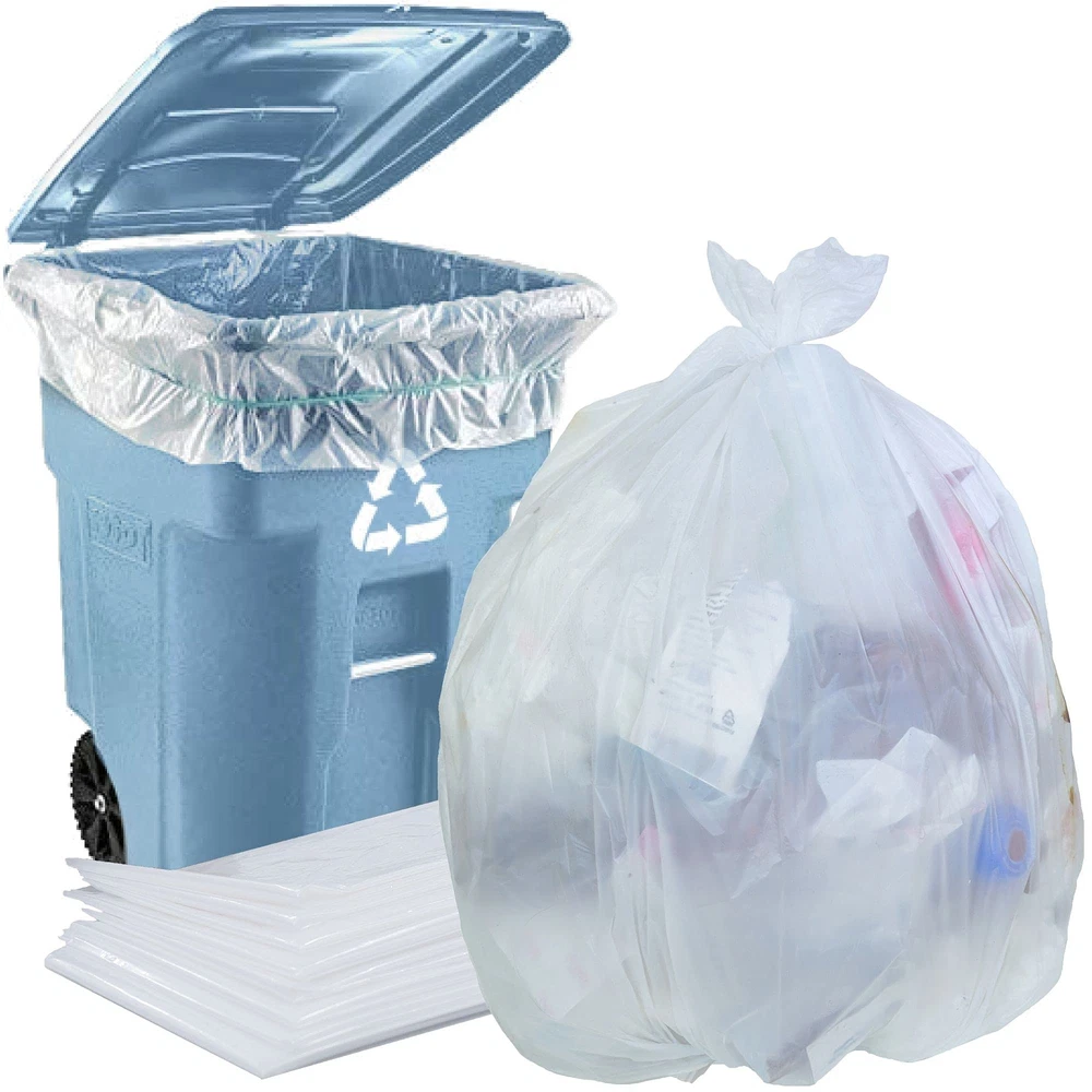 65 GALLON TRASH BAGS – These large trash bags are designed to fit a 64 gallon trash can with wheels, with enough excess to overlap the side and tie the bag off when full. Suitable for residential household garbage and commercial waste. Keeps cans from getting dirty. INDIVIDUALLY FOLDED – 1.5 mil thickness for tear resistance and durability. Unlike most heavy duty trash bags, ours come individually folded so you can take at a time without bringing the whole roll with you. The trash bags remain uncrumpled and easy to open. HEAVY DUTY INDUSTRIAL STRENGTH – Made from industrial strength low density resin with a thick gauge that makes these trash can bags resistant to tears and leaks. Will not break or lose structural integrity even when punctured by thorns, sticks and pointy objects. PROUDLY MADE IN USA – Our bulk garbage bags are proudly Made in the USA under strict environmental guidelines and quality assurance standards. Ideal for use as heavy duty contractor bags, lawn bags and trash can liners for large commercial garbage or recycling. KEEP LARGE TRASH CANS CLEAN – Use these trash compactor bags to keep the trash can clean and free from foul odors. Keep everything contained before trash day pickup and avoid rotten spills that attract flies and maggots. A perfect fit without being too tight or slipping down.