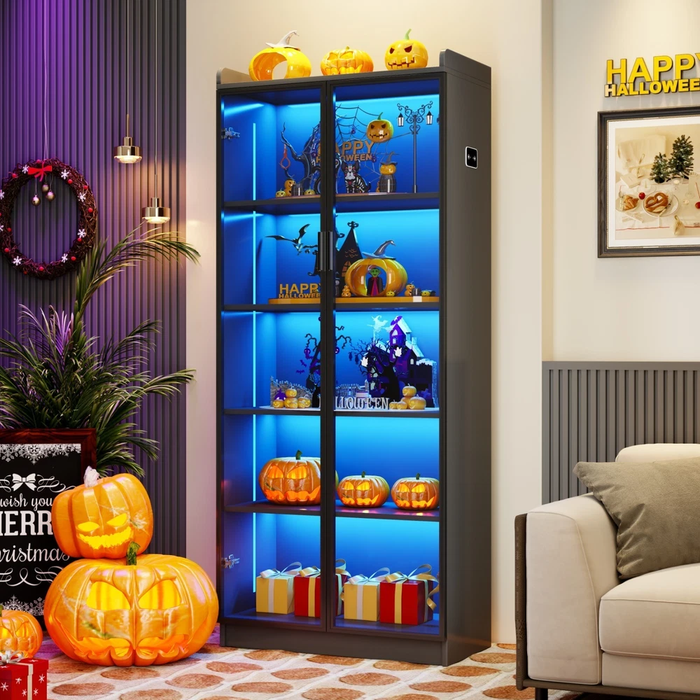 Smart Sensor LED Light: The LED display cabinet is equipped with three LED light modes (blue/white/yellow) for you. The light will automatically turn on when approaching, and automatically turn off when leaving, making it easy to find what you need in the dark while also conserving energy Sufficient Storage Space: Dimensions of 13.78" D x 27.56" W x 64.96" H. Dystler cabinet comes with 2 adjustable shelves and 2 fixed shelves, providing you with sufficient capacity to organize books, place toys, store food, and more Concise & Beautiful Design: The Smoked Black color acrylic door design of the storage organizer allows you to clearly see your favorite antiques, books, and toys, and it complements any family style. It perfectly blends with your elegant home decoration and adds highlights to your room High-Quality Wooden Material: Our display case is crafted from premium-quality wood, ensuring durability and longevity. It is also waterproof and easy to clean, so you don't have to worry about water splashes or stains. A simple wipe-down keeps it clean and hassle-free Easy Assembly: The cabinet with doors comes with clear assembly instructions, making it easy for anyone to assemble, even if you're not a DIY expert. It's perfect for use in kitchens, dining rooms, bedrooms, bedrooms, living rooms, offices, etc., offering versatile storage solutions for your needs More Storage Cabinet Details You Might Want to Know DAY & NIGHT