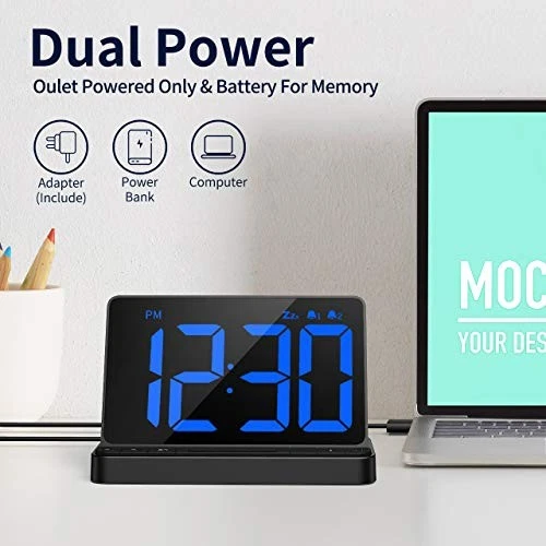 Return Policy Fast Delivery Trusted seller Digital Alarm Clock: LED Clock with 6.5" Large Display, USB Charging Port, Stepless Dimmer, Dual Alarm, Snooze, 12/24 Hr, Easy Use Loud Clock for Heavy Sleepers Kids Seniors Bedside Bedrooms Product Description Simple Use Even for Seniors and Kids: This bedroom alarm clock with clearly marked button on the front, you will experience zero stress when setting the time or alarm. With absolute simplicity and clear indicators, this basic digital clocks is simple and easy to operate. It is a great gift for children family kids seniors elderly teens and heavy sleeper. Large LED Display with Full Dimmer: A large 6.5in digital blue LED display with clear numbers allows it easy to read from any angle of a room. 2.5 inch tall big numbers comes with full range brightness(5% -100%). You can adjust the brightness at will to meet your different needs in daylight or nighttime.A slide switch on the back allow you easily adjust the brightness, no more struggles to find a button to adjust the brightness in a middle night. The time display support both 12/24 Hrs format. Dual Alarms with 9 Minutes Snooze: Easy to set 2 separate alarms for your different needs in daily use. The alarm will continue for 30 minutes, ensuring you definitely wake up, of course you can easily turn it off when you wake up. The big snooze button is easy to reach and no need opening eyes, easy to extending an extra 9 minutes of sleep. Better Wake You Up with Multiple Ringtone Options: This digital alarm clock is equiped with 5 alarm sounds and 3 adjustable volume. Pick your favorite sound among the 5 alarm sound options(Beep/Ocean Wave/Bird Sound/Piano Music/Soft Music), and wake up to adjustable alarm volume from 75-85db give you more choices to start your new day. Plug in Digital Clock and USB Charging Port: The output USB charger port can charge your phone or other electronic devices to make your nightstand or table more neat. And this clock is operated by USB-C to barrel power cord, we also provide a USB-C cord and power adapter in the package. A perfect desk clock suitable for bedroom office kitchen bedside study and living room. All Setting Keeps When Unplugged - It come with a built-in button battery to keep all the settings when unplugged/power goes out so you do not need to set it again. During the backup battery, the screen will go blank and alarm will not sound. All the above features make it a perfect alarm clock for you to use on your bedside table, bedroom nightstand, living room or desk in your home and office. What You Get: 1 x NK5256 Digital Alarm Clock, 1 x Type-C USB Cable, 1 x DC Adapter, 1 x User Manual Shipping Returns Payment Shipping Shipping is FREE to all addresses other than APO/PO boxes in the lower 48 states. All our stock ships from US-based warehouses. Shipped via USPS or UPS (depending on location and package weight) Unless stated otherwise, all orders will ship within 24-72 hours of your payment being processed. Check our feedback to see the great reviews of FAST shipping we offer. Returns Seller does not accept returns Payment We currently accept payment via eBay managed payments only. Once payment is cleared, we will dispatch your shipment within 1-3 business days. Please refer to the "Shipping" tab for more information regarding shipping speed to your destination.