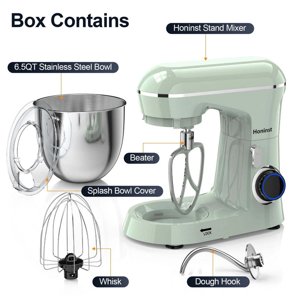Store Categories Store Categories Other 6.5 QT Electric Kitchen Stand Mixer 10+P Speeds Lightweight with Tilt-Head Product Description 【Power Motor with 10-Speed Control】Equipped with a robust pure copper motor offering multi-speed adjustment and a 6.5 QT stainless steel bowl, it enables access to a wide array of recipes. The 3D Multi-Dimensional Planetary Mixing Technology mimics manual techniques to achieve superior blending of ingredients. 🍩【Versatile Design】Featuring a one-touch head-tilt mechanism for enhanced usability and ease in adding ingredients. The splash bowl cover maintains kitchen cleanliness and food hygiene. The anti-slip suction feet ensure stability of the food mixer during operation. 🍰【Quiet Operation 】Adopting Aerodynamic Theory, it reduces the resonance within the mixer's internal chamber, coupled with high-quality bearing parts, resulting in noise levels below 60 dB. The overheating protection feature guarantees a longer lifespan for the dough mixer. 🎂【Extensive Accessories 】The Household Stand Mixer includes three accessories: a dough hook, whisk, and beater, all of which are Food Safety ETL Certified. It caters to a broad range of cooking needs, from whipping cream to kneading dough, for bread, cakes, pizzas, pastries, muffins, and waffles, liberating your hands for convenient cooking. 🥪【 24/7 Online Assurance】The electric kitchen mixer is an ideal gift for family and friends. We offer round-the-clock online support. Please do not hesitate to contact us if you encounter any issues while using it. 🎊High Performance Pure Copper Motor 🎊10 Optimized Speeds With Pulse Function 🎊6.5 Qt Larger Stainless Steel Bowl 🎊Tilt-Head Design Mixer 🎊Stainless Steel Decoration Belt 🎊Low Operation Noise ≤60Db 🎊Anti-Slip Pad & Sturdy ABS Housing Payment Policy Shipping Policy Returns Policy Feedback Policy Contact Us Payment Policy All major credit cards are gladly accepted including credit, debit and gift cards, Apple Pay, Google Pay, PayPal, and PayPal Credit. Your order will be processed pending receipt of cleared payment through your payment of choice. Sales tax may be charged de pending on your lo cation. Shipping Policy After payment is received, all items are shipped within 48-72 hours after work (except Saturdays, Sundays, and holidays). During the store's vacation, there are dedicated warehouse staff to arrange shipment, and there will be no delay in shipment. Please rest a ssured to purchase. All products are free of shipping. Returns Policy We accept return within 30 days since you received your package. Please contact us for return or refund. I f you have any questions, please feel free to contact us and we will reply to you within 24 hours. Feedback Policy We greatly appreciate your POSITIVE feedback. Please do NOT leave negative feedback without asking for help. Our aim is to provide Top Level Customer Service. If you have any questions, please feel free to contact us and we will reply to you as soon as we see the message. Thank you very much for your understanding. Contact Us You can contact us by leaving us an txt message on Ebay. We will respond to each txt message within 24 hours every working days(within 36 hours on weekend). We will provide you the best servi ce, sincerely appreciated you would contact us to get a better solutions . Thank you so much to consider time difference, maybe we couldn't not reply to you in a timel manne. Copyright © 2023 Dianxiaomi