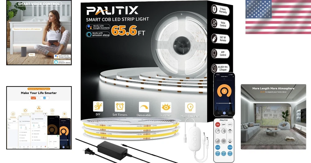 65.6ft COB LED Strip Light - Voice-Controlled, Dimmable, Daylight White 6000K ‹ › ‹ › ‹ › ‹ › ‹ › ‹ › ‹ › ‹ › ‹ › 65.6ft COB LED Strip Light Illuminate your spaces with the unparalleled brilliance of our 65.6ft COB LED Strip Light . Designed for those who appreciate both aesthetic beauty and functional excellence, this strip light offers voice control, dimmable brightness, and a pristine daylight white color temperature of 6000K. Features: Super Bright: Boasting an impressive total of 9600 high-quality LEDs , enjoy even lighting without dark spots. Long Length: An extra-long 65.6 feet allows for expansive coverage to decorate larger spaces effortlessly. Voice Control: Compatible with Alexa , Google Assistant , Tuya , and Smart Life for complete hands-free operation. UL Listed for Safety: Operating at a low 24V voltage, the strip is safe to touch and made from lead-free materials. DIY Flexibility: Features a cuttable design at every 50mm (1.97 inches), allowing easy customization to fit any space. Durable Design: Equipped with double-layer pure copper PCB for enhanced conductivity, heat dissipation, and longevity of over 65,000 hours . Benefits: Enjoy superior lighting quality with a color rendering index of up to 93+ , ensuring authentic color reproduction. Elevate your home or business ambiance with ease, perfect for high-end clubs, under cabinets, dressing tables, and more. Simplify your lighting control with hands-free voice commands, adjusting brightness and modes with mere words. Transform any environment into a stylish haven, whether for entertaining guests or for personal use. Why Choose Our COB LED Strip Light? Unlike traditional SMD LED strip lights, our COB technology ensures a seamless and uniform lighting experience. Perfect for the discerning decorator who values quality, versatility, and aesthetics. Create an immersive atmosphere in any area of your home or workspace. Order your 65.6ft COB LED Strip Light today and experience the art of illumination like never before! Packaging and Service: Included in your purchase: 2 × 32.8ft/10m COB LED strip lights 1 × RF remote control & controller kit 1 × DC24V 96W power supply 1 × user manual For assistance, contact our professional support team, available to help you within 24 hours . Shipping Free & Fast Shipping - We offer free shipping to most of the USA with a normal delivery time of 3-7 days. However, due to the current situation, additional delivery time (up to 3 weeks) may be required for some items. Alternative Carriers - We may use alternative carriers (e.g. USPS, FedEx, UPS, etc.) to ensure your package arrives safely and on time. Due to the use of multiple carriers, we are unable to provide a tracking number automatically. Handling Time - Orders are processed and shipped within 1-2 business days of receiving cleared payment. Shipping Restrictions - Shipping to Alaska, Hawaii, Puerto Rico, Guam, and other US territories may incur shipping charges or delivery restrictions. Please contact us before ordering, or your order can be refunded/cancelled. State Restrictions - There may be restrictions based on your state of purchase. For example, certain items may not be shipped to California due to state regulations. Contact for Tracking Updates - If you require tracking updates or have any concerns about the delivery of your order, please feel free to contact us, and we will be happy to assist you. Return 30-Day Hassle-Free Returns - We want you to be completely satisfied with your purchase. If you are not, you can return the item within 30 days of receiving it for a full refund or exchange. Easy Return Process - To start a return, simply contact us and we will provide you with a prepaid return shipping label and detailed instructions. Restocking Fee - There are no restocking fees for returns. However, the buyer is responsible for return shipping costs if the return is not due to a seller's error. Refund Processing Time - Refunds will be processed within 5 business days of receiving the returned item in its original condition. Payment We accept all major credit cards, PayPal, and Apple Pay for your convenience. Your payment information is secure and encrypted to ensure a safe and seamless transaction. Please complete your payment within 3 days of purchase to avoid any delays in shipping. Feedback Your feedback is extremely important to us. We strive to provide the best products and customer service possible. If you are satisfied with your purchase, please take a moment to leave us a positive review. If you have any concerns or issues with your order, please contact us before leaving negative feedback. We are committed to resolving any problems and ensuring your satisfaction. Contact Us If you have any questions or concerns, please feel free to reach out to our customer support team. You can contact us through the eBay messaging system. We are available Monday to Friday, 9:00 am to 5:00 pm EST, and we will do our best to respond to your inquiry within 24 hours. Buy it now and enjoy a pleasant shopping experience! UPC: Not Set Size: 65.6ft/20m Item Height: Not Set Lumens: Super Bright Power Consumption: 96W Unit Quantity: 1.92 lbs Occasion: Multipurpose Features: Dimmable,Flexible,Cuttable,Connectable Light Color: Daylight White Control Style: Voice Department: Unisex Baby & Toddler,Kids,Teens,Adults Theme: Not Set Room: Bedroom,Dining Room,Home Office/Study,Kitchen,Living Room Material: Copper,Plastic Character: Not Set Labels & Certifications: Not Set Brand: Unbranded Type: LED Strip Lighting Technology: LED Light Shape: Strip Installation Area: Indoor Sensor Type: None Color: White Power Source: Corded Cord Color: White Number of Settings: 1 LED String/Strip Type: COB Energy Star: Not Set MPN: Not Set EC Range: Not Set Voltage: 24 V LED Chip Code: Not Set Output Voltage: Not Set Manufacturer: Not Set Character Family: Not Set IP Rating: Not Set Amperage: Not Set Number of Lights: 9600 Coun