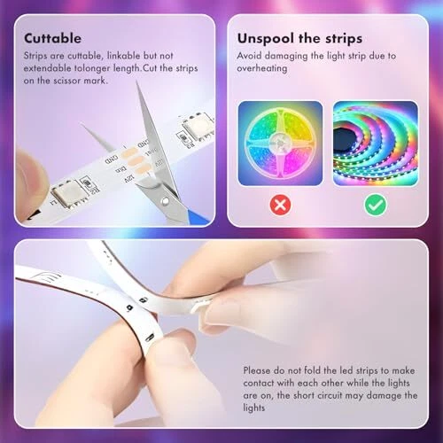Menu 1. We require immediate payment. 2. We currently accept payment via eBay managed payments only. 3. Once payment is cleared, we will dispatch your shipment within 1-3 business days. Please refer to the "Shipping" tab for more information regarding shipping speed to your destination. 65.6ft Led Lights for Bedroom Music Sync Color Changing Led Strip Lights IC+RGB with Remote App Control Led Strip, Led Lights for Room Home Kitchen Decor Party Product description Intelligent IC+RGB effect: In contrast to traditional RGB lights, IC+RGB LED lights for bedrooms can display multiple colours in a single line at the same time. The colourful combination of LED strips for bedrooms creates a strong visual impact on party decorations. Music synchronisation and remote control: IC+RGB LED strips can be freely controlled in thousands of colours via a 24-button remote control or smartphone APP. Adjustable brightness and multiple lighting modes to suit the room's ambience, and a built-in high-sensitivity microphone effortlessly syncs with your favourite audio for a romantic, relaxing and upbeat party atmosp with music. Timing and Scheduling: You can schedule the smart LED strip to switch on and off automatically via the mobile app, as well as set a countdown timer, set the Wifi LED lights to turn on and off at specific times, turn all the lights on when you come home, and turn all the lights off when you leave home. Room/Bedroom Decoration: These 65.6ft long IC+RGB LED strips for bedrooms are large enough to decorate and colour larger areas, giving you greater coverage and more design options. Ideal for bedrooms, ceilings, kitchens, living rooms, bars and party decorations. Note: Please wipe the surface well to make it clean and dry before intalling the smart LED strip lighting for home decorations. Hair, dust and other stuff may affect the stickiness of the tape. (Not recommended for outdoor use.) PLEASE MESSAGE US IF YOU HAVE ANY OTHER QUESTIONS, AND MANY THANKS FOR READING ALL OF THIS. Copyright ©#. All Rights Reserved.