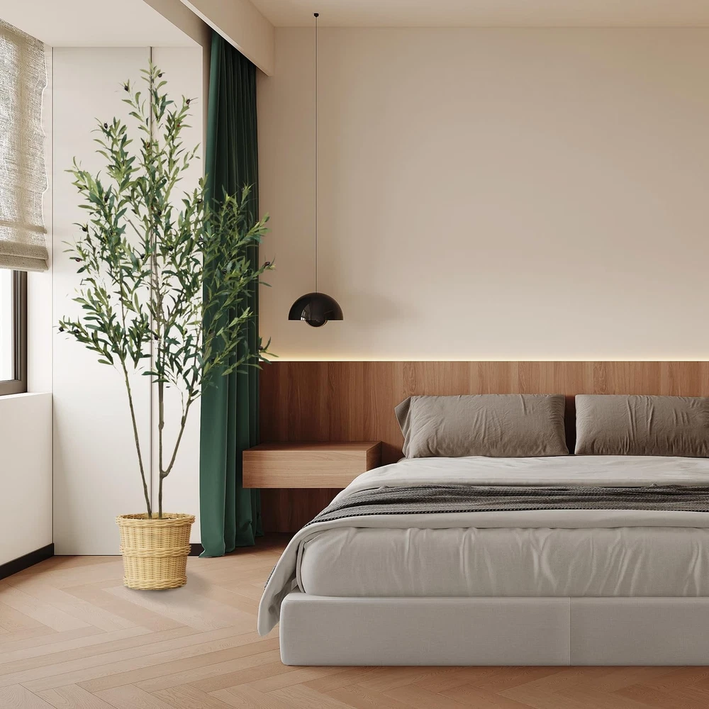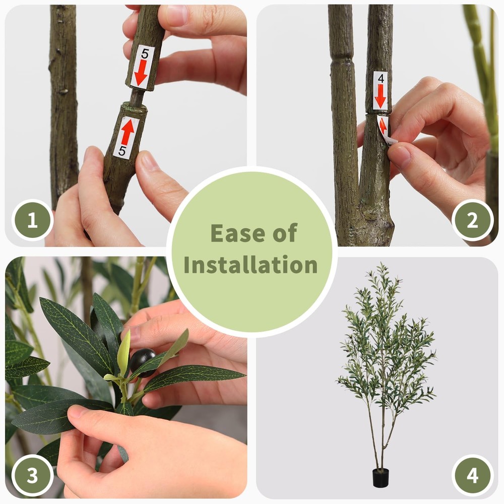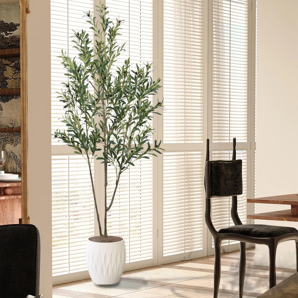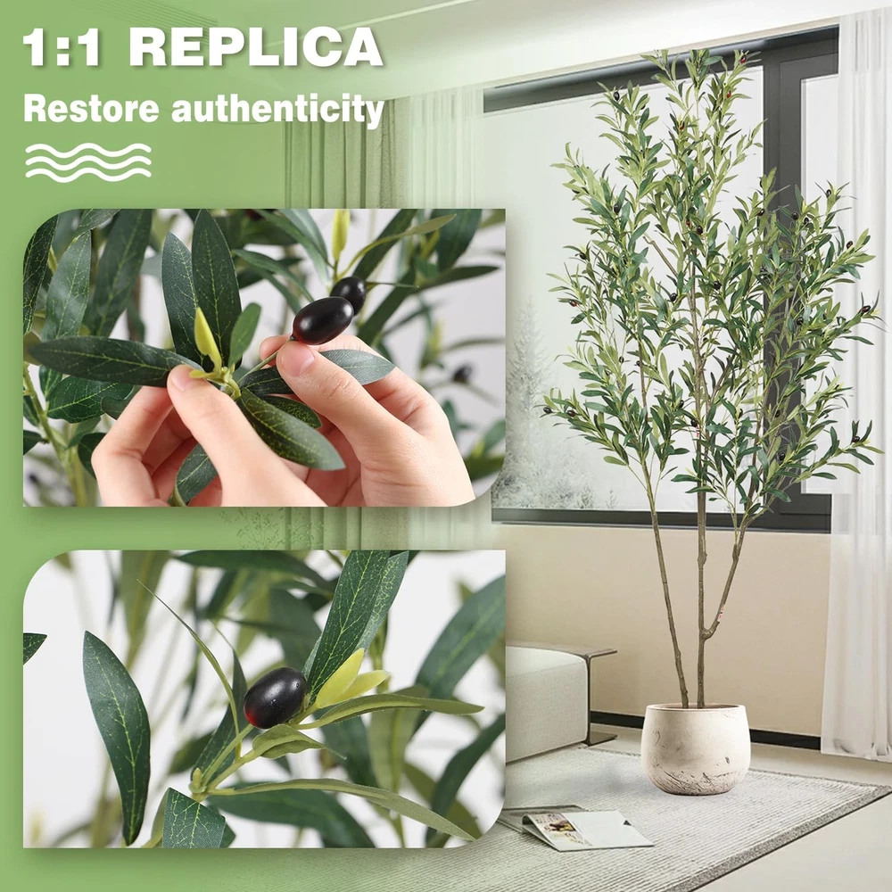 6.56ft Artificial Olive Tree, Faux Olive Tree with Lifelike Fruits, 78.74in Fake Olive Tree with Sturdy Plastic Pot, Artificial Plants for Office Home Living Room Indoor Outdoor Decor Perfect Dimensions: Standing at an elegant height of 6.56 feet, this artificial olive tree is a charming addition to any space. Each branch and fruit is meticulously crafted, offering a full-bodied appearance that rivals its natural counterpart. This stunning tree brings a touch of nature into your living environment, enhancing comfort while adding an artistic touch to your decor. Whether placed in a home, office, or studio, it serves as a striking focal point that elevates the overall aesthetic. Realistic and Adjustable: Experience the perfect blend of realism and versatility with our lifelike faux olive tree. Its adjustable branches make it easy to customize for any living space. Crafted with a sturdy metal frame and soft metal wire in the trunk and leaves, it offers exceptional durability, allowing you to reshape it as needed without worrying about damage. No Maintenance Required: Enjoy the beauty of an evergreen with our 6.56-foot faux olive tree! Revel in its elegance without the need for sunlight, watering, or pruning—simply wipe it clean to maintain its lasting charm. Safe and High-Quality Materials: Our faux olive tree is made from durable, eco-friendly silk for a realistic look that’s both waterproof and safe. The sturdy base prevents tipping, ensuring safety around children and pets. For the best visual impact, we recommend placing it in a larger decorative planter. Perfect Decor: This 6.56-foot artificial olive tree is ideal for enhancing a variety of spaces, including living rooms, bedrooms, reading nooks, dining areas, and offices. Its versatility also makes it suitable for entryways, patios, bookstores, coffee shops, and other commercial settings. Perfect for special occasions like Christmas, Thanksgiving, or everyday decor, it effortlessly elevates any environment.