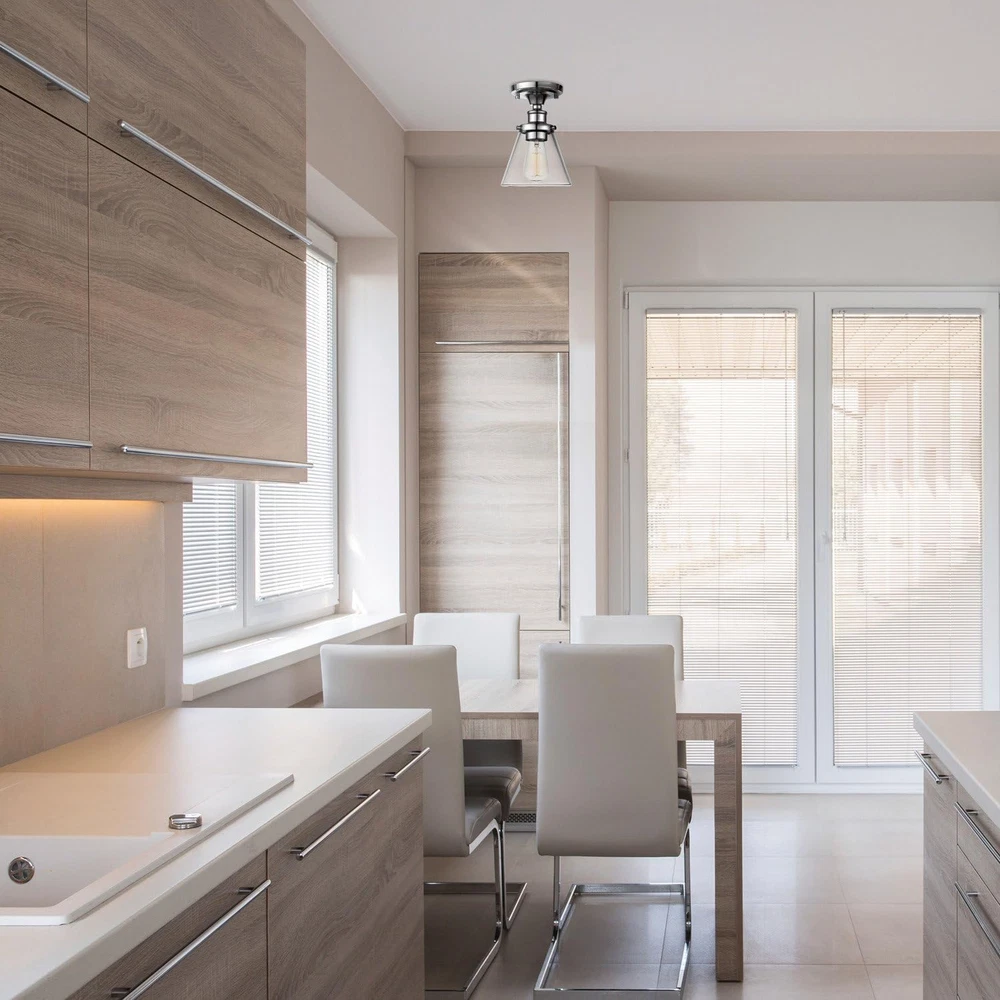 Special Features: Dimmable Country of Origin: China Light Color: Warm White Shade Color: Clear Lighting Method: Downlight Product Dimensions: 6.5 x 6.5 x 9.25 inches Color: Chrome Material: Glass Wattage: 60 Watts Batteries Required?: No Fixture Type: Non Removable Specification Met: cULus Listed Number of Items: 1 Shade Material: Glass Finish Type: Chrome Finish Mounting Type: Ceiling Mount Controller Type: Push Button Brightness: 60 lumen Global Trade Identification Number: 00058219657263 Item model number: 65726 Switch Type: Dimmer Special Feature: Dimmable Specific Uses For Product: Indoor Assembled Width: 6.5 inches Indoor/Outdoor Usage: Indoor Item Weight: 2 pounds Type: Does not apply Bulb Base: E26 Light Source Type: LED Model Name: Mercer Power Source: Corded Electric Style: Retro Part Number: 65726 Unit Count: 1.0 Count Assembled Height: 9.25 inches Control Method: App Warranty Type: Limited Assembly Required: No Room Type: Kitchen, Living Room Installation Type: Flush Mount Embellishment: Crystal Number of Light Sources: 1 Light fixture form: Ceiling Brand: Does not apply UPC: 313036224273 Theme: Vintage gtin13: 313036224273