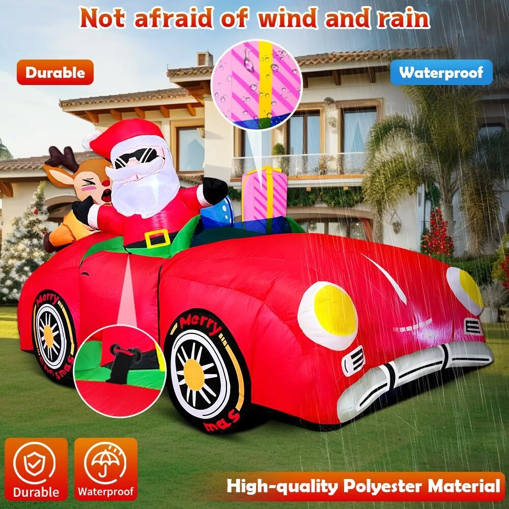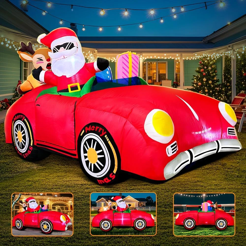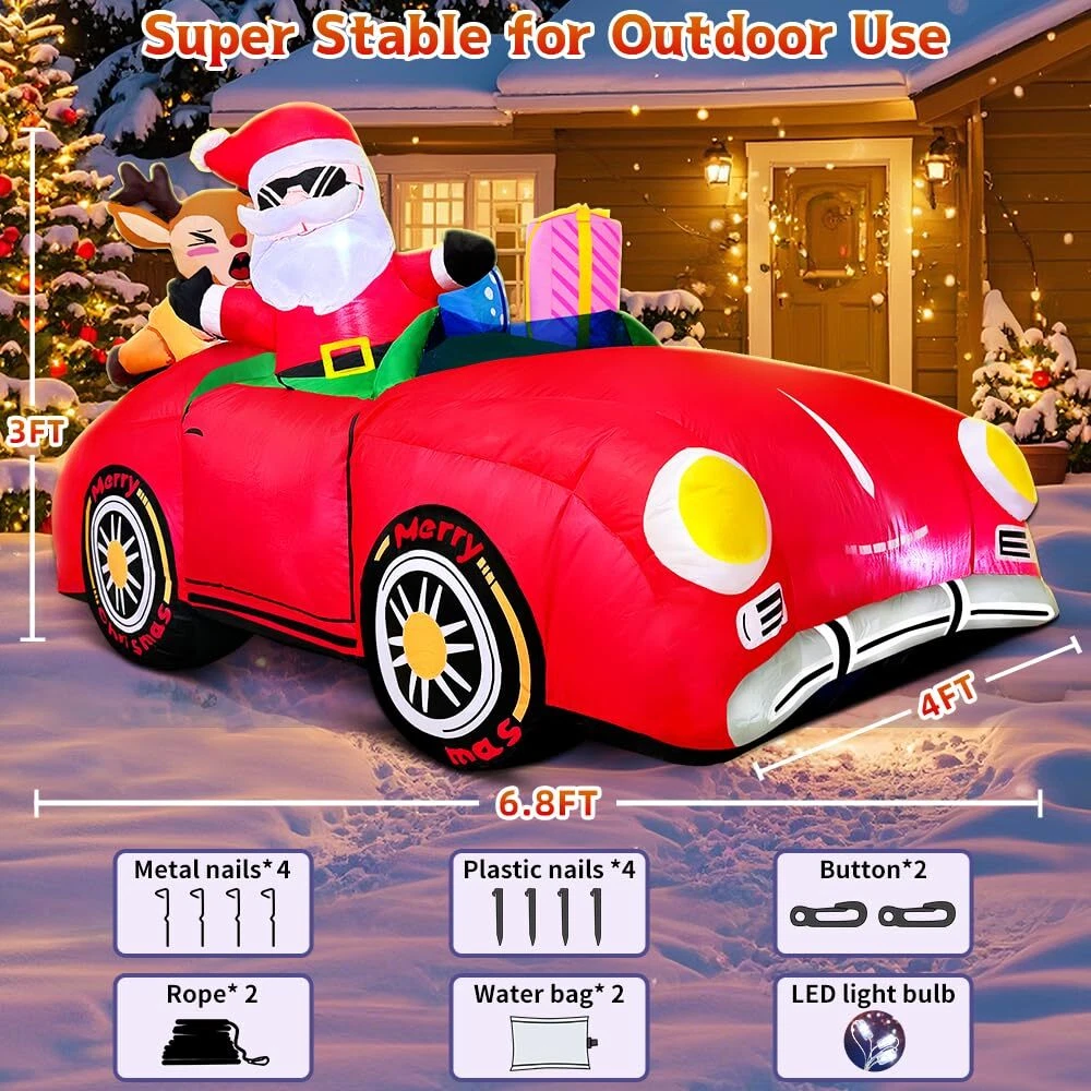 2024 NEW 6.5FT Giant Christmas Inflatables red car to celebrate Christmas.Build-in LED Lights,the super bright colored LED light will illuminate your yard and easily attract the guests, friends, and ' attention so that can be the most attractive & Christmas decorations outdoor in your neighbors. Used for Christmas outdoor and indoor party decoration, it can add a strong Christmas atmosphere. Our Christmas blow up red car is equipped with an upgraded powerful inflatable fan, the inflatable Christmas yard decorations can be inflated quickly in minutes, it is efficient and fast. Don't forget to zip up the bottom zipper before inflated. There is a rechargeable plug with UL Certified adapter are very safe to use, indoor and outdoor connected to the power supply can be inflated. Christmas inflatable decoration is made of polyester fiber, waterproof and durable, not easy to fade and not easy to be poked, perfect for your yard. Updated sewing technology, product sewing tight and neat. Ensuring our outdoor Christmas decorations yard can be used in rainy and snowy days.The deflated Christmas decor is easy to and can save space very well. Christmas inflatable outdoor decorations is perfect for Christmas decor indoors. Christmas inflatables outdoor decorations are suitable for indoor, outdoor, yard, garden, family, party, stage, Christmas Eve activities.Which can attract everyone's attention and can make everyone enjoy a happy Christmas together. Welcome to , where you can enjoy the best shopping experience and service. We have many styles for you to choose from, and wish you a happy shopping. We have Christmas tree, Santa Claus, gingerbread man, snowman and other styles for you to choose from which will brighten up your yard, as well as your holiday!