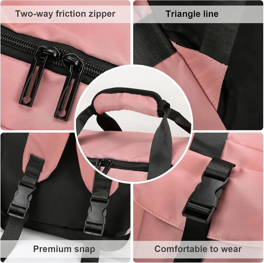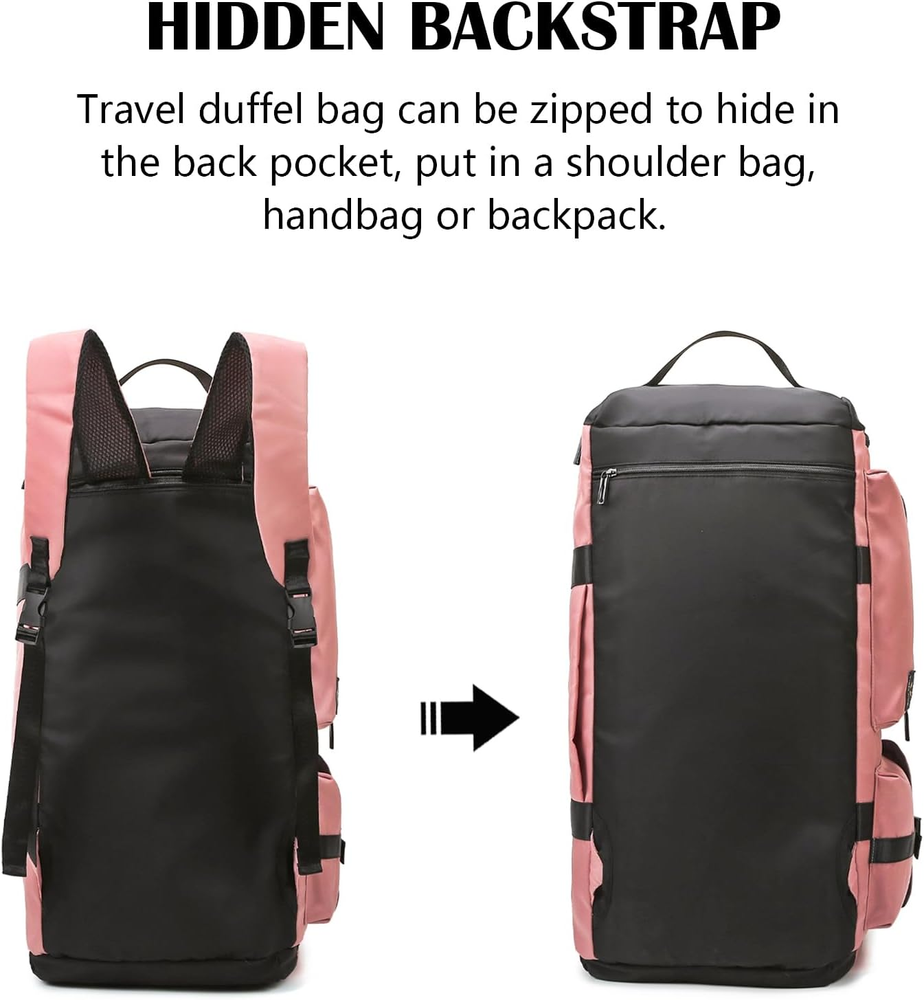 ➤ 65L Extra Large Capacity Duffle Bag: Our Eslcorri travel duffle bag for Women & Men measures 23.6*13.8*11.8in, which can hold a capacity of 65L, enough space for clothing for a 4-6 day trip. It is a perfect weekender bag with a wide opening for easy packing, and also an ideal overnight weekend boarding bag for business or personal travel. Can be folded when not in use. ➤ 3 IN 1 Multipurpose Airplane Friendly Travel Bag: This duffle bag for women and men can be carried in different ways: like a regular duffel bag, like a crossbody bag, or strapped to your back like a giant backpack(hidden straps). Easily held all your gym or travel necessities, a great choice as a large gym bag, travel duffle bag, yoga bag, weekender bag, overnight bag, swimming bag, camping bag, workout bag, or carry-on luggage. ➤ Multiple Pockets Sports Gym Bag: The duffle bag for men has 1 main bag, 1 front zip pocket, 1 utility pocket, 1 separate shoe compartment, 1 side bag, 1 wet zipper pocket, 1 back zipper pocket, 1 back luggage sleeve, and 1 hidden backpack shoulder strap. The trolley sleeve zips closed and double as an additional external pocket when not in use. The over-the-shoulder strap is padded but not super comfortable when the bag is full/heavy. ➤ Independent Shoe Compartment & Wet Pocket: The bottom compartment of the personal item travel bag is spacious and can easily fit 2 pairs of women's shoes, which doesn't interfere with the available space in the main duffle compartment. There is a wet pocket in front, which can store clothes after fitness.* [For any issues or concerns, feel free to via Messenger, so we can help you resolve them.] ➤ Upgraded Material: Our duffle bags are made with premium Fabric, it weighs 2.1 pounds and is lightweight, soft, washable, waterproof, wrinkle-free, wear-resistant & tear-resistant. The waterproof exterior keeps your clothes and items dry. It can hold clothes, a 17-inch Laptop, swimsuits, makeup, towel, water bottles, snack, toys, shoes, etc. Product Description Eslcorri 65L Travel Duffel Tote Bag for Women Men If you are looking for a versatile lightweight, collapsible and double-use carry duffle bag, get this! 3 in 1 Large Sports Gym Bag Multipurpose Weekender Foldable Resistant Duffle Bag Multipurpose Travel Duffel Bag Weekender Carry On Overnight Bag for Airplanes 3 IN 1 Multipurpose Airplane Friendly Travel Bag : This duffel bag for women and men can be carried in different ways: like a regular duffel bag, like a crossbody bag, or strapped to your back like a giant backpack(hidden straps). Easily held all your gym or travel necessities, a great choice as a large gym bag, travel duffle bag, yoga bag, weekender bag, overnight bag, swimming bag, camping bag, workout bag, or carry-on luggage. WATER-RESISTANT Travel Bag Independent Shoe Compartment & Wet Pocket Multiple Pockets: 1*Main Bag 1*Front Zip Pocket 1*Utility Pocket 1*Wet Zipper Pocket 1*Side Bag 1*Back Zipper Pocket 1*Back Luggage Sleeve 1*Separate Shoe Compartment 1*Hidden Backpack Shoulder Strap The bottom compartment of the personal item travel bag is spacious and can easily fit 2 pairs of women's shoes, which doesn't interfere with the available space in the main duffle compartment. There is a wet pocket in front, which can store clothes after fitness. Multiple Pockets Sports Gym Bag 65L Extra Large Capacity Duffel Bag for Swimming Yoga Camping Our Eslcorri travel duffle bag for Women & Men measures 23.6*13.8*11.8in, which can hold a capacity of 65L, enough space for clothing for a 4-6 day trip. It is a perfect weekender bag with a wide opening for easy packing, and also an ideal overnight weekend boarding bag for business or personal travel. Can be folded when not in use. This duffle bag for women men delivers roomy main compartment to store your clothes and items. Womens Mens Sports Gym Bag Carry On Overnight Backpack for Swimming Yoga Camping This gym bag can fit all of your workout things, shower bag, shower/gym shoes, towel, change of clothes etc.. It is a perfect overnight weekend bag has roomy space, ideal for a 4-6 day business or travel like trekking or camping. It fits a lot, clothes, toiletries, shoes, gear and other essentials. Eslcorri 65L Travel Duffel Bag and Crossbody Bag in Different Sizes Add to Cart Add to Cart Add to Cart Add to Cart Customer Reviews 4.6 out of 5 stars 259 4.6 out of 5 stars 259 4.6 out of 5 stars 259 4.5 out of 5 stars 38 4.5 out of 5 stars 38 4.5 out of 5 stars 38 4.5 out of 5 stars 38 Price — — — $19.99 $ 19 . 99 $19.99 $ 19 . 99 $19.99 $ 19 . 99 $19.99 $ 19 . 99 Size-Inch 23.6" x 13.8" x 11.8" 23.6" x 13.8" x 11.8" 23.6" x 13.8" x 11.8" 11" x 9.1" x 3.9 " 11" x 9.1" x 3.9 " 11" x 9.1" x 3.9 " 11" x 9.1" x 3.9 " Material nylon nylon nylon woven straw + PU leather canvas+ PU leather canvas+ PU leather woven straw + PU leather Designed For Swimming Yoga Camping Business Travel Hiking Travel Gym Yoga Shopping, Dating Daily use Working Commuting water proof ✓ ✓ ✓ water resistant water resistant water resistant water resistant Good Gift Choice ✓ ✓ ✓ ✓ ✓ ✓ ✓