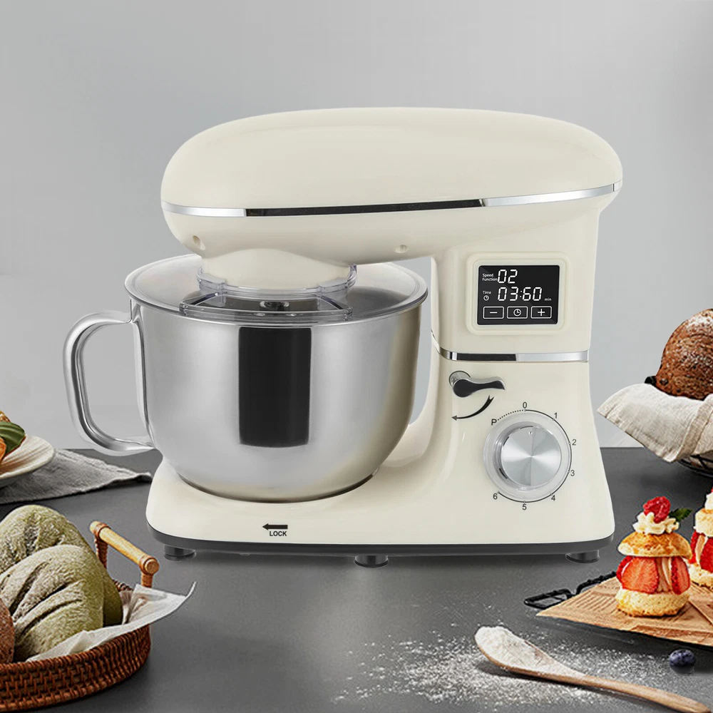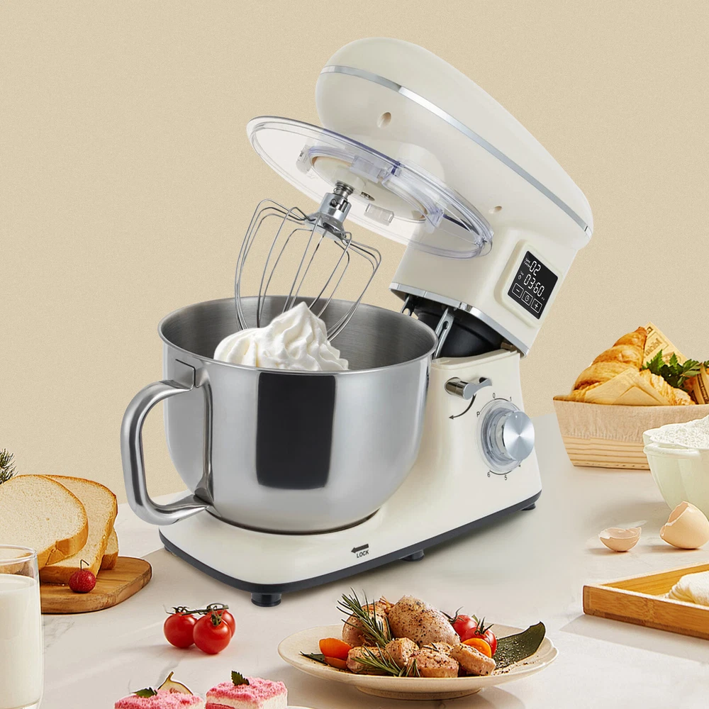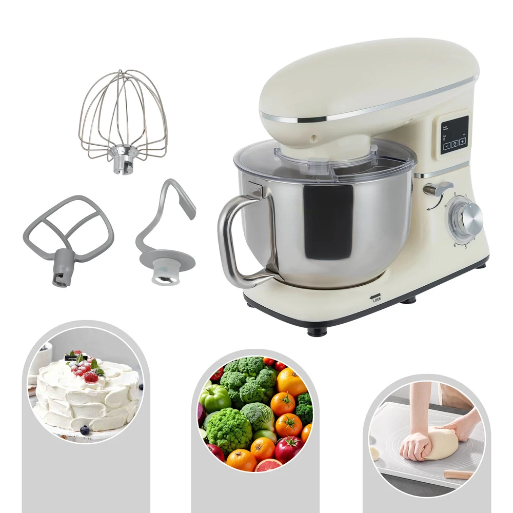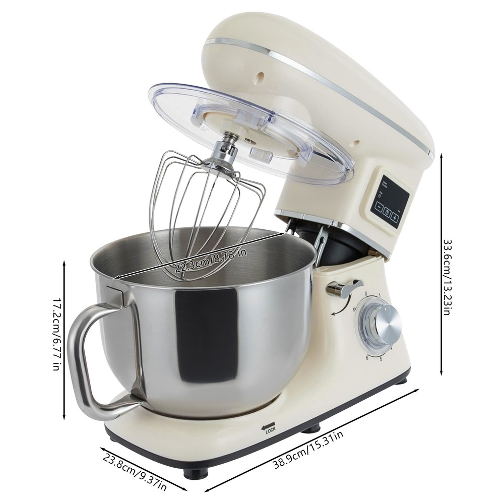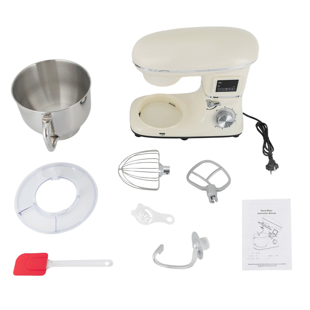 Package Included 1* Kitchen Mixer 1* Douch Hook 1* Beater 1* Whisk 1* Spatula 1* English Manual Application It can be used in kitchens, small restaurants, bakeries, etc. for pizza, waffles, milkshakes, bread, dough, whipped cream, marble cakes, mincemeat, and more! Specification Color: White Style: Modern Material: ABS Mount Type: Free Standing Assembly Required: Yes Control Type: Knob Screen Type: LCD Model: SM-1505HL Power Source: Corded Electric Plug Type: US Standard Motor Type: Pure Copper Motor Volatge: AC 110V 50-60Hz Power: 1350W Speed Gears: 6 +1(Pulse Function) Time: ±30s Per Click Noise: <75db Capacity: 6.2L/6.5Qt Product Size: 38.9*23.8*33.6cm/15.31*9.37*13.23 inch Mixing Bowl Size(D*H): 22.3*17.2cm/8.78*6.77 inch Package Size: 40.6*36.3*24.7cm 6.5-QT 1350W 6-Speed Food Mixer Kitchen Electric LCD Stand Mixer With Bowl USA Description Look at our kitchen mixer, it is a helpful assistant for your kitchen. It is made of premium materials, safe to use and durable. This machine is compact and lightweight, so you can easily store it in the cabinet. As a daily mixer, it is easy to operate and clean up, allowing you to conveniently deal with different kinds of foods. Key Features Build to Last : The product is made of high-quality ABS, making it durable, and not easy to rust and corrosion, so it can remain beautiful and practical for a long time. Powerful and Efficient: It has a strong power (1350W) and a knob to adjust 6+1 mixing speeds, 1-3 speed for bread and pasta dough, 2-4 speed for butter, cookies, and salad, 5-6 speed for egg white, cream, cake, and sauces, and P for pulse function to make the texture of bread and butter more creamy. Thoughtful Design: The LCD screen can be set to time (±30s per click) and has a regular reminder function, allowing you to maximize your freedom without having to keep an eye on the mixing progress. High Safety: The machine's head-up power failure and overheating protection can ensure your safety when using as well as easy for you to replace the accessories, in addition, the cooling holes can dissipate the heat in time to ensure the stability of the product when using. Excellent Performance: The deepened bowl can thoroughly mix flour, eggs, and other ingredients inside. It can hold 6.5 qt of ingredients and is equipped with a whisk, beater, and dough hook to facilitate the mixing of different ingredients and meet the dietary needs of you and your family. Ready to Use: The assembled host, practical accessories, and detailed English manual make it very convenient and time-saving for you to use it directly after receiving it. Compact and Lightweight: With its compact size (15.31*9.37*13.23 inches) and lightweight ( 13.23 lbs ), you can use it conveniently or store it in your cabinet without taking up too much space, making it suitable for small kitchen, apartment, or limited storage space. Protective Package: We use foam to wrap this product in order to minimize damage to the product during transportation. Ideal Gift: Because of its powerful functions and practicality, you can give it to your friends as a Christmas, Thanksgiving, or housewarming gift. Details Non-slip Feet: Six non-slip feet on the base prevent sliding and ensure product stability. Clear Splash-proof Lid: It helps you with process monitoring and facilitates pouring water, milk, or other liquid ingredients(not included) through the hole in the splash guard when needed while preventing ingredients from running out of the bowl, making cleanup easier. Practical Spatula: It helps you scoop out the ingredients and also makes for a more even distribution of the ingredients before blending. Comfortable Handle: The handle on the bowl makes it easy to grip and pour out your mixed ingredients(not included). Application It can be used in kitchens, small restaurants, bakeries, etc. for pizza, waffles, milkshakes, bread, dough, whipped cream, marble cakes, mincemeat, and more! Specification Color: White Style: Modern Material: ABS Mount Type: Free Standing Assembly Required: Yes Control Type: Knob Screen Type: LCD Model: SM-1505HL Power Source: Corded Electric Plug Type: US Standard Motor Type: Pure Copper Motor Volatge: AC 110V 50-60Hz Power: 1350W Speed Gears: 6 +1(Pulse Function) Time: ±30s Per Click Noise: <75db Capacity: 6.2L/6.5Qt Product Size: 38.9*23.8*33.6cm/15.31*9.37*13.23 inch Mixing Bowl Size(D*H): 22.3*17.2cm/8.78*6.77 inch Package Size: 40.6*36.3*24.7cm/16*14.3*9.7 inch Gross Weight: 6.6kg/14.6 lb Net Weight: 6kg/13.23 lb Package Included 1* Kitchen Mixer 1* Douch Hook 1* Beater 1* Whisk 1* Spatula 1* English Manual Notes Please note that this product does not include any food ingredients. Before purchasing, please make sure that the capacity of this product is available for your needs. It is suitable for the new baker, 1-2 members, or small family in everyday use. If you are a pro-baker or need to handle large batches of mixing, please consider other larger-capacity mixers. Please read the English manual carefully before use and pay particular attention to the safety instructions contained therein. Please allow the slight color difference caused by the shooting light and 1-3 cm error due to manual measurement, and make sure you do not mind before ordering. Payment Delivery details Terms of sales About us Contact us Payment We accept ebay payment 。 Fees such as import duties, taxes are not included in the item price or shipping costs. These charges are the buyer's responsibility. Delivery details Shipping: 2-9 working days to: USA Terms of sales We maintain high standards of excellence and strive for hundred percent customer satisfaction. Feedback is very important to us. We hope that you contact us immediately before you give neutral or negative feedback, so that we can address your concerns. It is impossible to address issues if we do not know about them! About us Your satis faction is our ultimate goal. We work hard to earn your trust and future business. Our certified tech