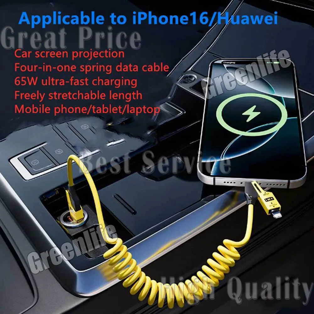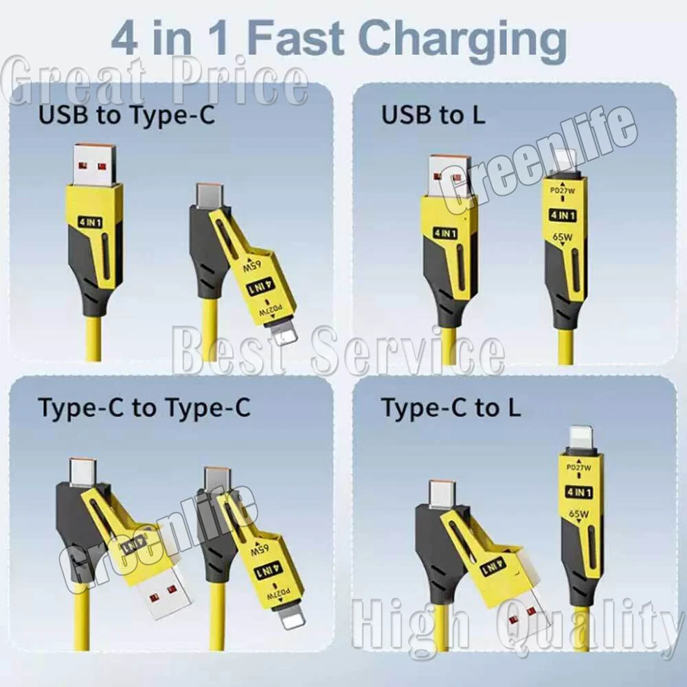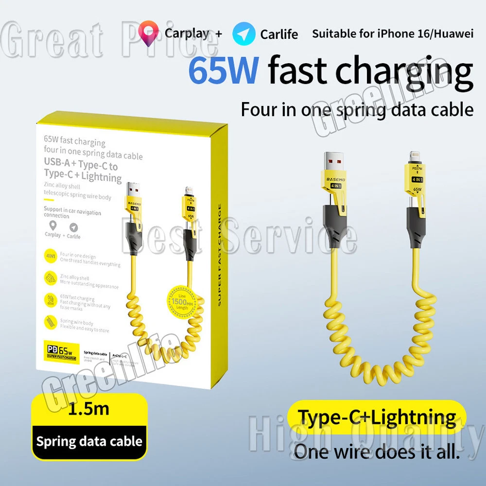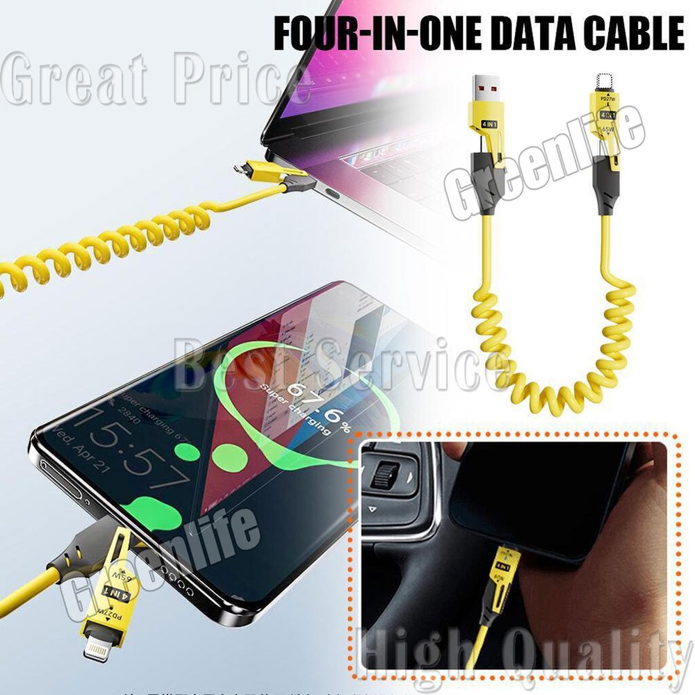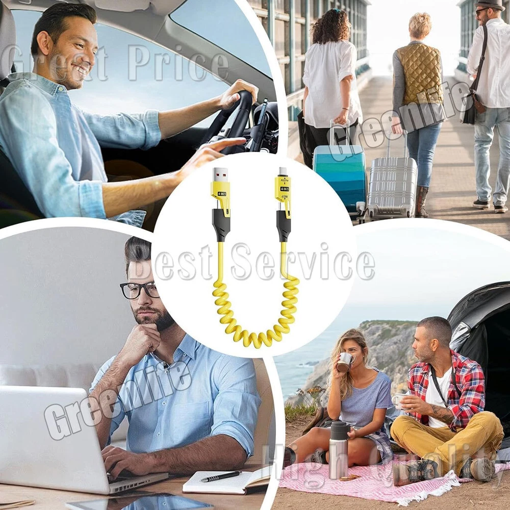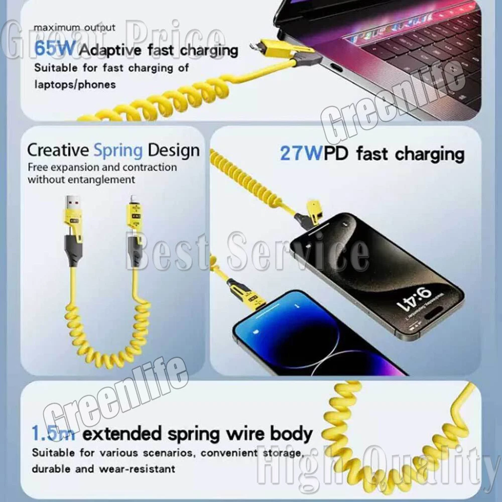 "This 4-in-1 USB Type-C cable is a game-changer! Excellent fast charging at 65W, super compact and tangle-free with the spring design. The build feels sturdy, and it works flawlessly with all my devices. Great value for the price—definitely worth it!"