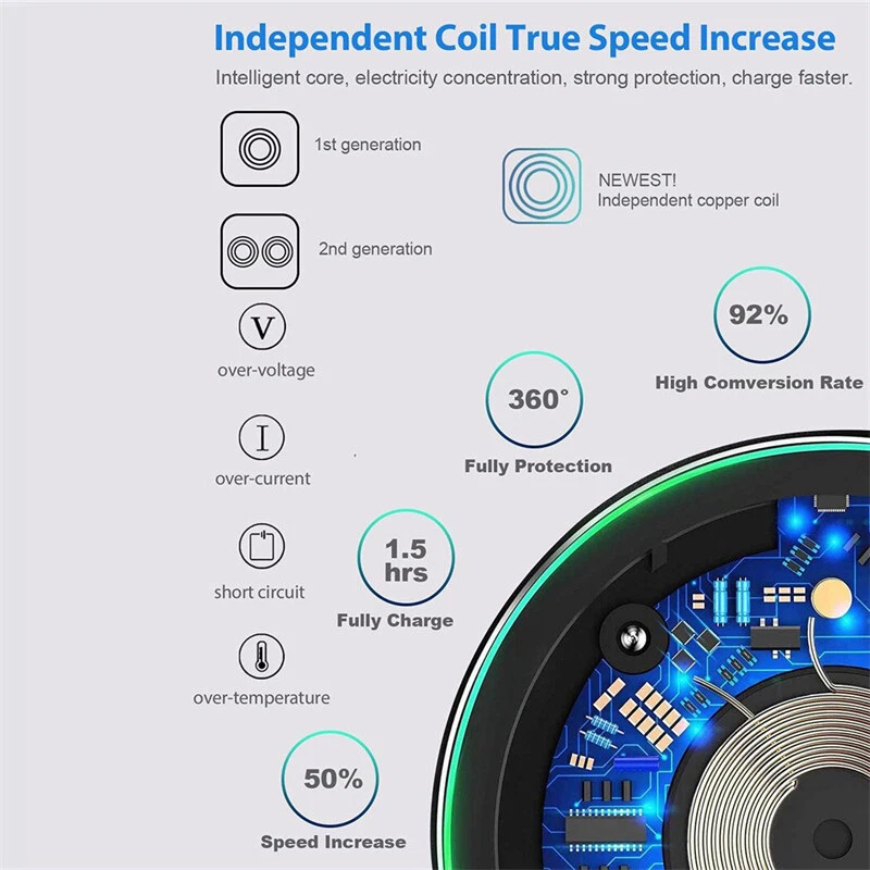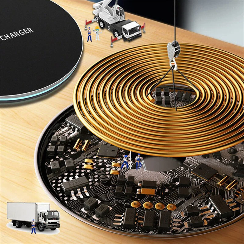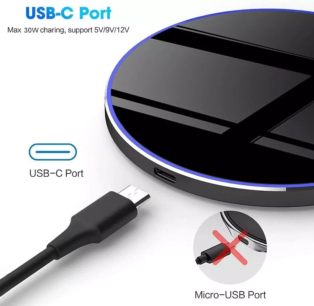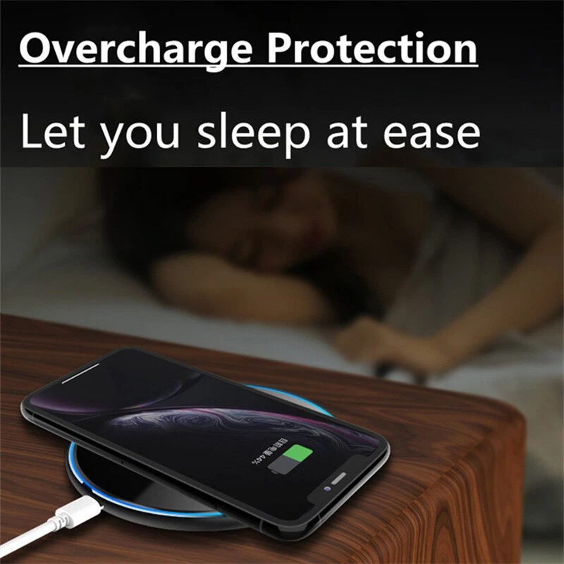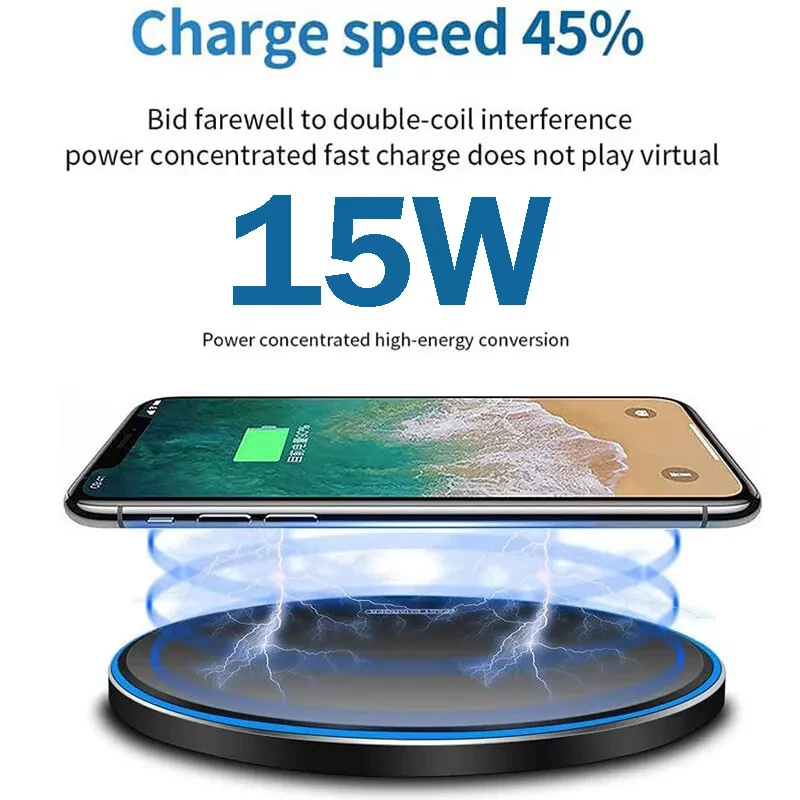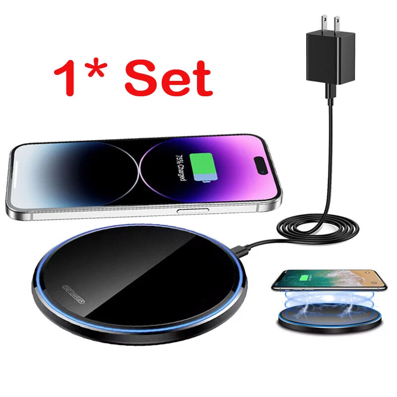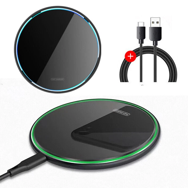 Easy to charge wirelessly and compatible with the case: The fast wireless charger allows you to charge your device 1.8 times faster than a standard wireless charger. Don't fumble with the phone case. Direct induction charging through protective covers up to 6mm/0.23 inch thick (excluding covers with magnetic or metal fittings). Thin and cool design: light, elegant and compact design with anti-skid rubber. This wireless charging pad is very thin, only 6 mm/0.23 inch. It takes up little space and is easy to place in your pocket. The high-speed wireless power charging pad is easy to carry when traveling or doing business. Whether you use it in the office or at home, this charger feels solid and looks good. Smart indicator light: When the power is turned on, if no charging device is detected within 20 seconds, the indicator light will turn on green for 20 seconds. When you place the phone or headset in the charging state, the indicator light will turn off automatically. The faint blue light flickers slowly until it is fully charged. Weak light will not affect your sleep. Specifications: Color: black/white/red/gold Output: 5W/7.5 W/10W/15W/20W/ (the maximum charging speed of 20W is faster than others) Charging efficiency:>75% Charging frequency: 110-205 kHz The package includes: 1x Wireless Fast Charger Pad 1 * 1M C-type USB cable (not included if not selected)