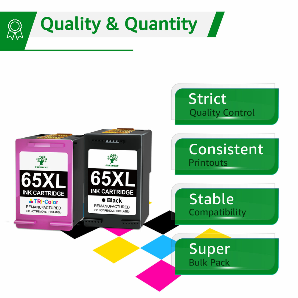 Product Details Information 65XL 65-XL compatible ink cartridge Not OEM Type: Printer Ink Cartridge Condition: Brand new Compatible Brand: For HP Part#: 65XL 65-XL Color: Black / Tri-Color Capacity / Page Yield: Up to 480 pages per Black Ink, 330 pages per Color Ink,at 5% coverage. Package Include: As you selected Every ink cartridge work as expected with Satisfaction. Compatible Printer Models: For HP AMP 100 120 125 130 For HP DeskJet 2600 2620 2621 2622 2623 2624 For HP DeskJet 2630 2632 2634 2635 2636 2652 2655 3720 For HP DeskJet 3721 3722 3723 3730 3732 3733 3735 For HP DeskJet 3750 3752 3755 3758 3760 3762 3764 For HP ENVY 5000 5010 5012 5014 5020 5030 5032 5034 5052 5055 5058 About Us ▶GREENSKY STORE◀ GREENSKY is an international online seller's store, with a dedicated team researching printing consumable products, with excellent quality and diverse products, including HP, CANON, Samsung, Epson toner cartridges or ink cartridges and more. We have been focusing on this industry for more than ten years. Our company has a excellent quality team to monitor the production, transportation, and products selling. With high-quality products and professional services, our products have been sold to various countries around the world. Return We have a very lenient return policy with a full refund (excluding shipping costs) offered within 30 days from date of purchase. Any defective/damaged merchandise can be exchanged up to 180 days from the date of purchase. The seller is responsible for return shipping costs for defective cartridge. We will not issue pay for return shipping for wrong ordered items. We will deduct shipping for wrong ordered item. Payment We accept PayPal, G pay,VISA, Mater Card,American Express,credit card etc payments method. If you have any questions about our products, please feel free to contact us. Shipping FREE STANDARD SHIPPING ON CONTIGUOUS US ORDERS. (UPS OR USPS) Free shipping excludes shipment to AK, HI, GU, PR, VI, PO BOX, Military Address/Base APO & FPO(US Postal Service) etc. We will ship your order within 1 business day after payment received. Tracking Numbers: Tracking numbers will be provided on eBay.